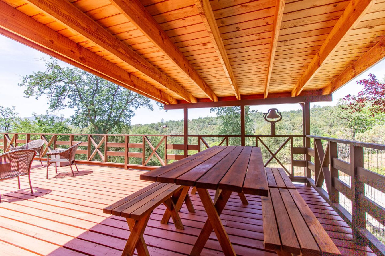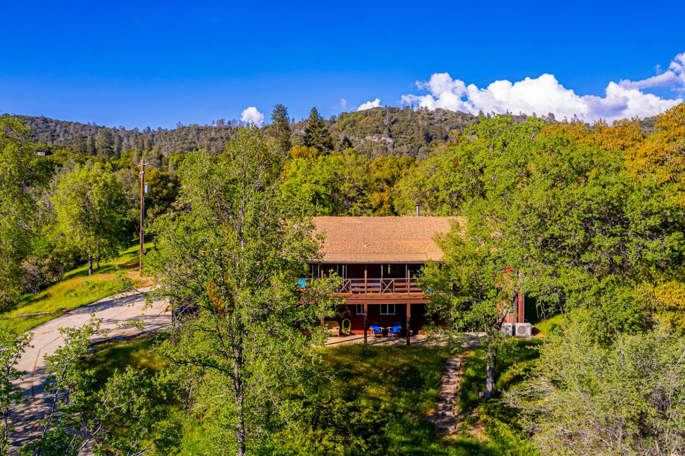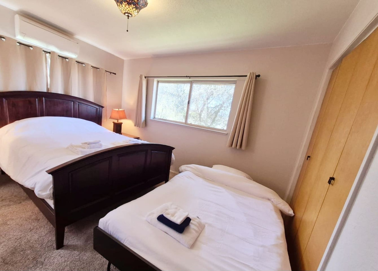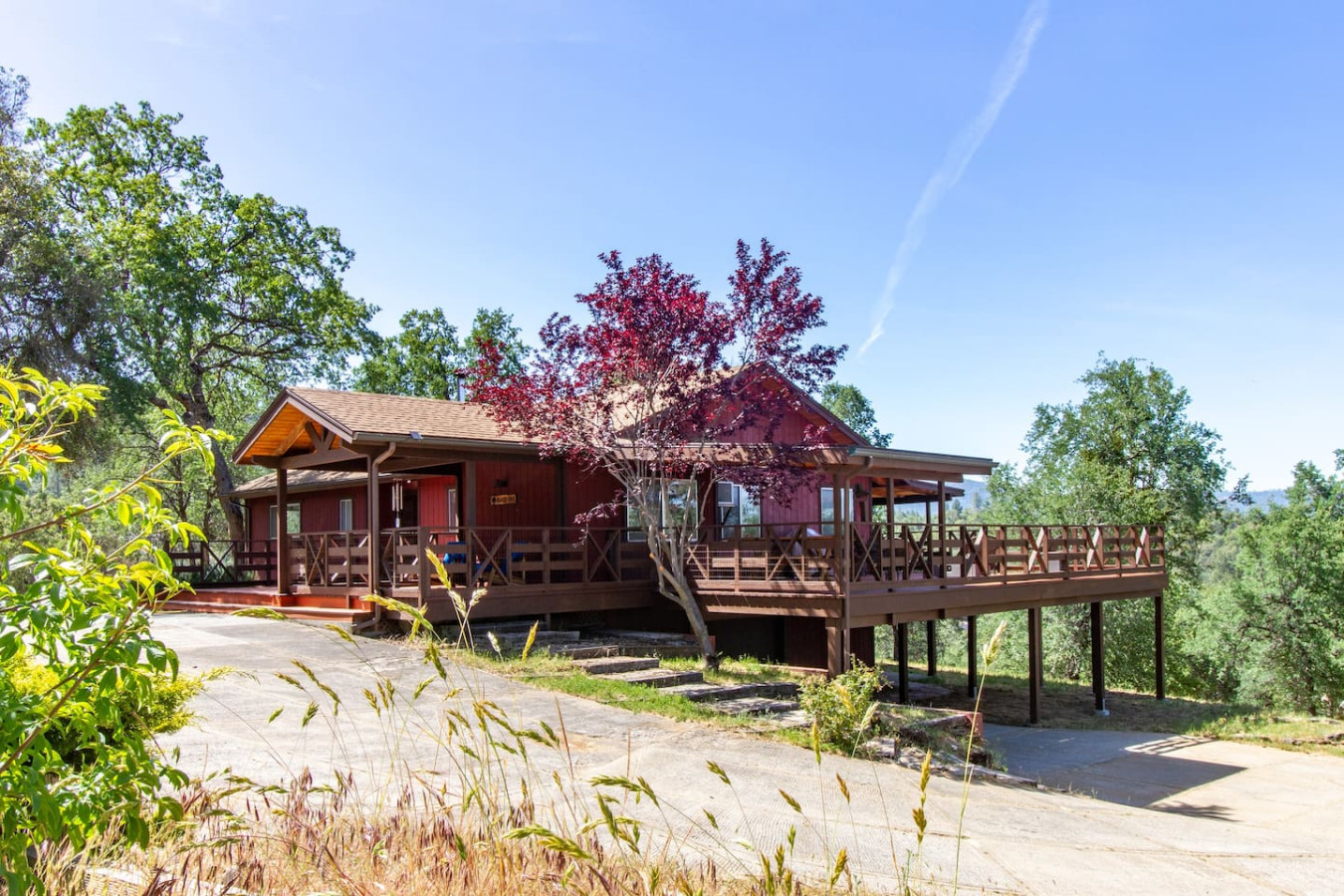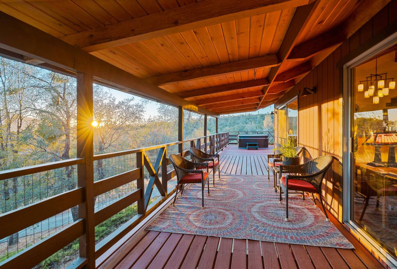 Exquisite Villa atop 10-acres of forest land close to Yosemite and Bass Lake, with twin creeks, hiking trails and bridge, all inside the property. Family-friendly 2-story villa offers a wrap-around deck with valley views and exquisite sunset over acres of forest land all within the property and well-maintained by owner himself. Fully-loaded with amenities, games, and activities, this forest villa offers a luxurious vacation amidst a spectacular Sierra view. Now with EV Charger, Ping Pong Table. 2-Story Villa in the middle of 10 acres of Cedars and Pines. With wrap around deck, and a Hip Camp for adventure! Now with 3 full bathrooms, each of the 4 bedrooms have attached bathroom and doors for privacy. 4th bedroom includes entertainment room with locked doors on either side. With double-yellow line paved roads all the way to the driveway, this Beautiful private and peaceful home sitting atop 10 gorgeous acres will be your winter and summer destination, with views of the mountains, the sunsets and abundant wildlife. OUTDOOR ACTIVITIES Connect with nature on a walk along the hiking trails that take you down to twin creeks on on side and up to forest grove at the other side, with seating provided at both the places. Watch animals all around the orchard and creeks taking a sip at the water holes. LIVING SPACE The interior features 2100 sq ft of Living area, an open floor plan with high ceilings, custom lighting, a phenomenally beautiful kitchen with pantry and bar top, a freestanding wood stove fireplace, and big sliding doors opening up to covered porches from upstairs living room and downstairs master bedroom, both looking over a park like setting with manzanitas, cedars, and oaks, and plenty of forest land with wildlife galore. AMENITIES: The 4 bedroom, 3 Full bath features multilevel parking, a Game room with Air Hockey and games, an outdoor ping pong table that is climate proof, a Hot tub on the upstairs open deck under the stars with the magnificent view of Sierra all around, BBQ Grill, Propane firepit and 4 different seating areas. HIP CAMP Hip Camp Site offers separate reservation and features a separate driveway down to the left as soon as you enter the main Driveway from the Jean Road. Villa parking is on the RIGHT MOST lane going up in front of the Carport. All Areas except Owner's closet (Shed) and Cleaner's closets (Downstairs, keypad door) We are available whenever needed by guests, within minutes. office is located at Oakhurst Plaza, besides the Yosemite Visitor Center. Private mountain home on a hill in a rural location. You will need a car to get around. About 8 minute drive to restaurants and shopping. You will need a car to get around. About 8 minute drive to restaurants and shopping. Great roads will take you all the way to the driveway. Road is maintained by county year-long. All-wheel drive is recommended during winter as this house enjoys fair amount of snow.