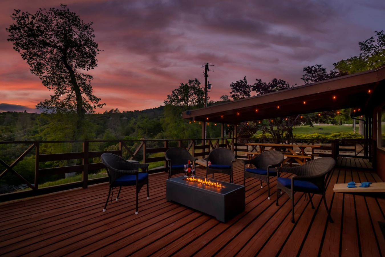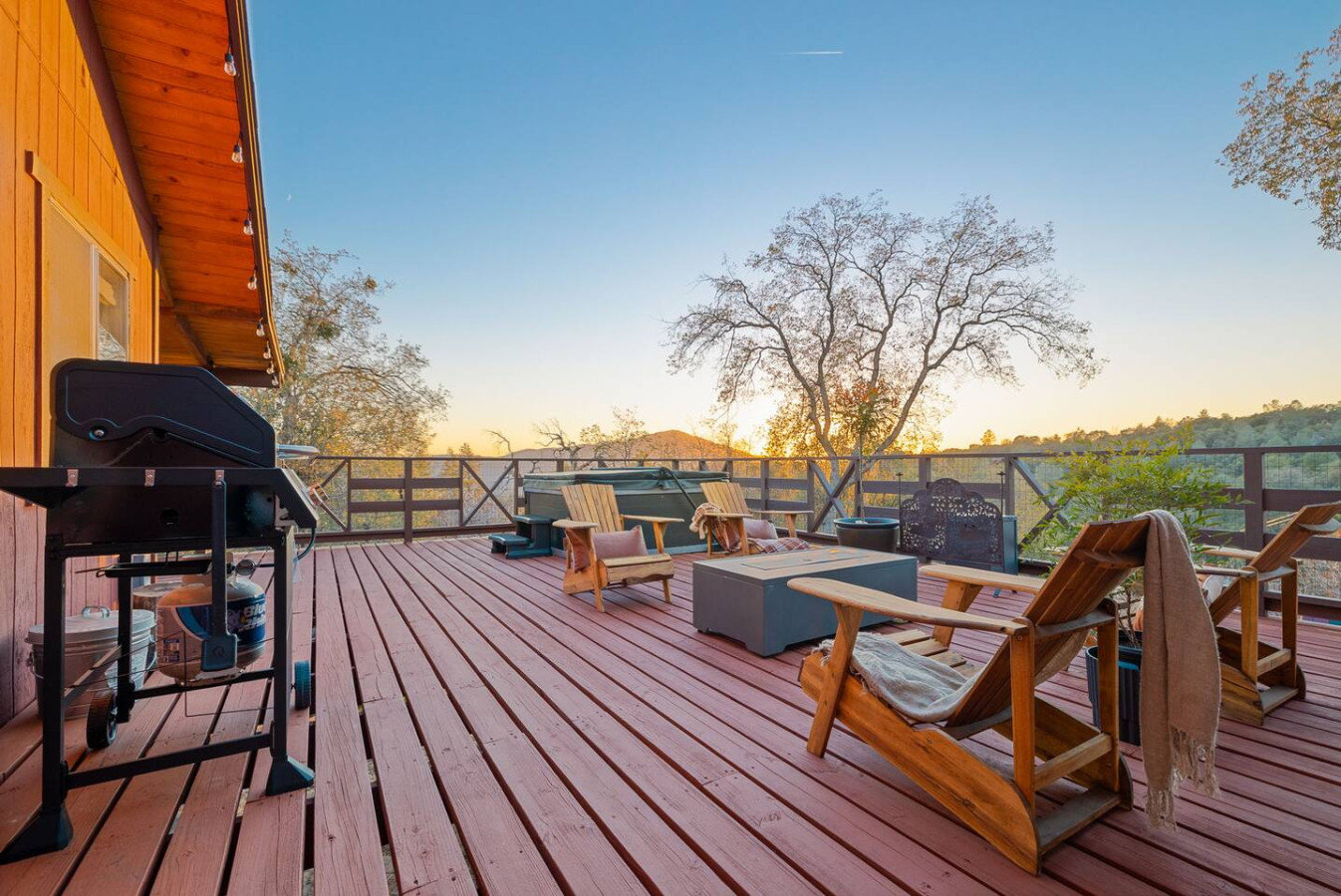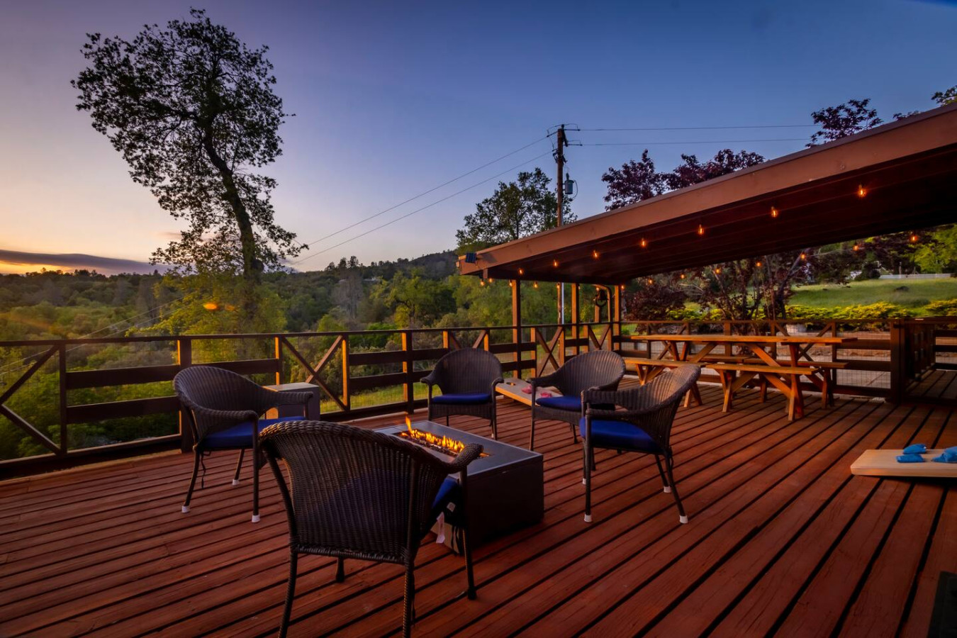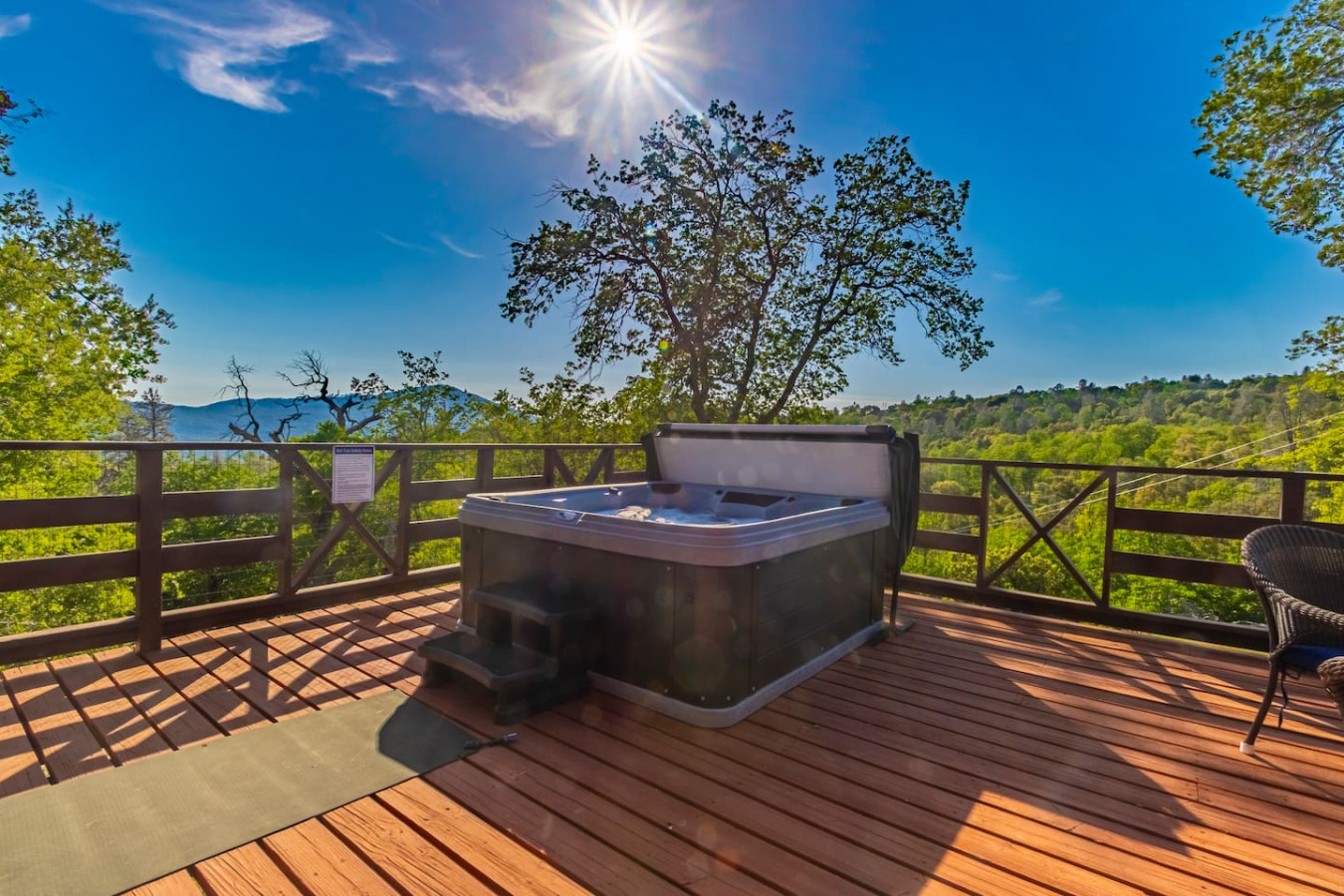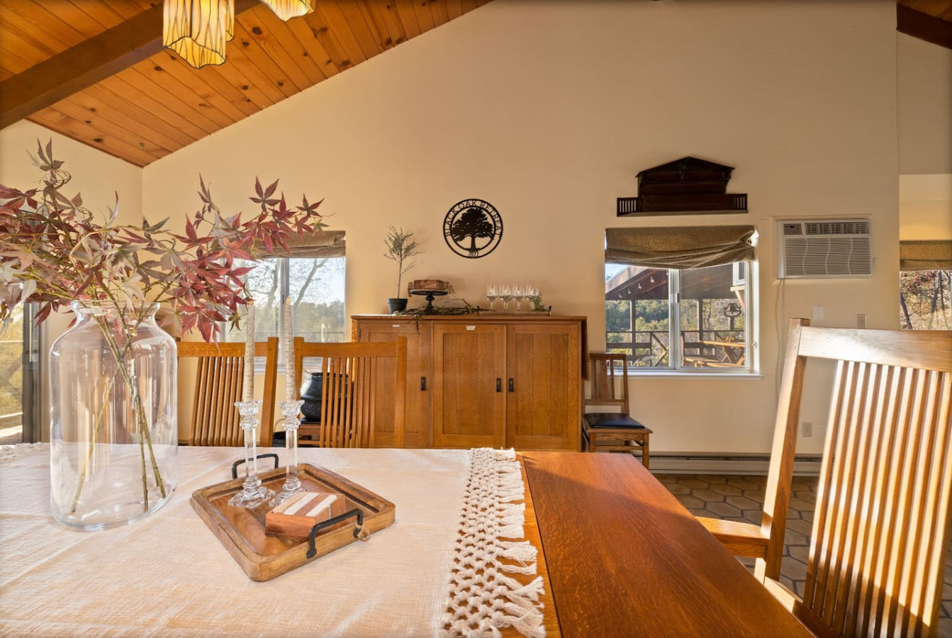 Exquisite Villa atop 10-acres of forest land close to Yosemite and Bass Lake, with twin creeks, hiking trails and bridge, all inside the property. Family-friendly 2-story villa offers a wrap-around deck with valley views and exquisite sunset over acres of forest land all within the property and well-maintained by owner himself. Fully-loaded with amenities, games, and activities, this forest villa offers a luxurious vacation amidst a spectacular Sierra view. Now with EV Charger, Ping Pong Table. 2-Story Villa in the middle of 10 acres of Cedars and Pines. With wrap around deck, and a Hip Camp for adventure! Now with 3 full bathrooms, each of the 4 bedrooms have attached bathroom and doors for privacy. 4th bedroom includes entertainment room with locked doors on either side. With double-yellow line paved roads all the way to the driveway, this Beautiful private and peaceful home sitting atop 10 gorgeous acres will be your winter and summer destination, with views of the mountains, the sunsets and abundant wildlife. OUTDOOR ACTIVITIES Connect with nature on a walk along the hiking trails that take you down to twin creeks on on side and up to forest grove at the other side, with seating provided at both the places. Watch animals all around the orchard and creeks taking a sip at the water holes. LIVING SPACE The interior features 2100 sq ft of Living area, an open floor plan with high ceilings, custom lighting, a phenomenally beautiful kitchen with pantry and bar top, a freestanding wood stove fireplace, and big sliding doors opening up to covered porches from upstairs living room and downstairs master bedroom, both looking over a park like setting with manzanitas, cedars, and oaks, and plenty of forest land with wildlife galore. AMENITIES: The 4 bedroom, 3 Full bath features multilevel parking, a Game room with Air Hockey and games, an outdoor ping pong table that is climate proof, a Hot tub on the upstairs open deck under the stars with the magnificent view of Sierra all around, BBQ Grill, Propane firepit and 4 different seating areas. HIP CAMP Hip Camp Site offers separate reservation and features a separate driveway down to the left as soon as you enter the main Driveway from the Jean Road. Villa parking is on the RIGHT MOST lane going up in front of the Carport. All Areas except Owner's closet (Shed) and Cleaner's closets (Downstairs, keypad door) We are available whenever needed by guests, within minutes. office is located at Oakhurst Plaza, besides the Yosemite Visitor Center. Private mountain home on a hill in a rural location. You will need a car to get around. About 8 minute drive to restaurants and shopping. You will need a car to get around. About 8 minute drive to restaurants and shopping. Great roads will take you all the way to the driveway. Road is maintained by county year-long. All-wheel drive is recommended during winter as this house enjoys fair amount of snow.