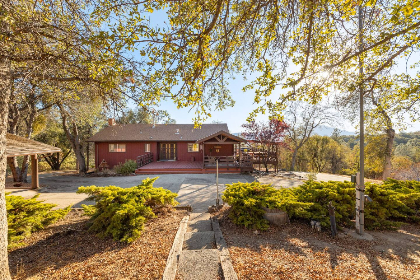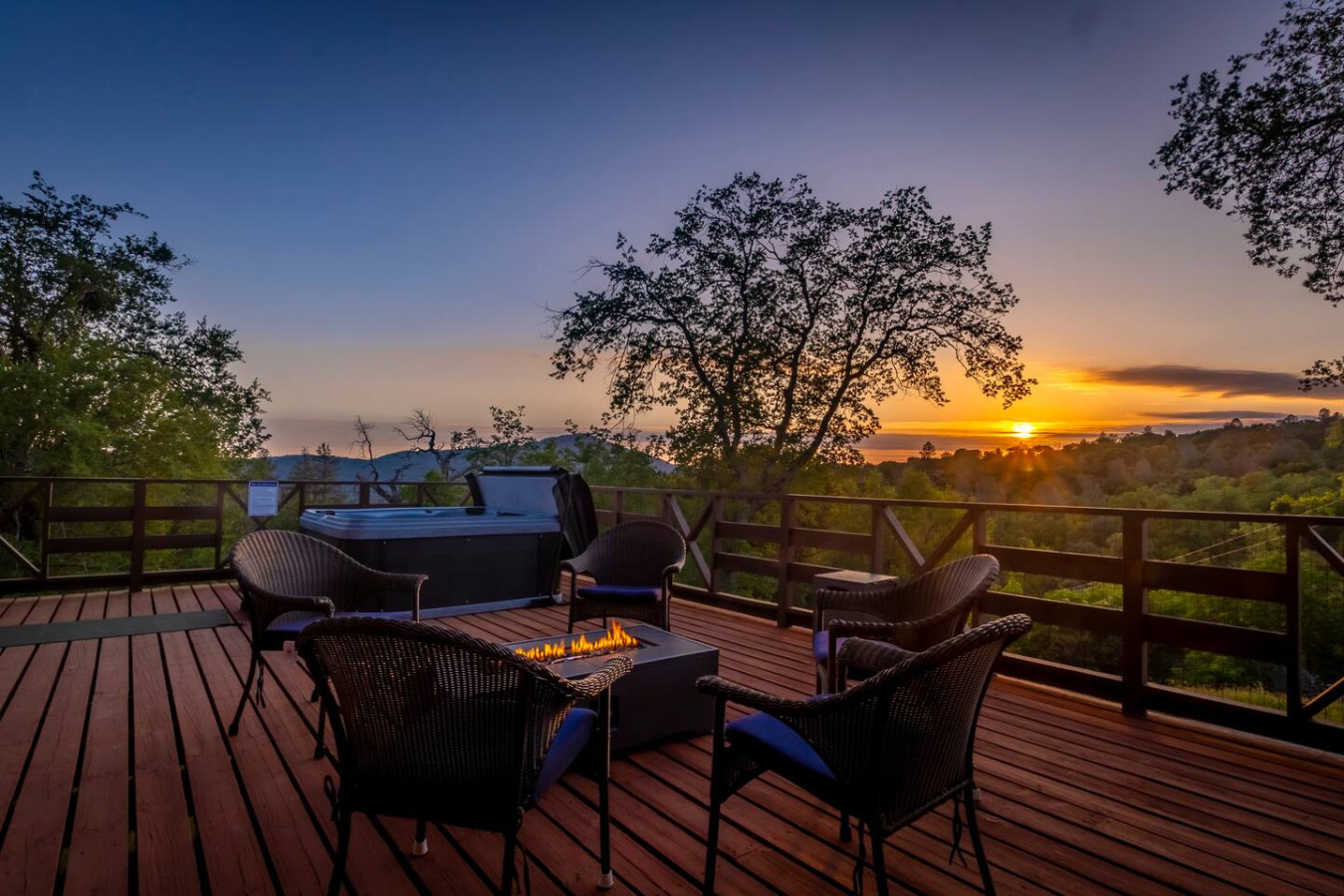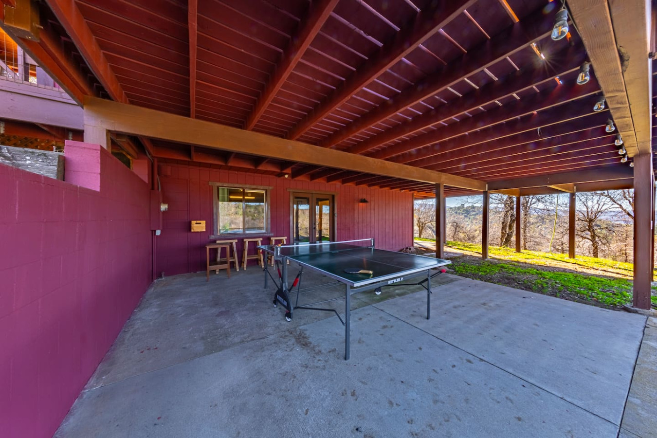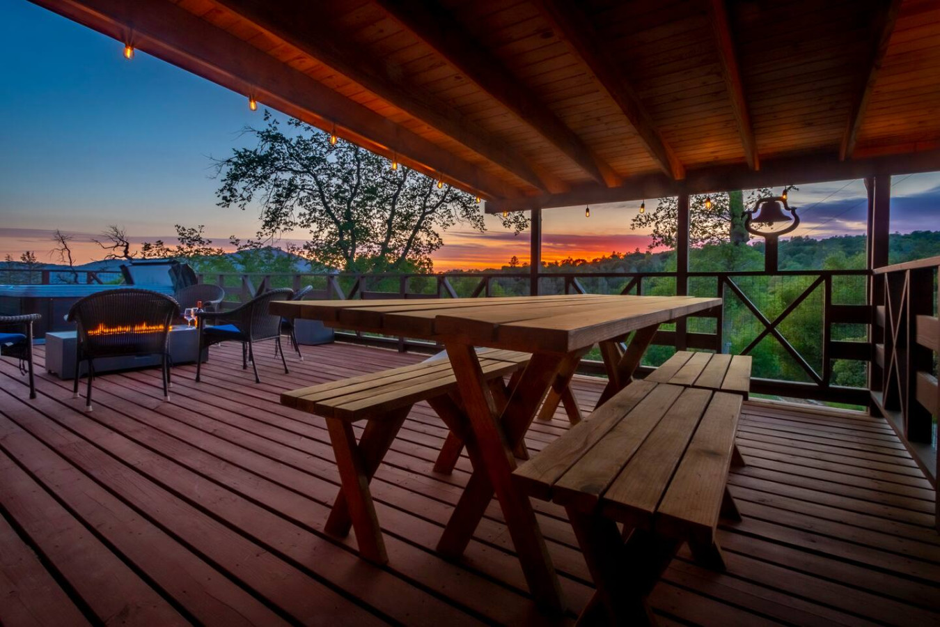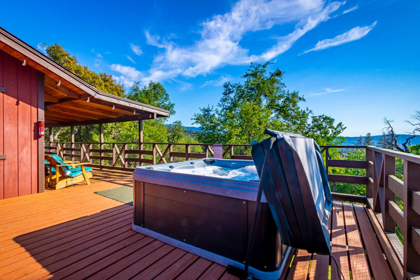 Exquisite Villa atop 10-acres of forest land close to Yosemite and Bass Lake, with twin creeks, hiking trails and bridge, all inside the property. Family-friendly 2-story villa offers a wrap-around deck with valley views and exquisite sunset over acres of forest land all within the property and well-maintained by owner himself. Fully-loaded with amenities, games, and activities, this forest villa offers a luxurious vacation amidst a spectacular Sierra view. Now with EV Charger, Ping Pong Table. 2-Story Villa in the middle of 10 acres of Cedars and Pines. With wrap around deck, and a Hip Camp for adventure! Now with 3 full bathrooms, each of the 4 bedrooms have attached bathroom and doors for privacy. 4th bedroom includes entertainment room with locked doors on either side. With double-yellow line paved roads all the way to the driveway, this Beautiful private and peaceful home sitting atop 10 gorgeous acres will be your winter and summer destination, with views of the mountains, the sunsets and abundant wildlife. OUTDOOR ACTIVITIES Connect with nature on a walk along the hiking trails that take you down to twin creeks on on side and up to forest grove at the other side, with seating provided at both the places. Watch animals all around the orchard and creeks taking a sip at the water holes. LIVING SPACE The interior features 2100 sq ft of Living area, an open floor plan with high ceilings, custom lighting, a phenomenally beautiful kitchen with pantry and bar top, a freestanding wood stove fireplace, and big sliding doors opening up to covered porches from upstairs living room and downstairs master bedroom, both looking over a park like setting with manzanitas, cedars, and oaks, and plenty of forest land with wildlife galore. AMENITIES: The 4 bedroom, 3 Full bath features multilevel parking, a Game room with Air Hockey and games, an outdoor ping pong table that is climate proof, a Hot tub on the upstairs open deck under the stars with the magnificent view of Sierra all around, BBQ Grill, Propane firepit and 4 different seating areas. HIP CAMP Hip Camp Site offers separate reservation and features a separate driveway down to the left as soon as you enter the main Driveway from the Jean Road. Villa parking is on the RIGHT MOST lane going up in front of the Carport. All Areas except Owner's closet (Shed) and Cleaner's closets (Downstairs, keypad door) We are available whenever needed by guests, within minutes. office is located at Oakhurst Plaza, besides the Yosemite Visitor Center. Private mountain home on a hill in a rural location. You will need a car to get around. About 8 minute drive to restaurants and shopping. You will need a car to get around. About 8 minute drive to restaurants and shopping. Great roads will take you all the way to the driveway. Road is maintained by county year-long. All-wheel drive is recommended during winter as this house enjoys fair amount of snow.