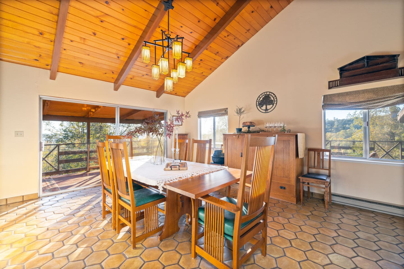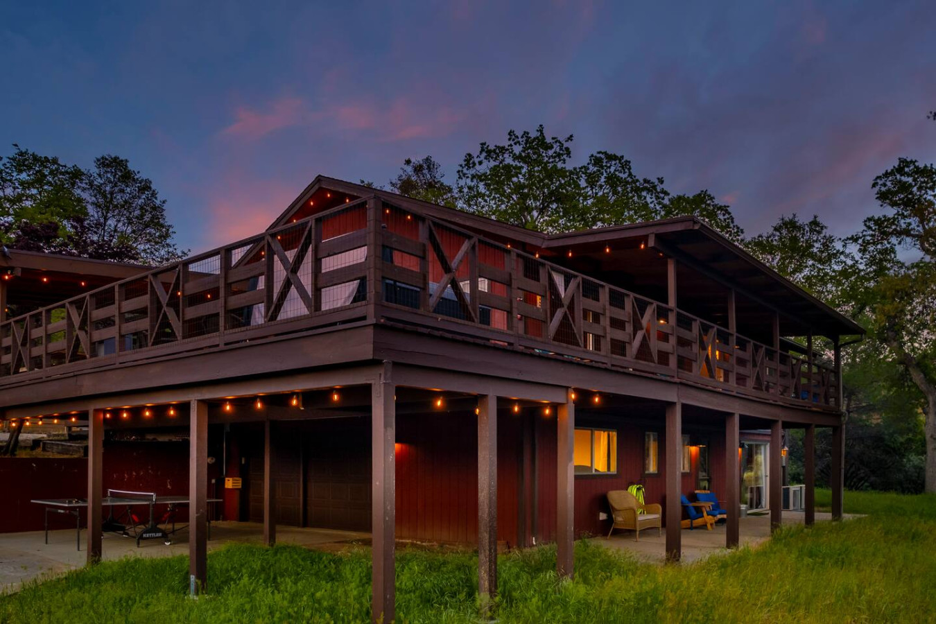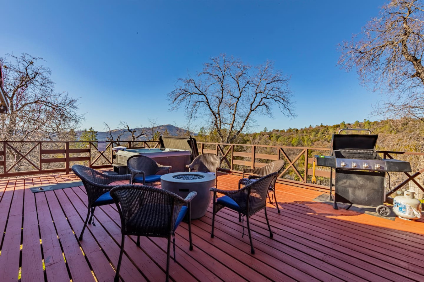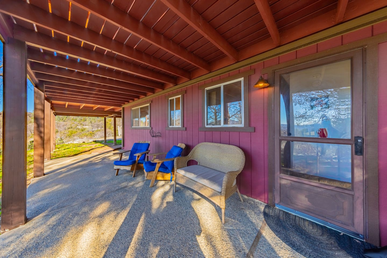 Exquisite Villa atop 10-acres of forest land close to Yosemite and Bass Lake, with twin creeks, hiking trails and bridge, all inside the property. Family-friendly 2-story villa offers a wrap-around deck with valley views and exquisite sunset over acres of forest land all within the property and well-maintained by owner himself. Fully-loaded with amenities, games, and activities, this forest villa offers a luxurious vacation amidst a spectacular Sierra view. Now with EV Charger, Ping Pong Table. 2-Story Villa in the middle of 10 acres of Cedars and Pines. With wrap around deck, and a Hip Camp for adventure! Now with 3 full bathrooms, each of the 4 bedrooms have attached bathroom and doors for privacy. 4th bedroom includes entertainment room with locked doors on either side. With double-yellow line paved roads all the way to the driveway, this Beautiful private and peaceful home sitting atop 10 gorgeous acres will be your winter and summer destination, with views of the mountains, the sunsets and abundant wildlife. OUTDOOR ACTIVITIES Connect with nature on a walk along the hiking trails that take you down to twin creeks on on side and up to forest grove at the other side, with seating provided at both the places. Watch animals all around the orchard and creeks taking a sip at the water holes. LIVING SPACE The interior features 2100 sq ft of Living area, an open floor plan with high ceilings, custom lighting, a phenomenally beautiful kitchen with pantry and bar top, a freestanding wood stove fireplace, and big sliding doors opening up to covered porches from upstairs living room and downstairs master bedroom, both looking over a park like setting with manzanitas, cedars, and oaks, and plenty of forest land with wildlife galore. AMENITIES: The 4 bedroom, 3 Full bath features multilevel parking, a Game room with Air Hockey and games, an outdoor ping pong table that is climate proof, a Hot tub on the upstairs open deck under the stars with the magnificent view of Sierra all around, BBQ Grill, Propane firepit and 4 different seating areas. HIP CAMP Hip Camp Site offers separate reservation and features a separate driveway down to the left as soon as you enter the main Driveway from the Jean Road. Villa parking is on the RIGHT MOST lane going up in front of the Carport. All Areas except Owner's closet (Shed) and Cleaner's closets (Downstairs, keypad door) We are available whenever needed by guests, within minutes. office is located at Oakhurst Plaza, besides the Yosemite Visitor Center. Private mountain home on a hill in a rural location. You will need a car to get around. About 8 minute drive to restaurants and shopping. You will need a car to get around. About 8 minute drive to restaurants and shopping. Great roads will take you all the way to the driveway. Road is maintained by county year-long. All-wheel drive is recommended during winter as this house enjoys fair amount of snow.