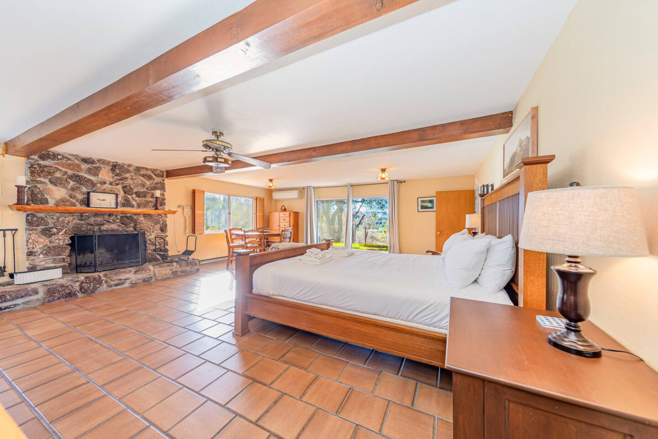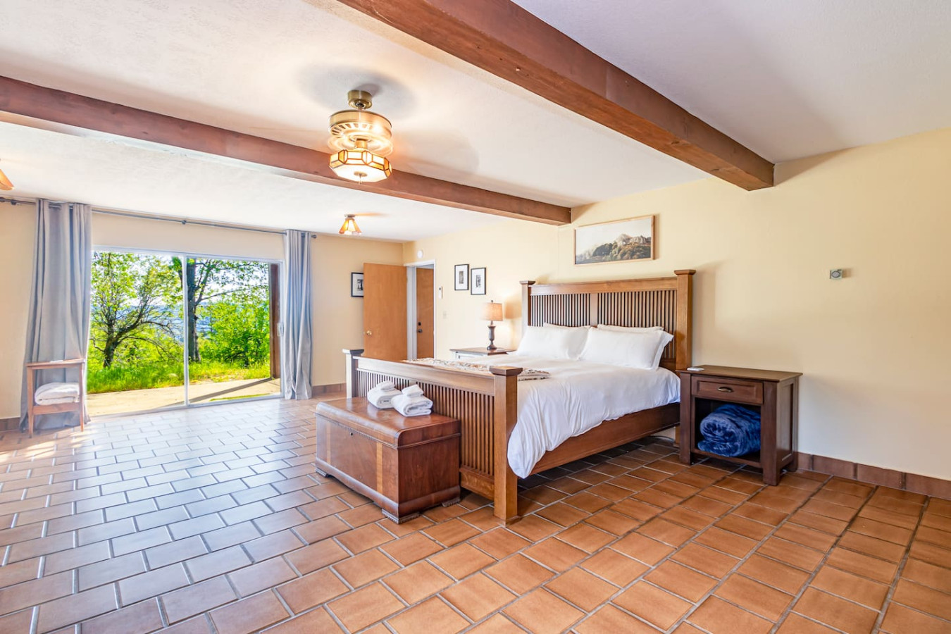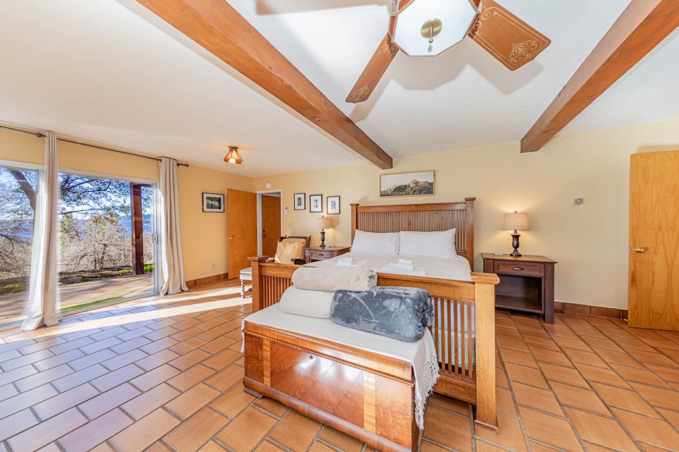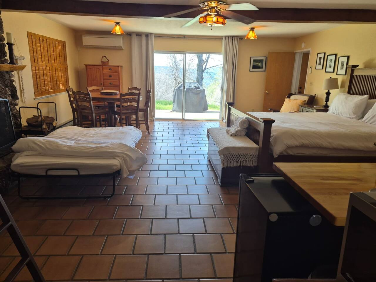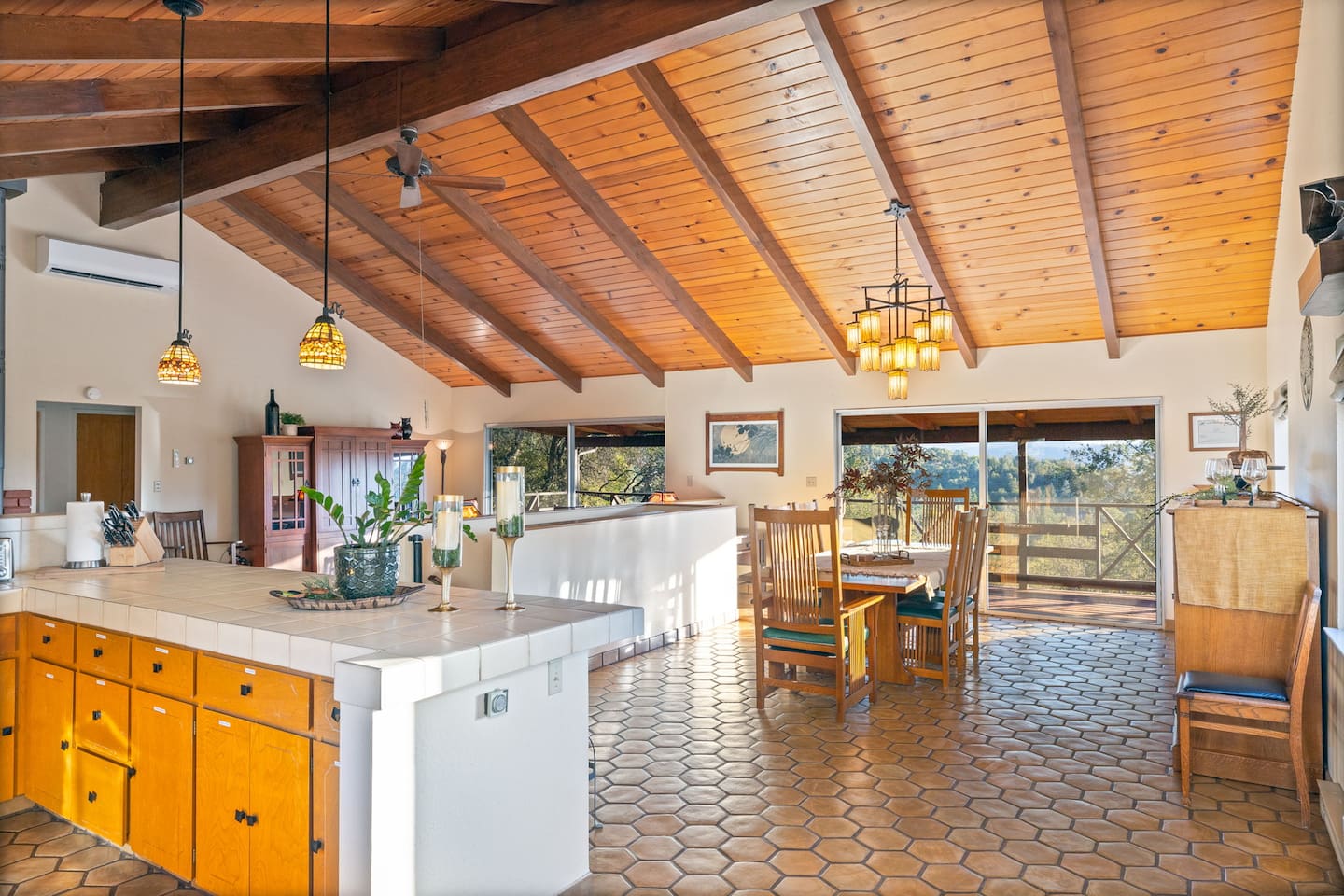 Exquisite Villa atop 10-acres of forest land close to Yosemite and Bass Lake, with twin creeks, hiking trails and bridge, all inside the property. Family-friendly 2-story villa offers a wrap-around deck with valley views and exquisite sunset over acres of forest land all within the property and well-maintained by owner himself. Fully-loaded with amenities, games, and activities, this forest villa offers a luxurious vacation amidst a spectacular Sierra view. Now with EV Charger, Ping Pong Table. 2-Story Villa in the middle of 10 acres of Cedars and Pines. With wrap around deck, and a Hip Camp for adventure! Now with 3 full bathrooms, each of the 4 bedrooms have attached bathroom and doors for privacy. 4th bedroom includes entertainment room with locked doors on either side. With double-yellow line paved roads all the way to the driveway, this Beautiful private and peaceful home sitting atop 10 gorgeous acres will be your winter and summer destination, with views of the mountains, the sunsets and abundant wildlife. OUTDOOR ACTIVITIES Connect with nature on a walk along the hiking trails that take you down to twin creeks on on side and up to forest grove at the other side, with seating provided at both the places. Watch animals all around the orchard and creeks taking a sip at the water holes. LIVING SPACE The interior features 2100 sq ft of Living area, an open floor plan with high ceilings, custom lighting, a phenomenally beautiful kitchen with pantry and bar top, a freestanding wood stove fireplace, and big sliding doors opening up to covered porches from upstairs living room and downstairs master bedroom, both looking over a park like setting with manzanitas, cedars, and oaks, and plenty of forest land with wildlife galore. AMENITIES: The 4 bedroom, 3 Full bath features multilevel parking, a Game room with Air Hockey and games, an outdoor ping pong table that is climate proof, a Hot tub on the upstairs open deck under the stars with the magnificent view of Sierra all around, BBQ Grill, Propane firepit and 4 different seating areas. HIP CAMP Hip Camp Site offers separate reservation and features a separate driveway down to the left as soon as you enter the main Driveway from the Jean Road. Villa parking is on the RIGHT MOST lane going up in front of the Carport. All Areas except Owner's closet (Shed) and Cleaner's closets (Downstairs, keypad door) We are available whenever needed by guests, within minutes. office is located at Oakhurst Plaza, besides the Yosemite Visitor Center. Private mountain home on a hill in a rural location. You will need a car to get around. About 8 minute drive to restaurants and shopping. You will need a car to get around. About 8 minute drive to restaurants and shopping. Great roads will take you all the way to the driveway. Road is maintained by county year-long. All-wheel drive is recommended during winter as this house enjoys fair amount of snow.