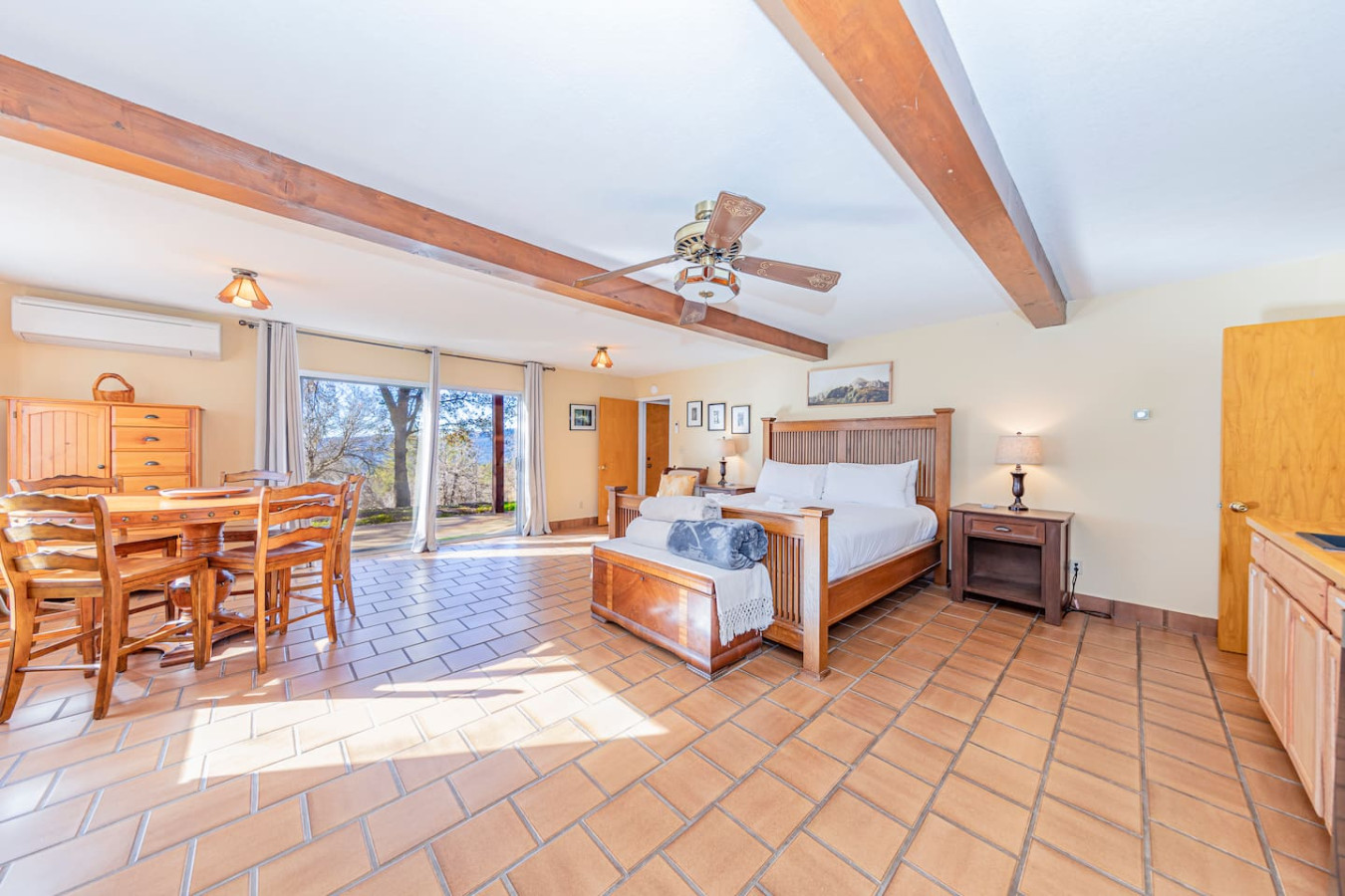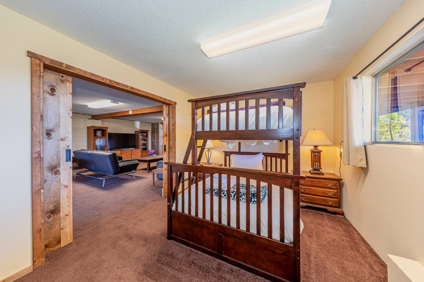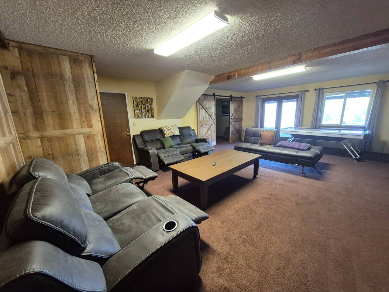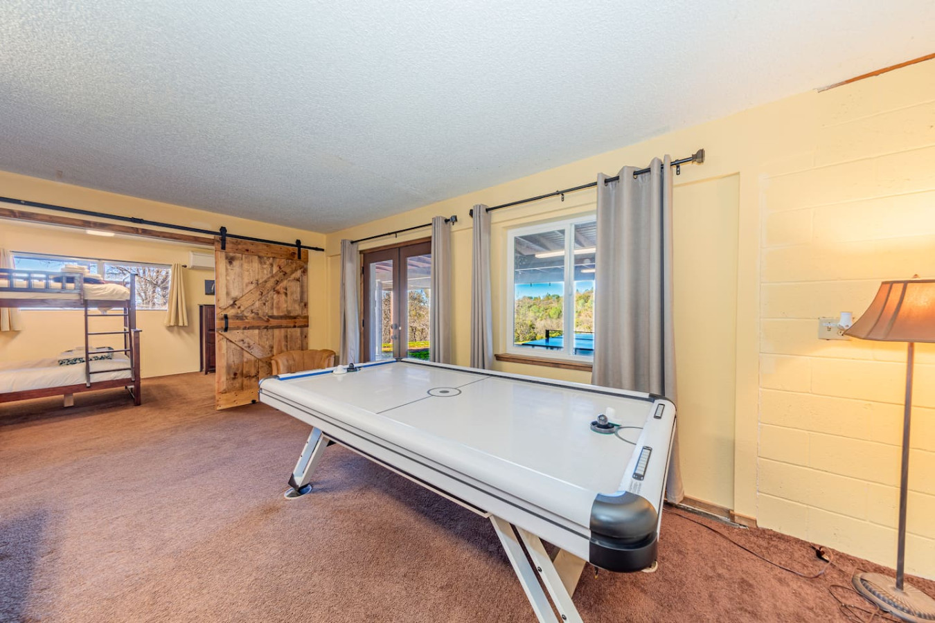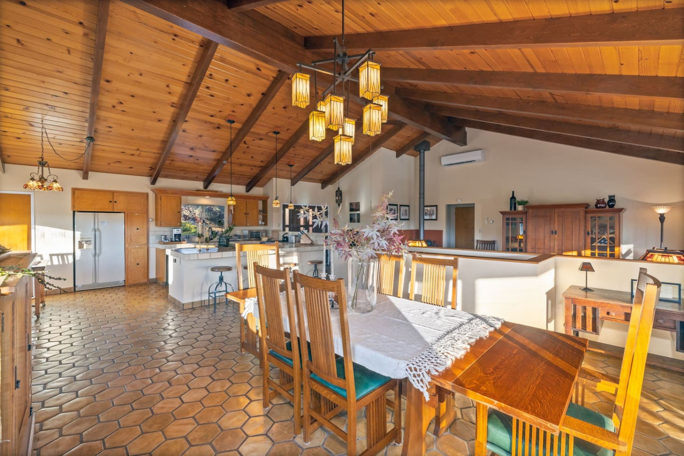 Exquisite Villa atop 10-acres of forest land close to Yosemite and Bass Lake, with twin creeks, hiking trails and bridge, all inside the property. Family-friendly 2-story villa offers a wrap-around deck with valley views and exquisite sunset over acres of forest land all within the property and well-maintained by owner himself. Fully-loaded with amenities, games, and activities, this forest villa offers a luxurious vacation amidst a spectacular Sierra view. Now with EV Charger, Ping Pong Table. 2-Story Villa in the middle of 10 acres of Cedars and Pines. With wrap around deck, and a Hip Camp for adventure! Now with 3 full bathrooms, each of the 4 bedrooms have attached bathroom and doors for privacy. 4th bedroom includes entertainment room with locked doors on either side. With double-yellow line paved roads all the way to the driveway, this Beautiful private and peaceful home sitting atop 10 gorgeous acres will be your winter and summer destination, with views of the mountains, the sunsets and abundant wildlife. OUTDOOR ACTIVITIES Connect with nature on a walk along the hiking trails that take you down to twin creeks on on side and up to forest grove at the other side, with seating provided at both the places. Watch animals all around the orchard and creeks taking a sip at the water holes. LIVING SPACE The interior features 2100 sq ft of Living area, an open floor plan with high ceilings, custom lighting, a phenomenally beautiful kitchen with pantry and bar top, a freestanding wood stove fireplace, and big sliding doors opening up to covered porches from upstairs living room and downstairs master bedroom, both looking over a park like setting with manzanitas, cedars, and oaks, and plenty of forest land with wildlife galore. AMENITIES: The 4 bedroom, 3 Full bath features multilevel parking, a Game room with Air Hockey and games, an outdoor ping pong table that is climate proof, a Hot tub on the upstairs open deck under the stars with the magnificent view of Sierra all around, BBQ Grill, Propane firepit and 4 different seating areas. HIP CAMP Hip Camp Site offers separate reservation and features a separate driveway down to the left as soon as you enter the main Driveway from the Jean Road. Villa parking is on the RIGHT MOST lane going up in front of the Carport. All Areas except Owner's closet (Shed) and Cleaner's closets (Downstairs, keypad door) We are available whenever needed by guests, within minutes. office is located at Oakhurst Plaza, besides the Yosemite Visitor Center. Private mountain home on a hill in a rural location. You will need a car to get around. About 8 minute drive to restaurants and shopping. You will need a car to get around. About 8 minute drive to restaurants and shopping. Great roads will take you all the way to the driveway. Road is maintained by county year-long. All-wheel drive is recommended during winter as this house enjoys fair amount of snow.