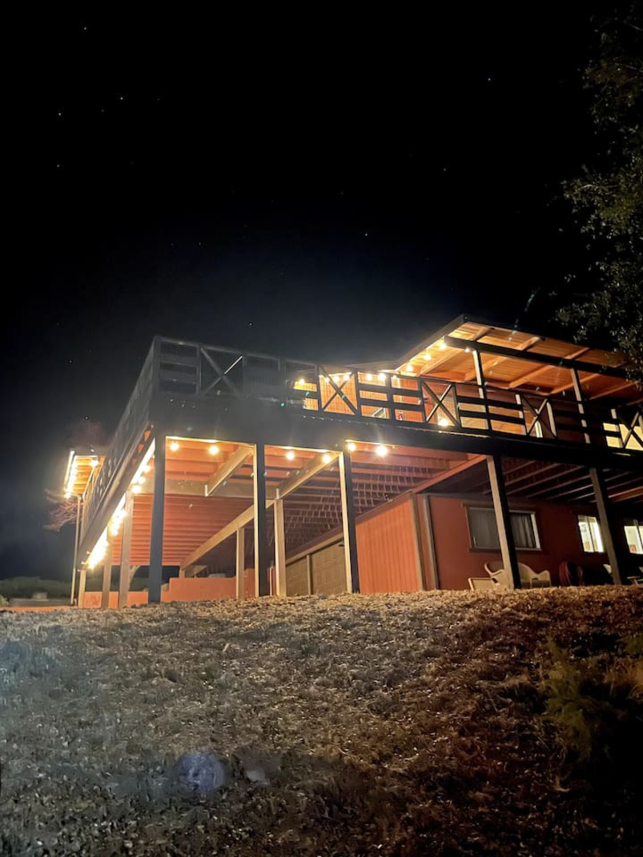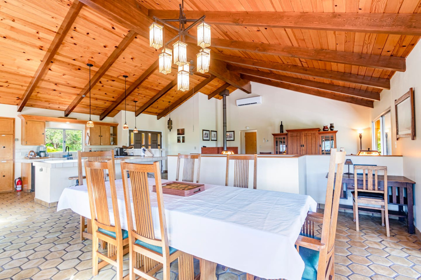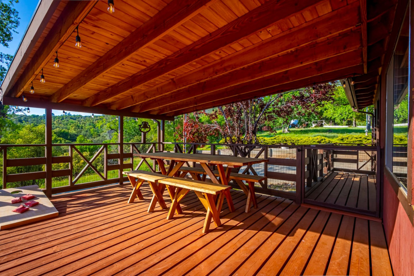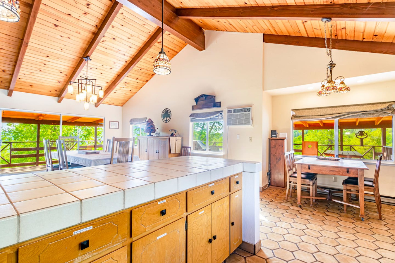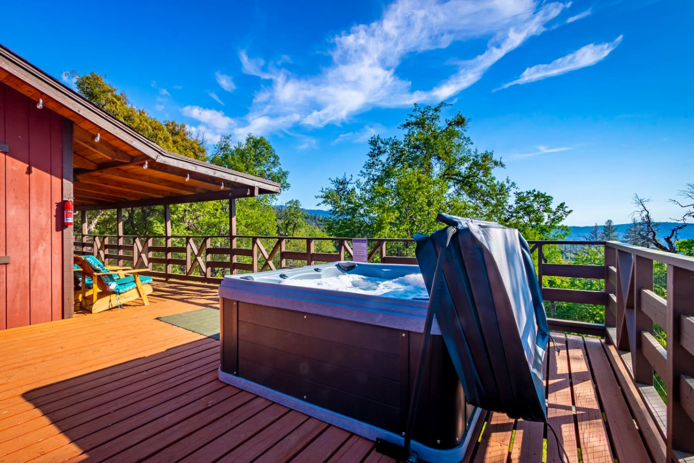 Step into adventure at our secluded mountain vila ideal for family of six. This private hillside haven, is all over the same floor, offers 2 Bedrooms with attached bathrooms, a hot tub, EV Charger, BBQ Grill, Fire pit, and a mesmerizing sunset vista. 10 min to Bass Lake, and a thrilling 20-minute journey to Yosemite South Gate. Unit downstairs is separate, with 2 more bedrooms, one with attached full bathroom as well as entertainment room. You may add a-la-carte via guest portal after booking. LIVING SPACE The interior features 1600 sq ft of Living area, an open floor plan with high ceilings, custom lighting, a phenomenally beautiful kitchen with pantry and bar top, a freestanding wood stove fireplace, and big sliding doors opening up to covered porches from upstairs living room both looking over a park like setting with manzanitas, cedars, and oaks, and plenty of forest land with wildlife galore. AMENITIES: The 2 Full bedroom, with 2 Full attached bath. Features Carport with parking and EV Charger, a patio and view to die for, an outdoor ping pong table that is climate proof, a Hot tub on the upstairs open deck under the stars with the magnificent view of Sierra all around, BBQ Grill, Propane fire-pit and 4 different seating areas. PARKING Once you enter the Driveway, stay on the right to park by the Carport and the area marked as Upstairs parking area. HIP CAMP Hip Camp Site offers separate reservation and features a separate driveway down to the left as soon as you enter the main Driveway from the Jean Road. All Areas except Owner's closet (Shed) and Cleaner's closets (Downstairs, keypad door) We are available whenever needed by guests, within minutes. office is located at Oakhurst Plaza, besides the Yosemite Visitor Center. 2-Story Villa stands in the middle of 10 acres of Cedars and Pines. With wrap around deck, and a Hip Camp for adventure! Now with 3 full bathrooms, each of the 4 bedrooms have attached bathroom and doors for privacy. 4th bedroom includes entertainment room with locked doors on either side. With double-yellow line paved roads all the way to the driveway, this Beautiful private and peaceful home sitting atop 10 gorgeous acres will be your winter and summer destination, with views of the mountains, the sunsets and abundant wildlife. OUTDOOR ACTIVITIES Connect with nature on a walk along the hiking trails that take you down to twin creeks on on side and up to forest grove at the other side, with seating provided at both the places. Watch animals all around the orchard and creeks taking a sip at the water holes. Jean Rd undoubtedly has one of the best views and the bigger ranch-houses in the Oakhurst Valley, The house is a Private mountain home located at 3100 ft over sea level, atop a hill in a rural location. You will need a car to get around. About 8 minute drive to restaurants and shopping. Great roads will take you all the way to the driveway. Road is maintained by county year-long. All-wheel drive is recommended during winter as this house enjoys fair amount of snow.
