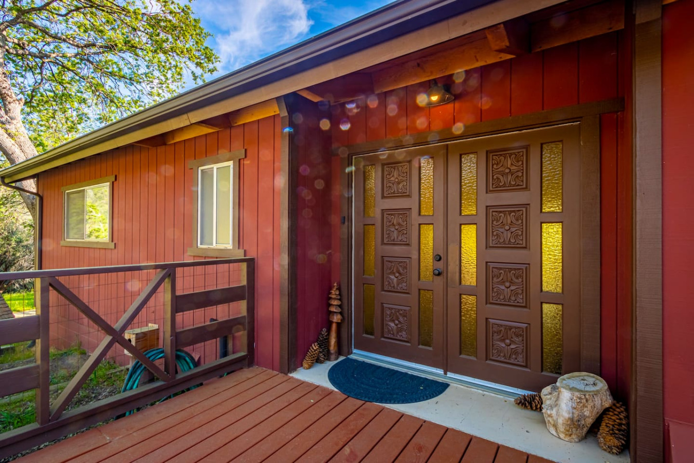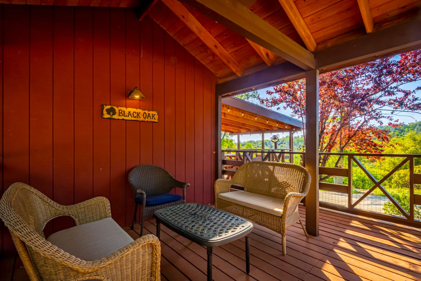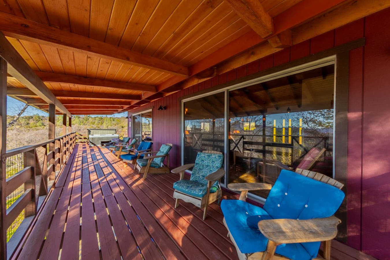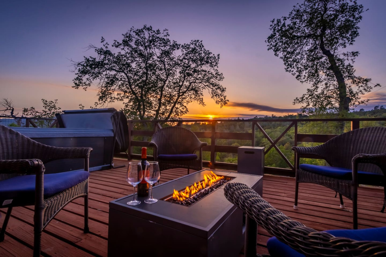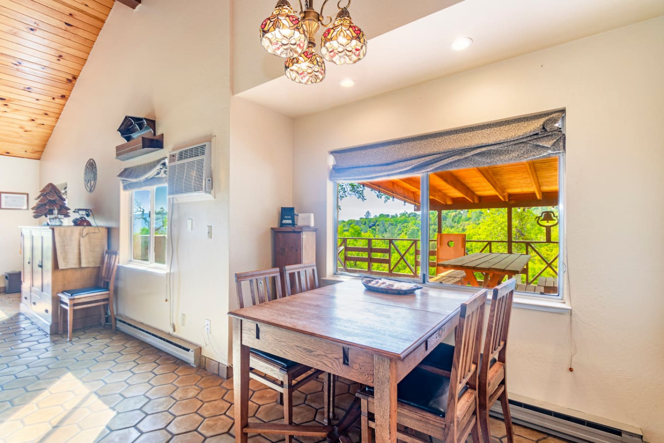 Step into adventure at our secluded mountain vila ideal for family of six. This private hillside haven, is all over the same floor, offers 2 Bedrooms with attached bathrooms, a hot tub, EV Charger, BBQ Grill, Fire pit, and a mesmerizing sunset vista. 10 min to Bass Lake, and a thrilling 20-minute journey to Yosemite South Gate. Unit downstairs is separate, with 2 more bedrooms, one with attached full bathroom as well as entertainment room. You may add a-la-carte via guest portal after booking. LIVING SPACE The interior features 1600 sq ft of Living area, an open floor plan with high ceilings, custom lighting, a phenomenally beautiful kitchen with pantry and bar top, a freestanding wood stove fireplace, and big sliding doors opening up to covered porches from upstairs living room both looking over a park like setting with manzanitas, cedars, and oaks, and plenty of forest land with wildlife galore. AMENITIES: The 2 Full bedroom, with 2 Full attached bath. Features Carport with parking and EV Charger, a patio and view to die for, an outdoor ping pong table that is climate proof, a Hot tub on the upstairs open deck under the stars with the magnificent view of Sierra all around, BBQ Grill, Propane fire-pit and 4 different seating areas. PARKING Once you enter the Driveway, stay on the right to park by the Carport and the area marked as Upstairs parking area. HIP CAMP Hip Camp Site offers separate reservation and features a separate driveway down to the left as soon as you enter the main Driveway from the Jean Road. All Areas except Owner's closet (Shed) and Cleaner's closets (Downstairs, keypad door) We are available whenever needed by guests, within minutes. office is located at Oakhurst Plaza, besides the Yosemite Visitor Center. 2-Story Villa stands in the middle of 10 acres of Cedars and Pines. With wrap around deck, and a Hip Camp for adventure! Now with 3 full bathrooms, each of the 4 bedrooms have attached bathroom and doors for privacy. 4th bedroom includes entertainment room with locked doors on either side. With double-yellow line paved roads all the way to the driveway, this Beautiful private and peaceful home sitting atop 10 gorgeous acres will be your winter and summer destination, with views of the mountains, the sunsets and abundant wildlife. OUTDOOR ACTIVITIES Connect with nature on a walk along the hiking trails that take you down to twin creeks on on side and up to forest grove at the other side, with seating provided at both the places. Watch animals all around the orchard and creeks taking a sip at the water holes. Jean Rd undoubtedly has one of the best views and the bigger ranch-houses in the Oakhurst Valley, The house is a Private mountain home located at 3100 ft over sea level, atop a hill in a rural location. You will need a car to get around. About 8 minute drive to restaurants and shopping. Great roads will take you all the way to the driveway. Road is maintained by county year-long. All-wheel drive is recommended during winter as this house enjoys fair amount of snow.