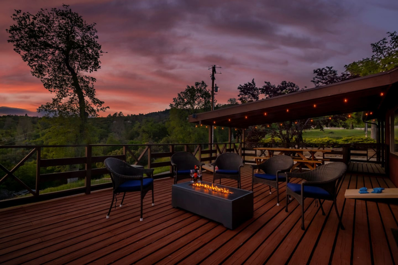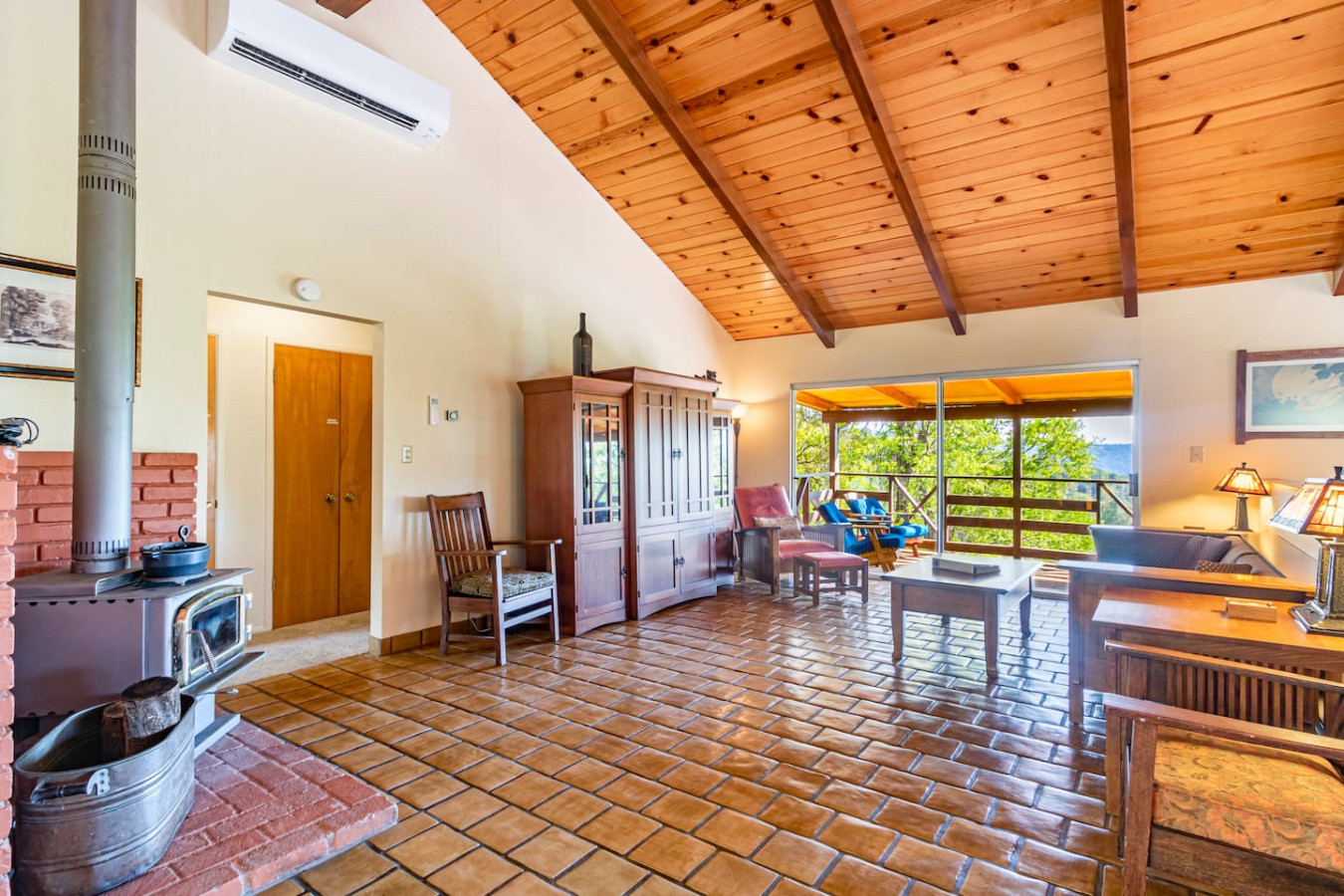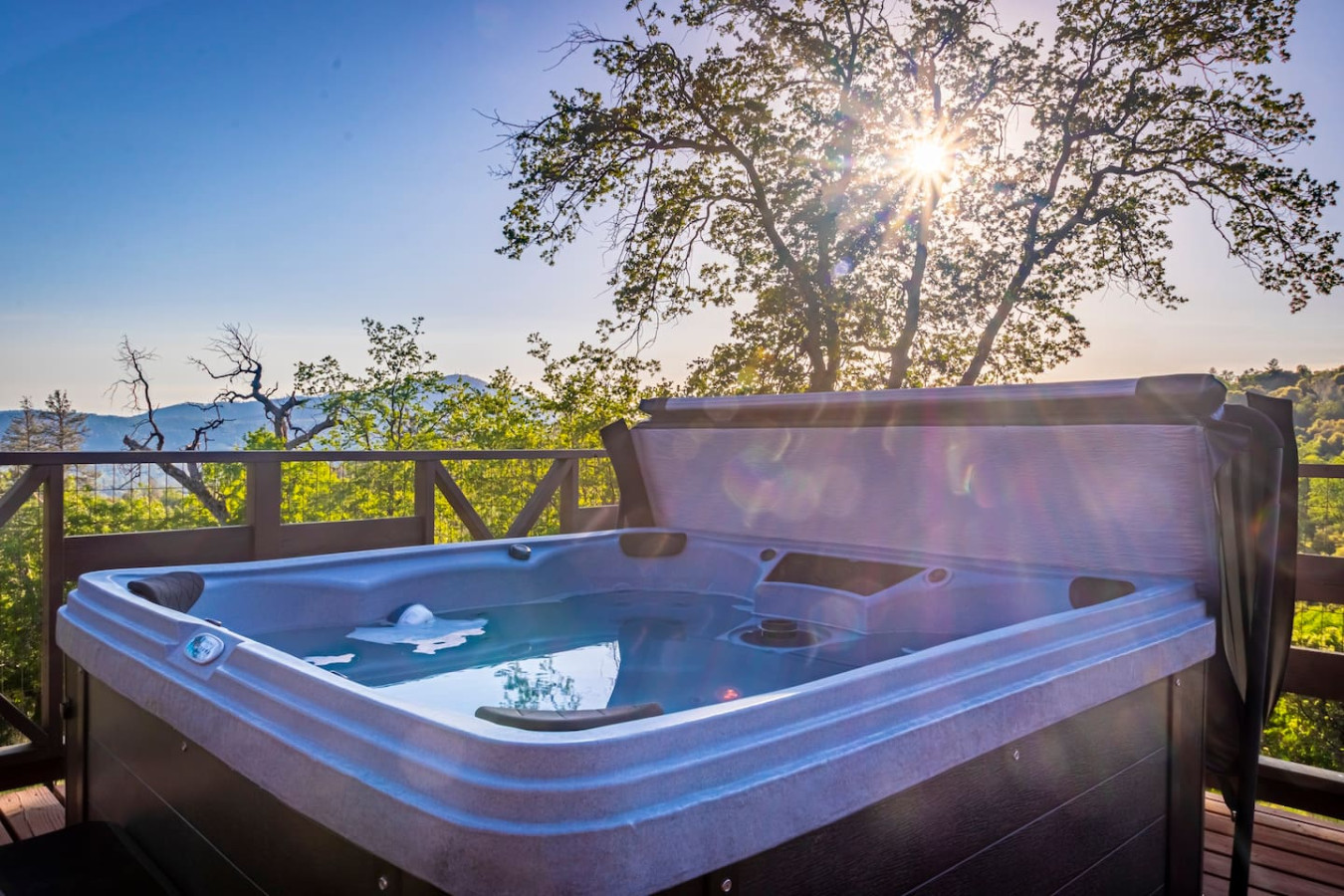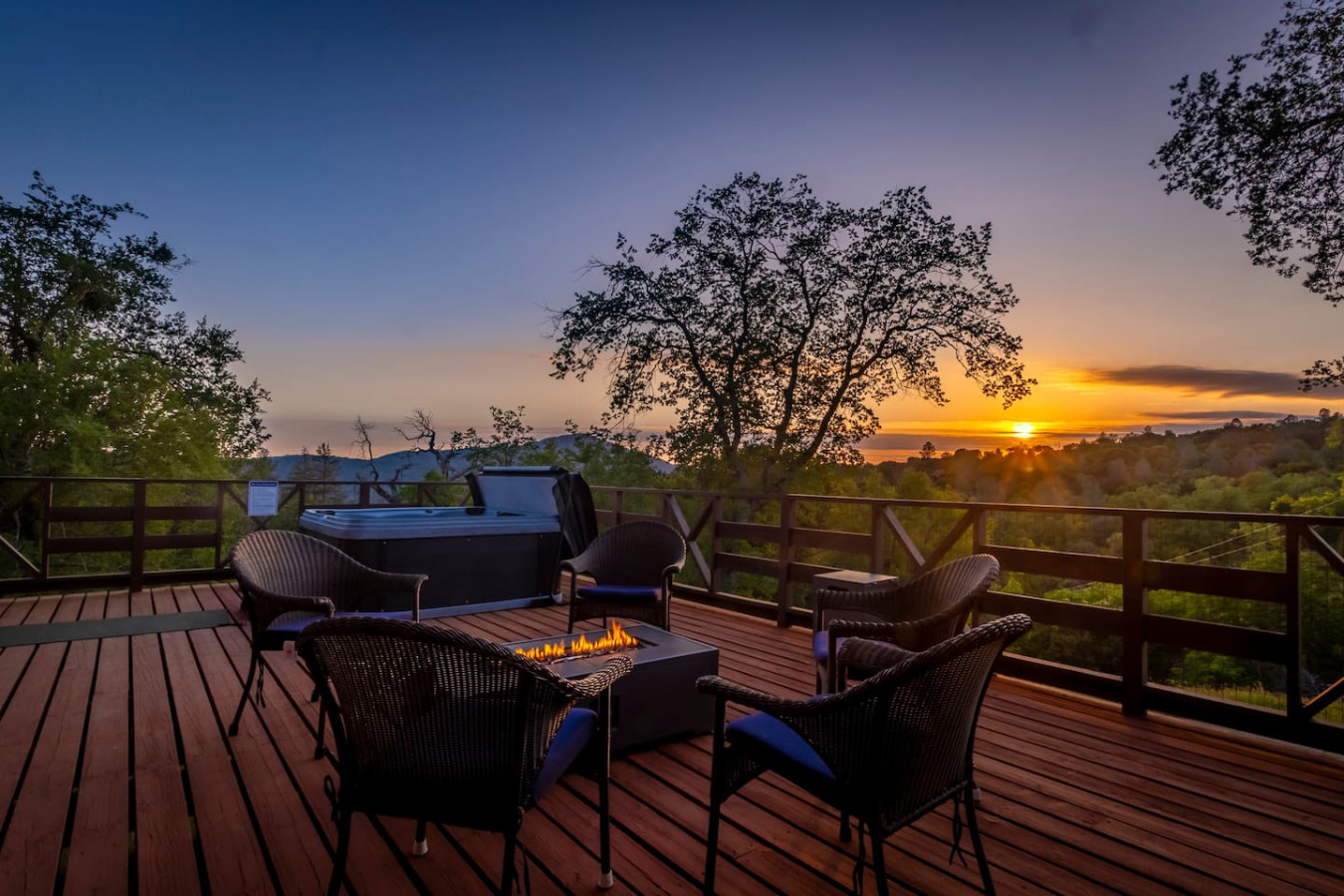 Step into adventure at our secluded mountain vila ideal for family of six. This private hillside haven, is all over the same floor, offers 2 Bedrooms with attached bathrooms, a hot tub, EV Charger, BBQ Grill, Fire pit, and a mesmerizing sunset vista. 10 min to Bass Lake, and a thrilling 20-minute journey to Yosemite South Gate. Unit downstairs is separate, with 2 more bedrooms, one with attached full bathroom as well as entertainment room. You may add a-la-carte via guest portal after booking. LIVING SPACE The interior features 1600 sq ft of Living area, an open floor plan with high ceilings, custom lighting, a phenomenally beautiful kitchen with pantry and bar top, a freestanding wood stove fireplace, and big sliding doors opening up to covered porches from upstairs living room both looking over a park like setting with manzanitas, cedars, and oaks, and plenty of forest land with wildlife galore. AMENITIES: The 2 Full bedroom, with 2 Full attached bath. Features Carport with parking and EV Charger, a patio and view to die for, an outdoor ping pong table that is climate proof, a Hot tub on the upstairs open deck under the stars with the magnificent view of Sierra all around, BBQ Grill, Propane fire-pit and 4 different seating areas. PARKING Once you enter the Driveway, stay on the right to park by the Carport and the area marked as Upstairs parking area. HIP CAMP Hip Camp Site offers separate reservation and features a separate driveway down to the left as soon as you enter the main Driveway from the Jean Road. All Areas except Owner's closet (Shed) and Cleaner's closets (Downstairs, keypad door) We are available whenever needed by guests, within minutes. office is located at Oakhurst Plaza, besides the Yosemite Visitor Center. 2-Story Villa stands in the middle of 10 acres of Cedars and Pines. With wrap around deck, and a Hip Camp for adventure! Now with 3 full bathrooms, each of the 4 bedrooms have attached bathroom and doors for privacy. 4th bedroom includes entertainment room with locked doors on either side. With double-yellow line paved roads all the way to the driveway, this Beautiful private and peaceful home sitting atop 10 gorgeous acres will be your winter and summer destination, with views of the mountains, the sunsets and abundant wildlife. OUTDOOR ACTIVITIES Connect with nature on a walk along the hiking trails that take you down to twin creeks on on side and up to forest grove at the other side, with seating provided at both the places. Watch animals all around the orchard and creeks taking a sip at the water holes. Jean Rd undoubtedly has one of the best views and the bigger ranch-houses in the Oakhurst Valley, The house is a Private mountain home located at 3100 ft over sea level, atop a hill in a rural location. You will need a car to get around. About 8 minute drive to restaurants and shopping. Great roads will take you all the way to the driveway. Road is maintained by county year-long. All-wheel drive is recommended during winter as this house enjoys fair amount of snow.