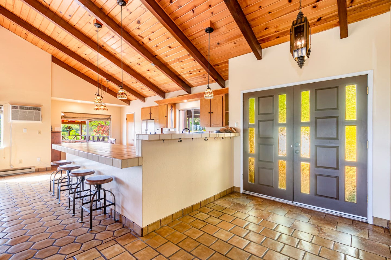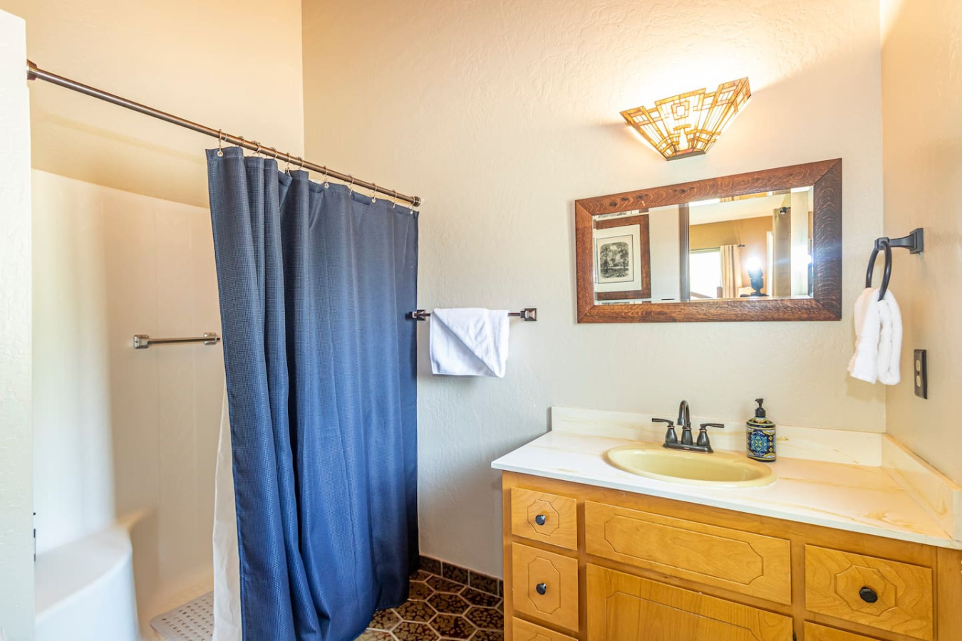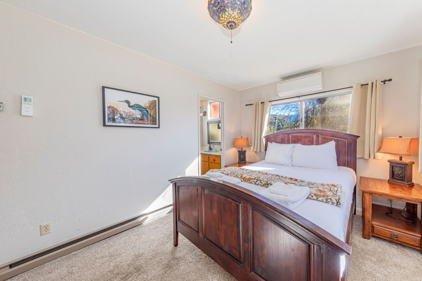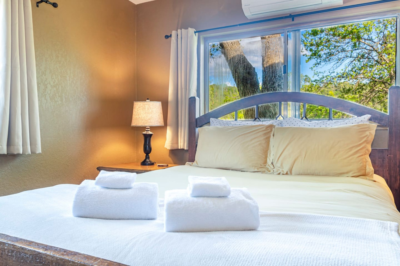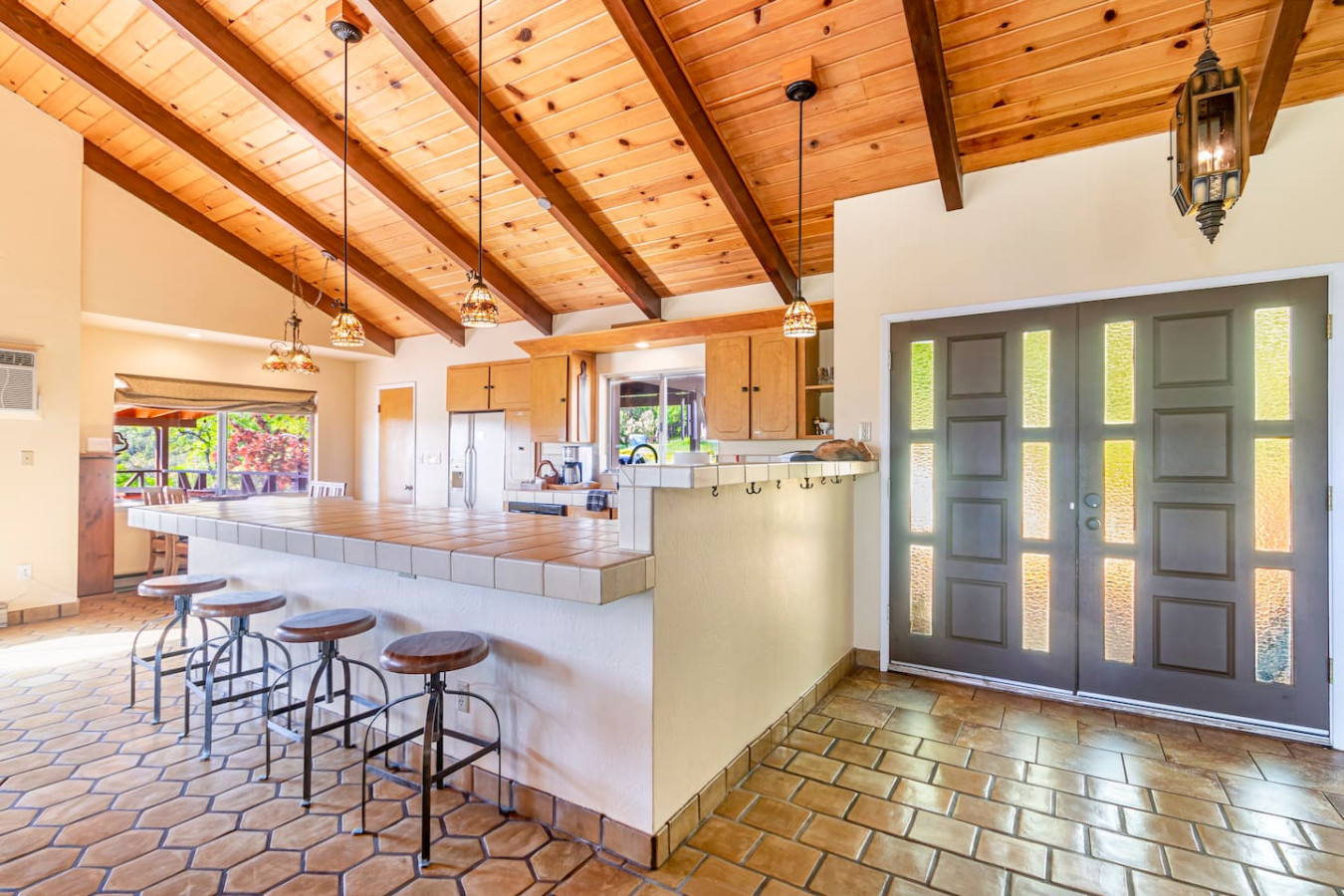 Step into adventure at our secluded mountain vila ideal for family of six. This private hillside haven, is all over the same floor, offers 2 Bedrooms with attached bathrooms, a hot tub, EV Charger, BBQ Grill, Fire pit, and a mesmerizing sunset vista. 10 min to Bass Lake, and a thrilling 20-minute journey to Yosemite South Gate. Unit downstairs is separate, with 2 more bedrooms, one with attached full bathroom as well as entertainment room. You may add a-la-carte via guest portal after booking. LIVING SPACE The interior features 1600 sq ft of Living area, an open floor plan with high ceilings, custom lighting, a phenomenally beautiful kitchen with pantry and bar top, a freestanding wood stove fireplace, and big sliding doors opening up to covered porches from upstairs living room both looking over a park like setting with manzanitas, cedars, and oaks, and plenty of forest land with wildlife galore. AMENITIES: The 2 Full bedroom, with 2 Full attached bath. Features Carport with parking and EV Charger, a patio and view to die for, an outdoor ping pong table that is climate proof, a Hot tub on the upstairs open deck under the stars with the magnificent view of Sierra all around, BBQ Grill, Propane fire-pit and 4 different seating areas. PARKING Once you enter the Driveway, stay on the right to park by the Carport and the area marked as Upstairs parking area. HIP CAMP Hip Camp Site offers separate reservation and features a separate driveway down to the left as soon as you enter the main Driveway from the Jean Road. All Areas except Owner's closet (Shed) and Cleaner's closets (Downstairs, keypad door) We are available whenever needed by guests, within minutes. office is located at Oakhurst Plaza, besides the Yosemite Visitor Center. 2-Story Villa stands in the middle of 10 acres of Cedars and Pines. With wrap around deck, and a Hip Camp for adventure! Now with 3 full bathrooms, each of the 4 bedrooms have attached bathroom and doors for privacy. 4th bedroom includes entertainment room with locked doors on either side. With double-yellow line paved roads all the way to the driveway, this Beautiful private and peaceful home sitting atop 10 gorgeous acres will be your winter and summer destination, with views of the mountains, the sunsets and abundant wildlife. OUTDOOR ACTIVITIES Connect with nature on a walk along the hiking trails that take you down to twin creeks on on side and up to forest grove at the other side, with seating provided at both the places. Watch animals all around the orchard and creeks taking a sip at the water holes. Jean Rd undoubtedly has one of the best views and the bigger ranch-houses in the Oakhurst Valley, The house is a Private mountain home located at 3100 ft over sea level, atop a hill in a rural location. You will need a car to get around. About 8 minute drive to restaurants and shopping. Great roads will take you all the way to the driveway. Road is maintained by county year-long. All-wheel drive is recommended during winter as this house enjoys fair amount of snow.