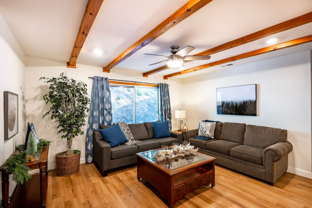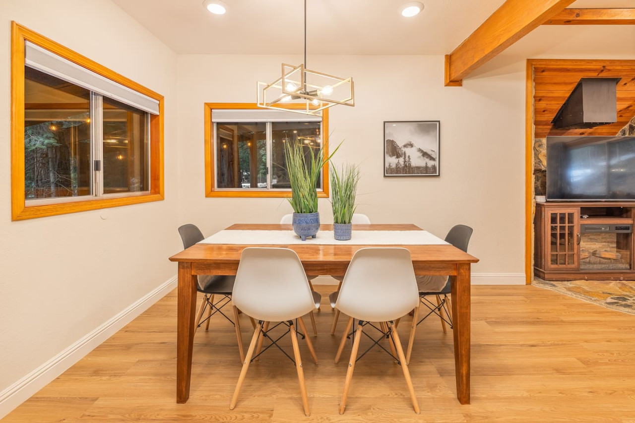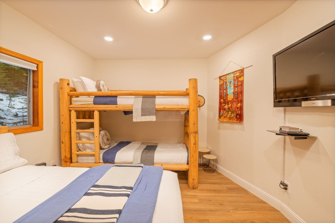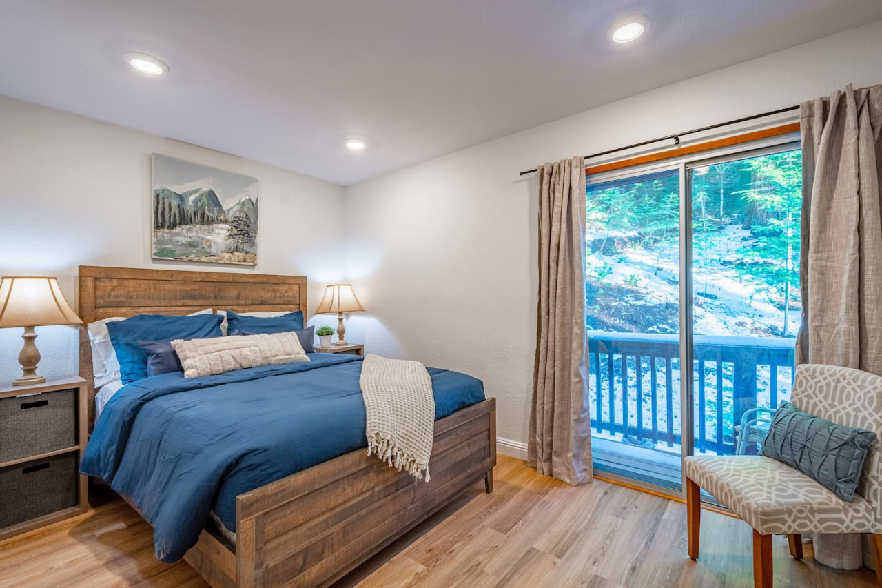 Only 8 Miles from Yosemite South Entrance, this 3 Bed 2-Full Bath is one of the cabins in Sugar Pine Trailhead Lodge that sits by the famous Lewis Creek Upper Trailhead, and is only a mile away from the Lewis Creek Middle Trailhead, either one will lead you to the gorgeous Corlieu Falls. Cabin comes with a scenic Gazebo with Hot Tub and Firepit, a vintage old fashion patio with a Bar setting and swings, and a brand new stacked washer and dryer. Enjoy work or Leisure with melancholic Lewis Creek water audible across the road. Newly upgraded and redecorated interiors, newly added Washer and dryer, brand-new central heating, and a well-appointed full kitchen with a coffee maker, blender, and instant pot, you would find it just out of the catalog. A perfect setting for families and friends! The perfect Location: Close to Yosemite South Entrance (8 miles). Next to Sugar Pine Railroad (5 minutes) Direct access to Lewis Creek Trail in the property 0.6 miles hike to Red Rock Falls 1 mile drive to the trailhead for Corlieu Falls Short 9 miles drive to Bass Lake 5 miles to Nelder Grove for giant sequoias without the crowds Next to Tenaya lodge with take-out restaurants 9 miles to Oakhurst town for restaurants, grocery stores, gift shops, and gas Tesla superchargers in Tenaya lodge and Oakhurst town The Outdoors: Snow-filled surroundings and forest land (in winter) Lewis creek across the street and next to the lot Brand new rad shack and covered porch 45-jet, 6-person Hot Tub Fire pit BBQ Grill (Propane) Patio heater (Propane) on the porch and outdoor bar seating area Enough parking space The Indoors: Newly upgraded and redecorated 3 bedrooms and 2 bathrooms Brand new central heating and cooling (only cooling is turned-off during winter months to protect the condenser) Full kitchen with brand new appliances, coffee maker, blender, and Instant pot. Queen sofa bed in living room Bedroom balconies to enjoy beautiful outdoor views Lots of board games for all ages Retro video games in the downstairs bedroom connected to TV 2 Smart TVs Kids highchair You get access to the house and the surrounding area with its amenities! The guests are free to explore the surrounding forest/area at their own responsibility and risk. Owner or the host will not be liable for any damages or injuries. At 4200 ft elevation, located in the idyllic Sugar Pine community, surrounded by tall sweet-smelling sugar pines, enchanted with rumblings of Lewis creek running on the edges, blanketed by white snow and starry nights, this cabin makes a perfect vacation retreat. Close to Yosemite National Park's south entrance, Bass Lake, Badger Pass Ski Area, Sugar Pine Railroad, popular trails, and other amazing year-round activities in and around Yosemite. Whether you are exploring Yosemite, enjoying the snow play, boating in Bass Lake, hiking the Lewis Creek Trail, soaking in the amazing waterfalls, or mountain biking the miles of surrounding dirt roads, this is your ideal base for all amazing year-round activities in and around Yosemite!! Please note that the cell service could be poor in the mountains. Connect to Wi-fi for Wi-fi calling and texting. Sugar Pine is a quiet peaceful community. Parties (of any size), and loud noises past 9 pm are strictly prohibited, and local authorities are on top of that. Please be respectful of the community and its natural surroundings. Corlieu Falls cabin is one of the two cabins in the Sugar Pine Trailhead lodge. To book the whole lodge, please use our listing ‘Sugar Pine Trailhead Lodge’ in Oakhurst, CA. To book the other cabin in the lodge, please use our listing ‘Red Rock Falls Cabin’ in Oakhurst, CA.