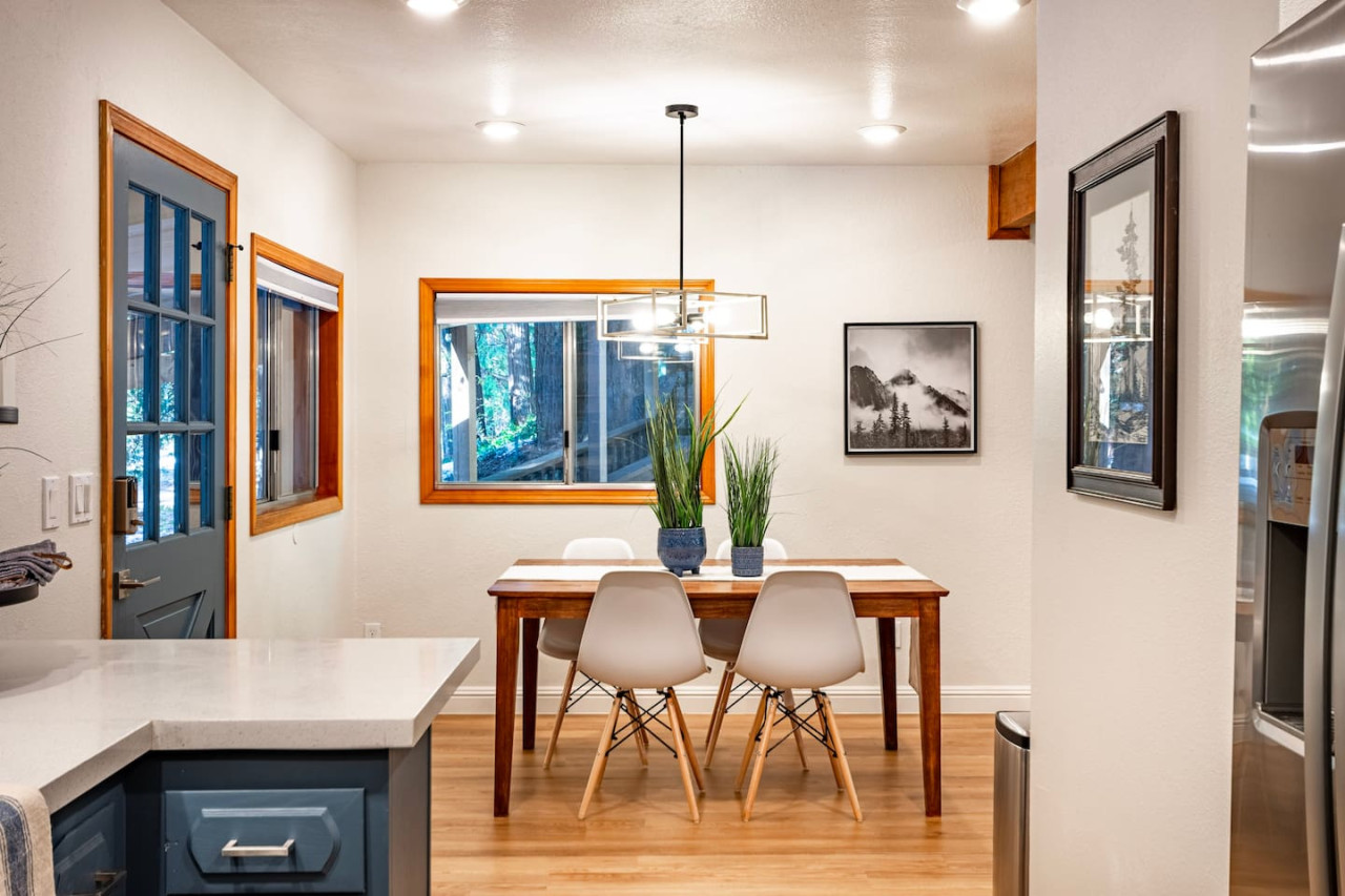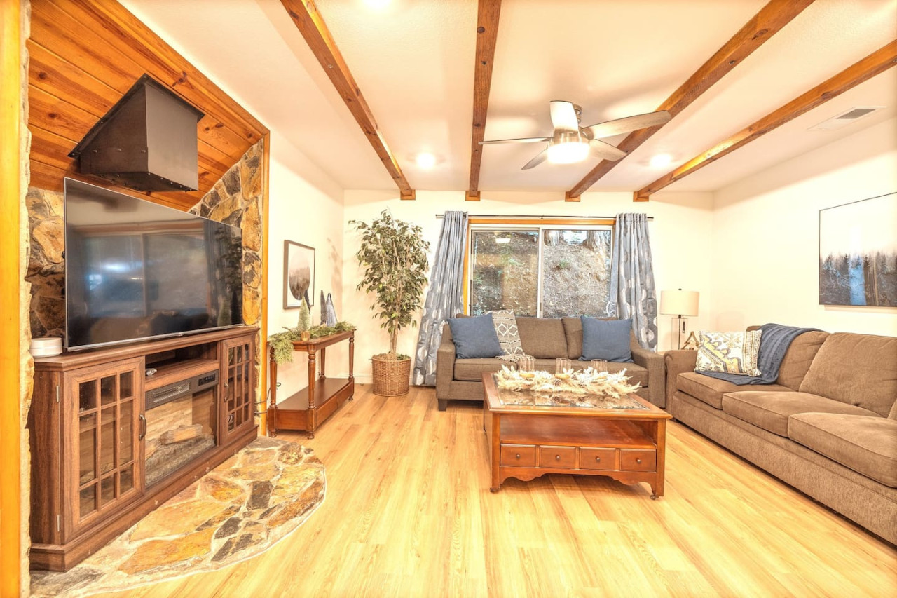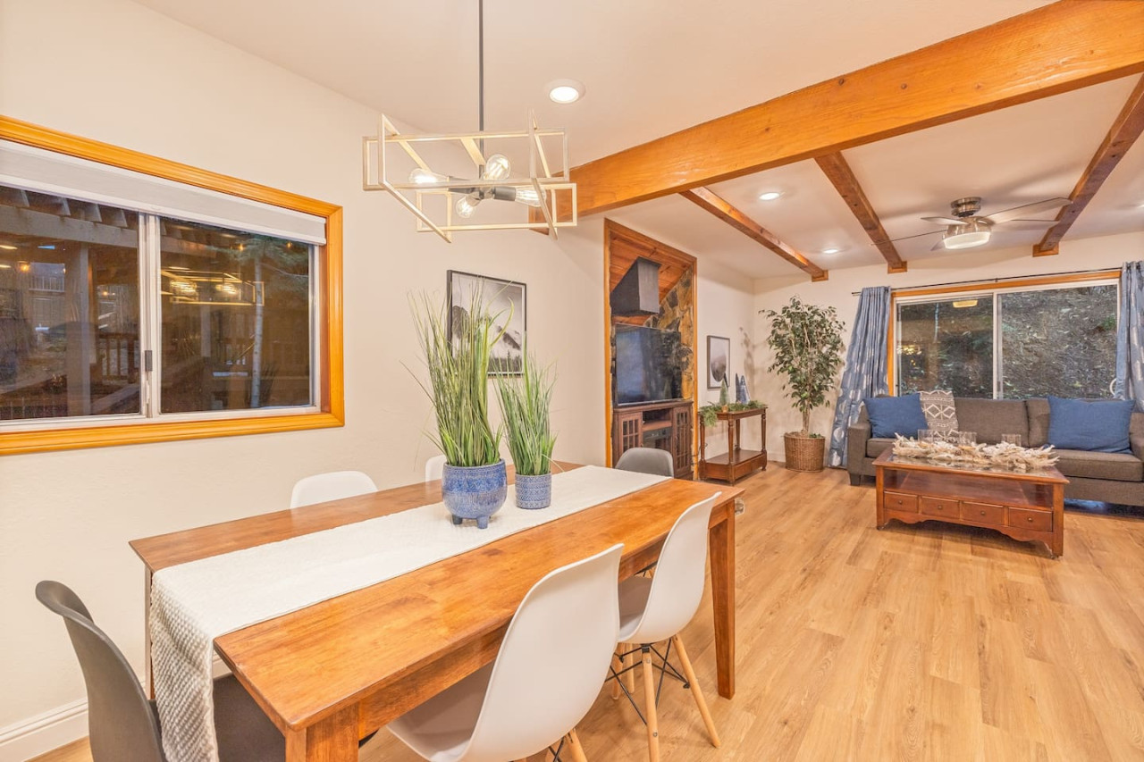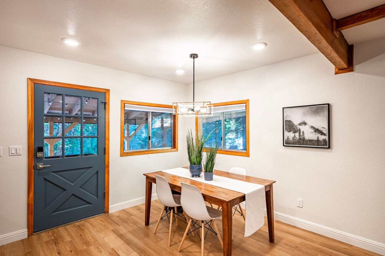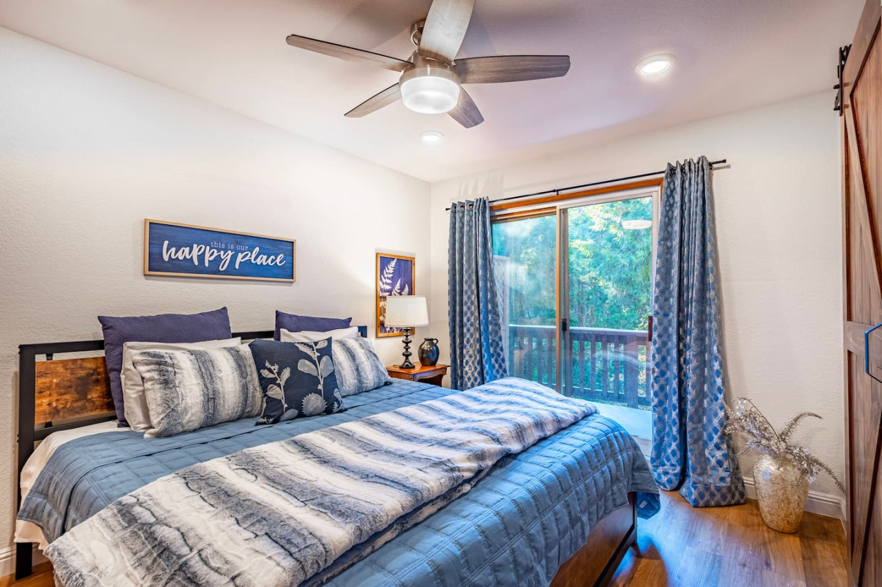 Only 8 Miles from Yosemite South Entrance, this 3 Bed 2-Full Bath is one of the cabins in Sugar Pine Trailhead Lodge that sits by the famous Lewis Creek Upper Trailhead, and is only a mile away from the Lewis Creek Middle Trailhead, either one will lead you to the gorgeous Corlieu Falls. Cabin comes with a scenic Gazebo with Hot Tub and Firepit, a vintage old fashion patio with a Bar setting and swings, and a brand new stacked washer and dryer. Enjoy work or Leisure with melancholic Lewis Creek water audible across the road. Newly upgraded and redecorated interiors, newly added Washer and dryer, brand-new central heating, and a well-appointed full kitchen with a coffee maker, blender, and instant pot, you would find it just out of the catalog. A perfect setting for families and friends! The perfect Location: Close to Yosemite South Entrance (8 miles). Next to Sugar Pine Railroad (5 minutes) Direct access to Lewis Creek Trail in the property 0.6 miles hike to Red Rock Falls 1 mile drive to the trailhead for Corlieu Falls Short 9 miles drive to Bass Lake 5 miles to Nelder Grove for giant sequoias without the crowds Next to Tenaya lodge with take-out restaurants 9 miles to Oakhurst town for restaurants, grocery stores, gift shops, and gas Tesla superchargers in Tenaya lodge and Oakhurst town The Outdoors: Snow-filled surroundings and forest land (in winter) Lewis creek across the street and next to the lot Brand new rad shack and covered porch 45-jet, 6-person Hot Tub Fire pit BBQ Grill (Propane) Patio heater (Propane) on the porch and outdoor bar seating area Enough parking space The Indoors: Newly upgraded and redecorated 3 bedrooms and 2 bathrooms Brand new central heating and cooling (only cooling is turned-off during winter months to protect the condenser) Full kitchen with brand new appliances, coffee maker, blender, and Instant pot. Queen sofa bed in living room Bedroom balconies to enjoy beautiful outdoor views Lots of board games for all ages Retro video games in the downstairs bedroom connected to TV 2 Smart TVs Kids highchair You get access to the house and the surrounding area with its amenities! The guests are free to explore the surrounding forest/area at their own responsibility and risk. Owner or the host will not be liable for any damages or injuries. At 4200 ft elevation, located in the idyllic Sugar Pine community, surrounded by tall sweet-smelling sugar pines, enchanted with rumblings of Lewis creek running on the edges, blanketed by white snow and starry nights, this cabin makes a perfect vacation retreat. Close to Yosemite National Park's south entrance, Bass Lake, Badger Pass Ski Area, Sugar Pine Railroad, popular trails, and other amazing year-round activities in and around Yosemite. Whether you are exploring Yosemite, enjoying the snow play, boating in Bass Lake, hiking the Lewis Creek Trail, soaking in the amazing waterfalls, or mountain biking the miles of surrounding dirt roads, this is your ideal base for all amazing year-round activities in and around Yosemite!! Please note that the cell service could be poor in the mountains. Connect to Wi-fi for Wi-fi calling and texting. Sugar Pine is a quiet peaceful community. Parties (of any size), and loud noises past 9 pm are strictly prohibited, and local authorities are on top of that. Please be respectful of the community and its natural surroundings. Corlieu Falls cabin is one of the two cabins in the Sugar Pine Trailhead lodge. To book the whole lodge, please use our listing ‘Sugar Pine Trailhead Lodge’ in Oakhurst, CA. To book the other cabin in the lodge, please use our listing ‘Red Rock Falls Cabin’ in Oakhurst, CA.