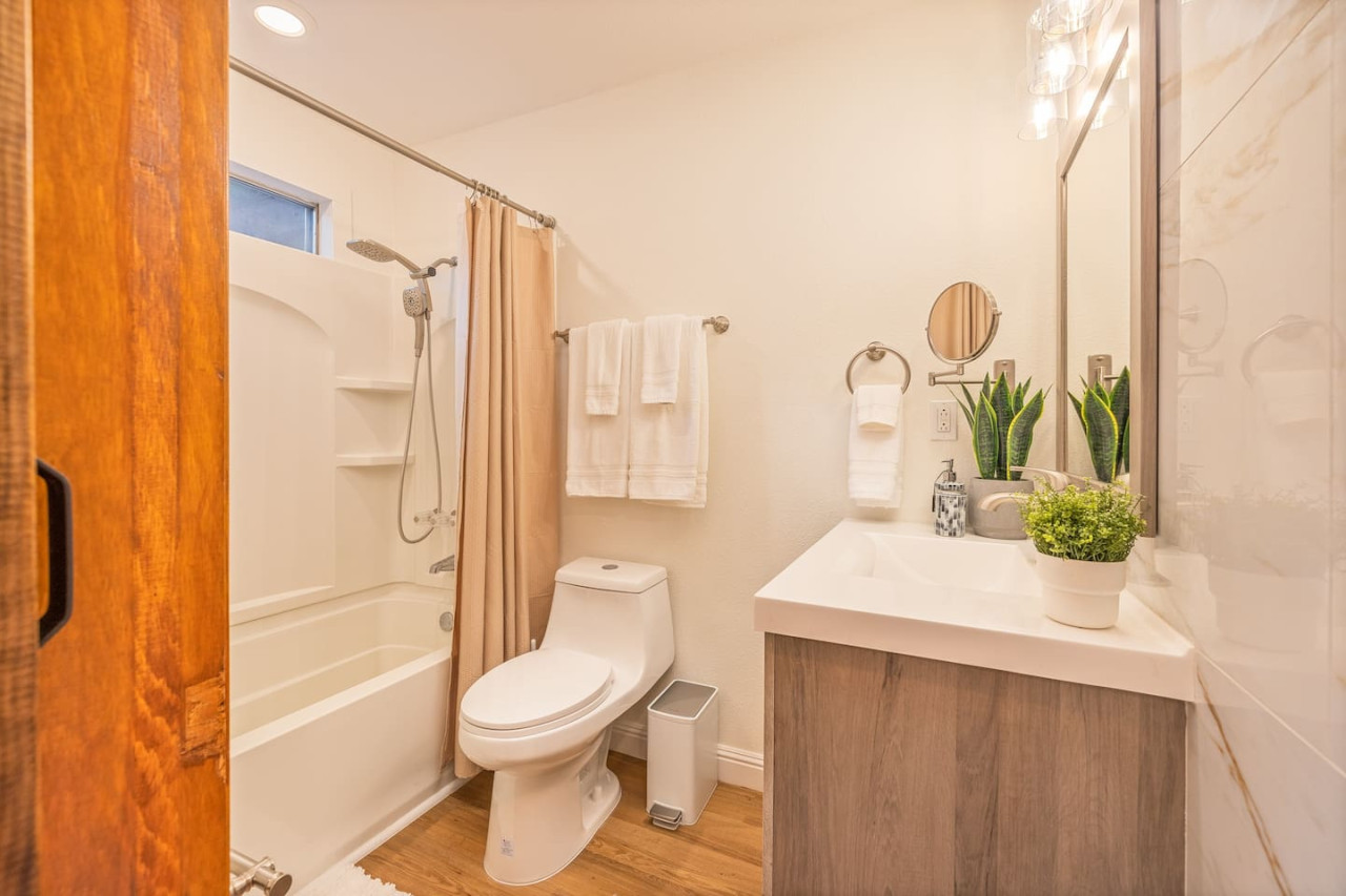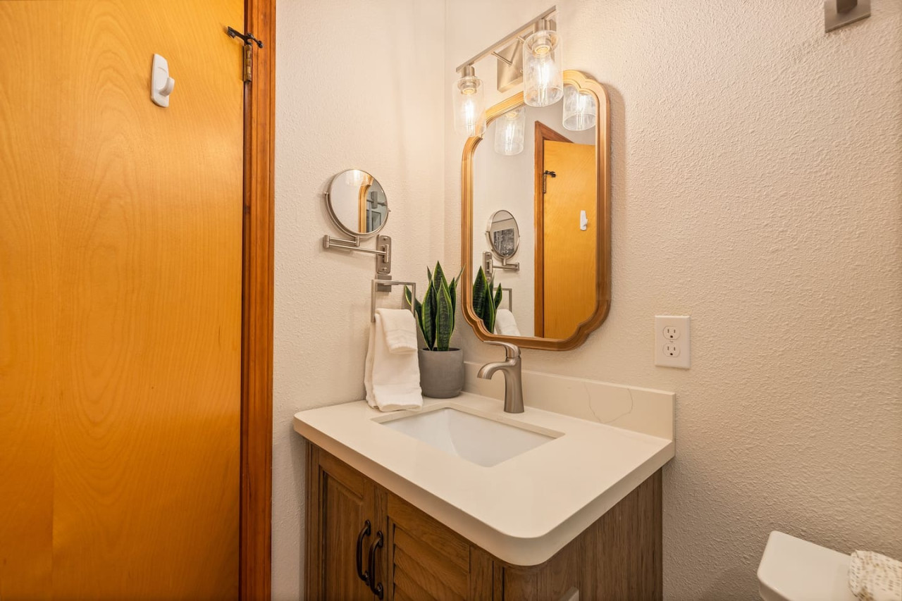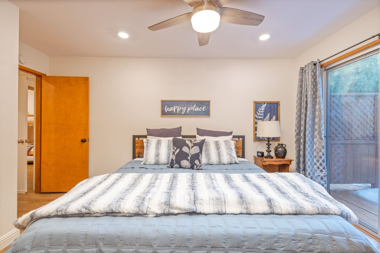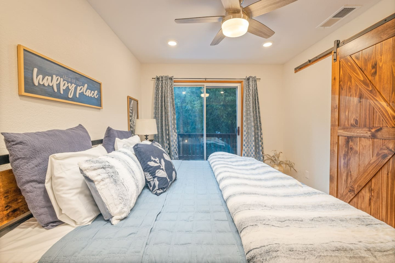 Only 8 Miles from Yosemite South Entrance, this 3 Bed 2-Full Bath is one of the cabins in Sugar Pine Trailhead Lodge that sits by the famous Lewis Creek Upper Trailhead, and is only a mile away from the Lewis Creek Middle Trailhead, either one will lead you to the gorgeous Corlieu Falls. Cabin comes with a scenic Gazebo with Hot Tub and Firepit, a vintage old fashion patio with a Bar setting and swings, and a brand new stacked washer and dryer. Enjoy work or Leisure with melancholic Lewis Creek water audible across the road. Newly upgraded and redecorated interiors, newly added Washer and dryer, brand-new central heating, and a well-appointed full kitchen with a coffee maker, blender, and instant pot, you would find it just out of the catalog. A perfect setting for families and friends! The perfect Location: Close to Yosemite South Entrance (8 miles). Next to Sugar Pine Railroad (5 minutes) Direct access to Lewis Creek Trail in the property 0.6 miles hike to Red Rock Falls 1 mile drive to the trailhead for Corlieu Falls Short 9 miles drive to Bass Lake 5 miles to Nelder Grove for giant sequoias without the crowds Next to Tenaya lodge with take-out restaurants 9 miles to Oakhurst town for restaurants, grocery stores, gift shops, and gas Tesla superchargers in Tenaya lodge and Oakhurst town The Outdoors: Snow-filled surroundings and forest land (in winter) Lewis creek across the street and next to the lot Brand new rad shack and covered porch 45-jet, 6-person Hot Tub Fire pit BBQ Grill (Propane) Patio heater (Propane) on the porch and outdoor bar seating area Enough parking space The Indoors: Newly upgraded and redecorated 3 bedrooms and 2 bathrooms Brand new central heating and cooling (only cooling is turned-off during winter months to protect the condenser) Full kitchen with brand new appliances, coffee maker, blender, and Instant pot. Queen sofa bed in living room Bedroom balconies to enjoy beautiful outdoor views Lots of board games for all ages Retro video games in the downstairs bedroom connected to TV 2 Smart TVs Kids highchair You get access to the house and the surrounding area with its amenities! The guests are free to explore the surrounding forest/area at their own responsibility and risk. Owner or the host will not be liable for any damages or injuries. At 4200 ft elevation, located in the idyllic Sugar Pine community, surrounded by tall sweet-smelling sugar pines, enchanted with rumblings of Lewis creek running on the edges, blanketed by white snow and starry nights, this cabin makes a perfect vacation retreat. Close to Yosemite National Park's south entrance, Bass Lake, Badger Pass Ski Area, Sugar Pine Railroad, popular trails, and other amazing year-round activities in and around Yosemite. Whether you are exploring Yosemite, enjoying the snow play, boating in Bass Lake, hiking the Lewis Creek Trail, soaking in the amazing waterfalls, or mountain biking the miles of surrounding dirt roads, this is your ideal base for all amazing year-round activities in and around Yosemite!! Please note that the cell service could be poor in the mountains. Connect to Wi-fi for Wi-fi calling and texting. Sugar Pine is a quiet peaceful community. Parties (of any size), and loud noises past 9 pm are strictly prohibited, and local authorities are on top of that. Please be respectful of the community and its natural surroundings. Corlieu Falls cabin is one of the two cabins in the Sugar Pine Trailhead lodge. To book the whole lodge, please use our listing ‘Sugar Pine Trailhead Lodge’ in Oakhurst, CA. To book the other cabin in the lodge, please use our listing ‘Red Rock Falls Cabin’ in Oakhurst, CA.