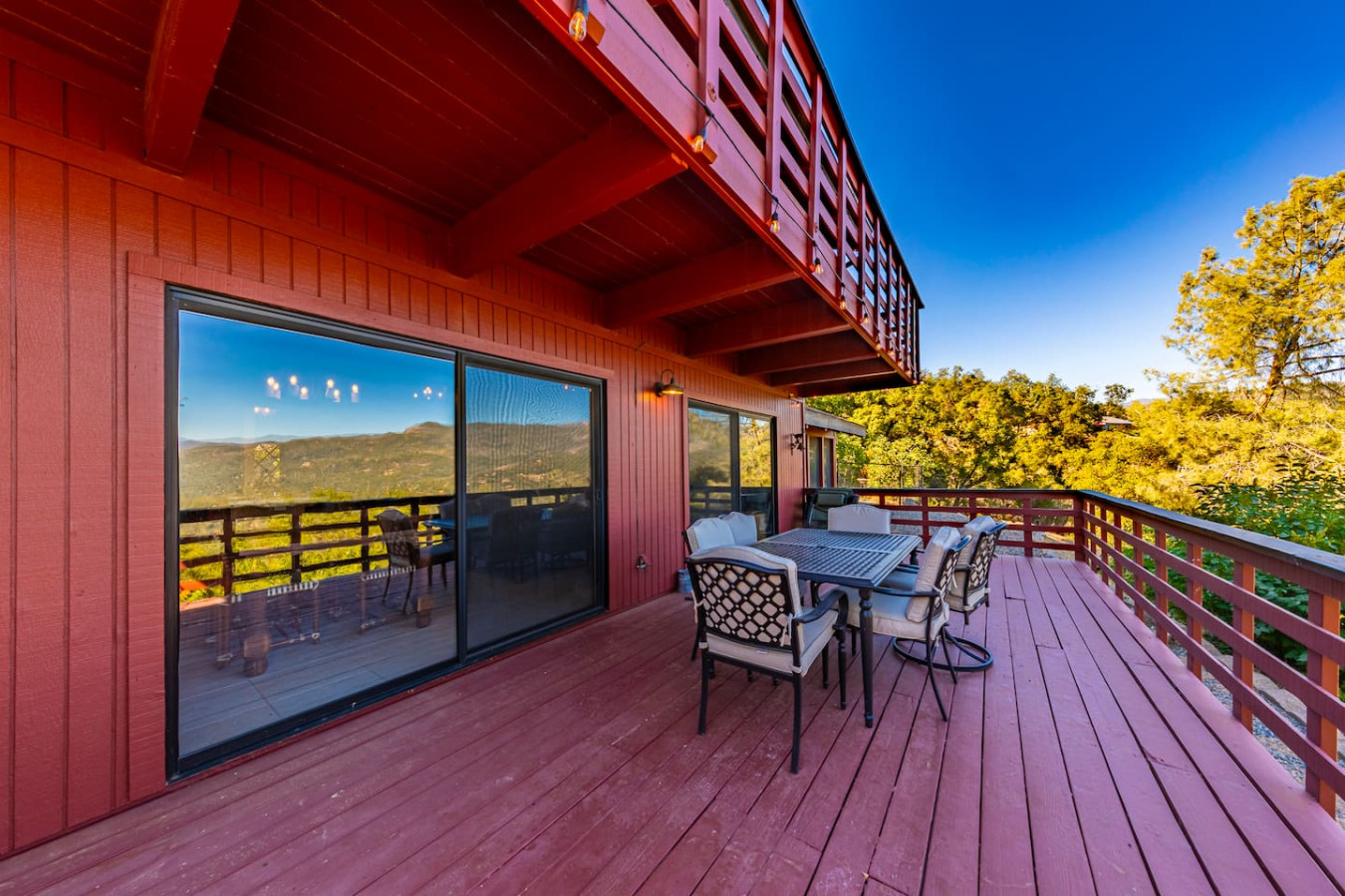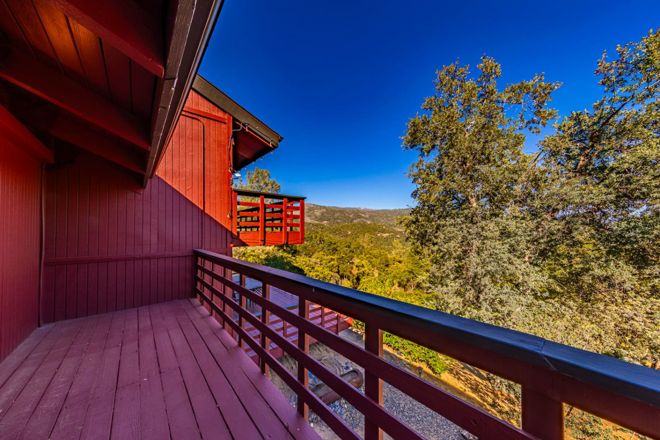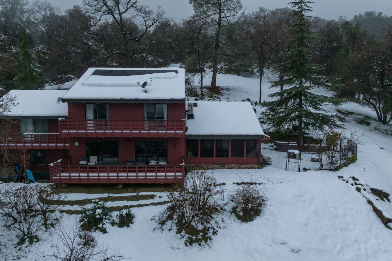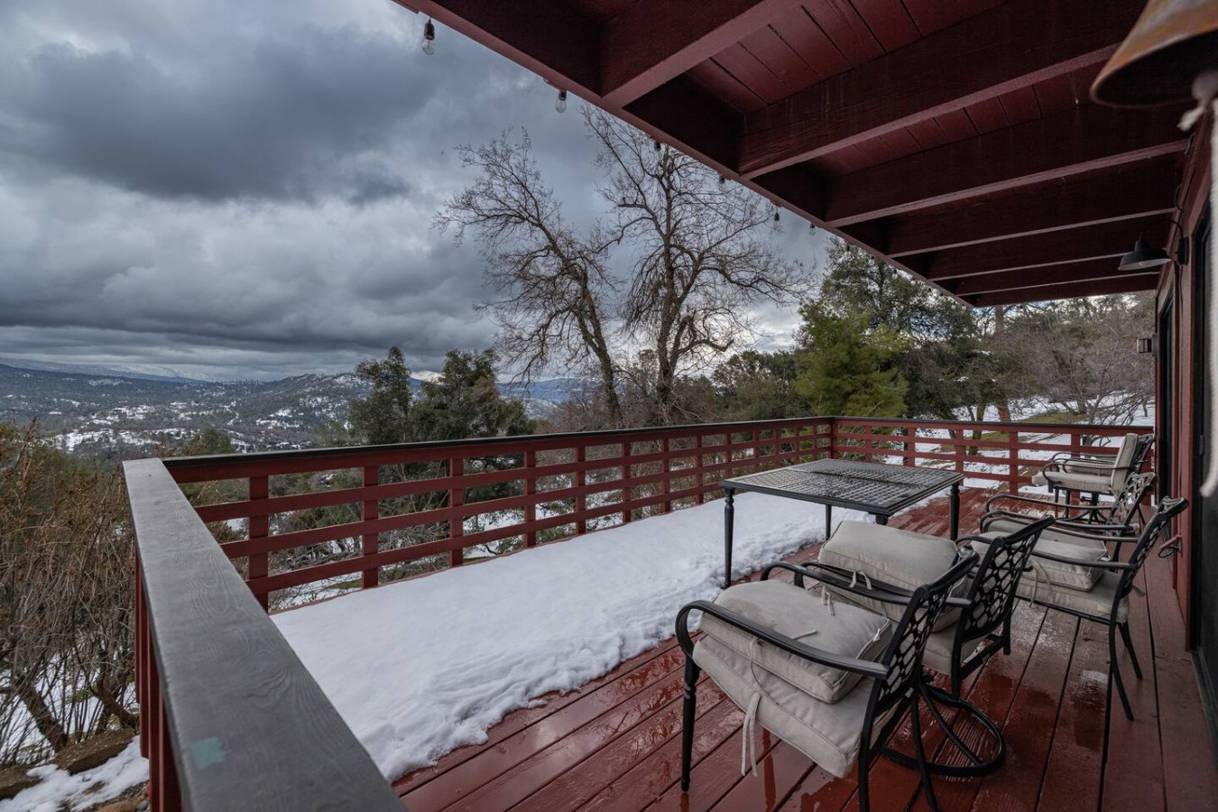 Walk in the clouds in this Hilltop Cabin with panoramic view of the Yosemite Mountain ranges from this triple-decker house that sits atop a 10-acre area covered with meadows, with well paved roads taking you all the way to the cabin on top of the mountain. Only 13 miles from Yosemite South Entrance and 6 miles from Bass Lake. All Amenities included. Comfortably sleeps 16 with 2 King Beds, and 6 full size Bunk beds, spread among 2745 sq ft of living area. Ample seating indoors and outdoors. The house is located to the north of Yosemite Fork close to the Sky Ranch neighborhood.