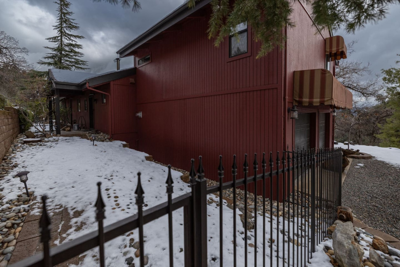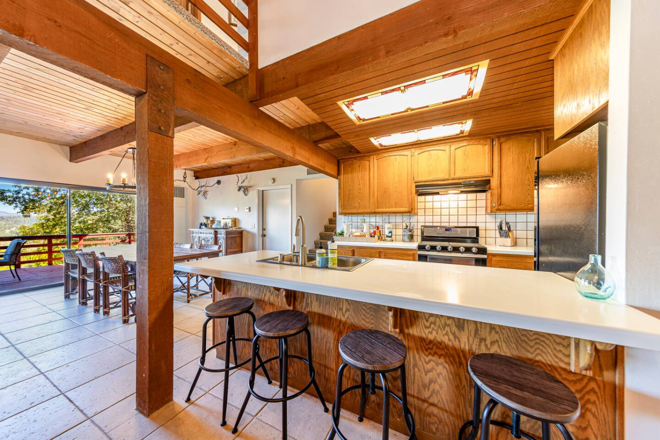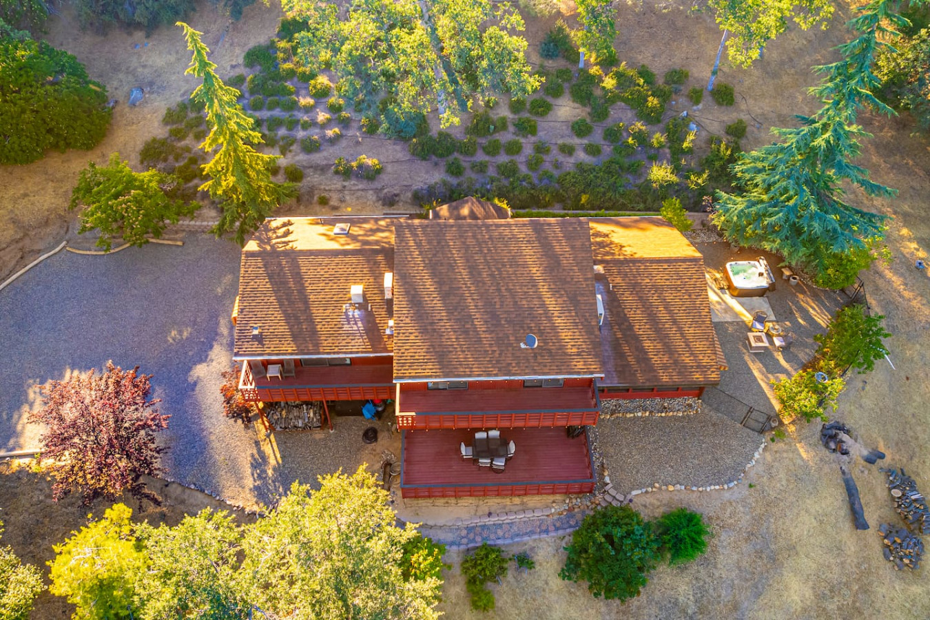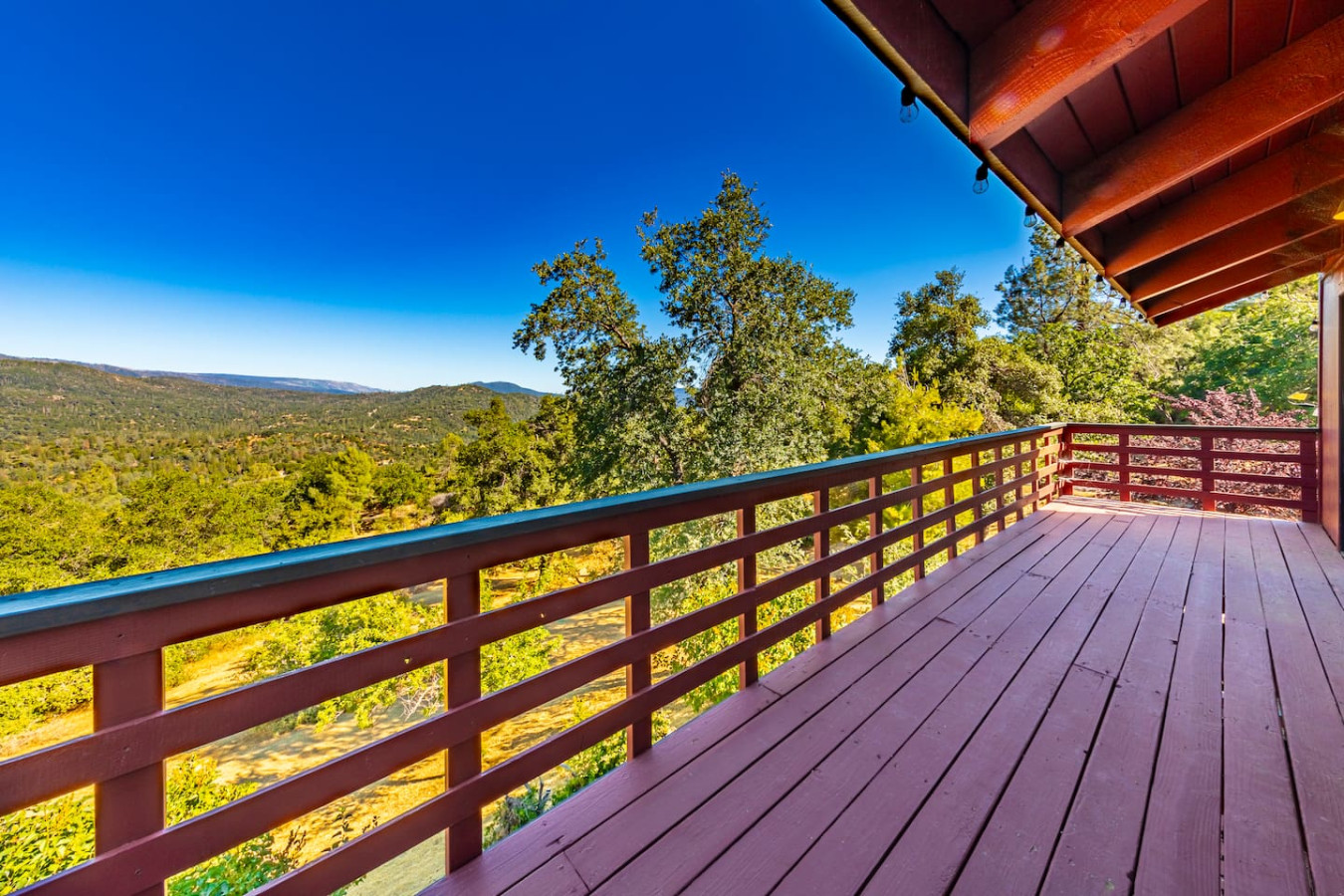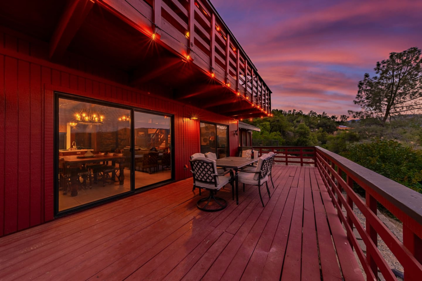 Walk in the clouds in this Hilltop Cabin with panoramic view of the Yosemite Mountain ranges from this triple-decker house that sits atop a 10-acre area covered with meadows, with well paved roads taking you all the way to the cabin on top of the mountain. Only 13 miles from Yosemite South Entrance and 6 miles from Bass Lake. All Amenities included. Comfortably sleeps 16 with 2 King Beds, and 6 full size Bunk beds, spread among 2745 sq ft of living area. Ample seating indoors and outdoors. The house is located to the north of Yosemite Fork close to the Sky Ranch neighborhood.