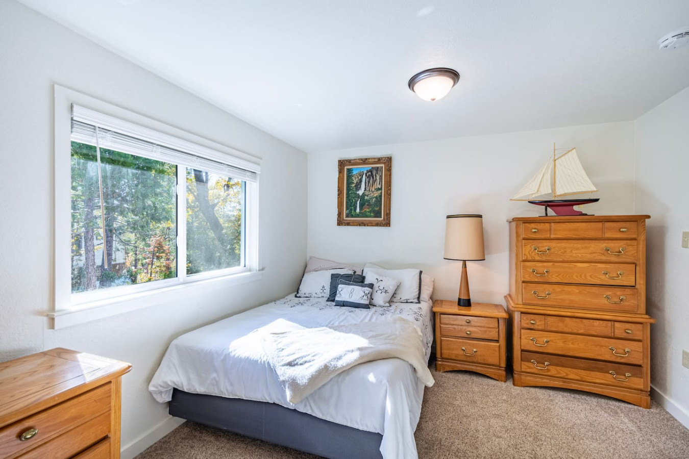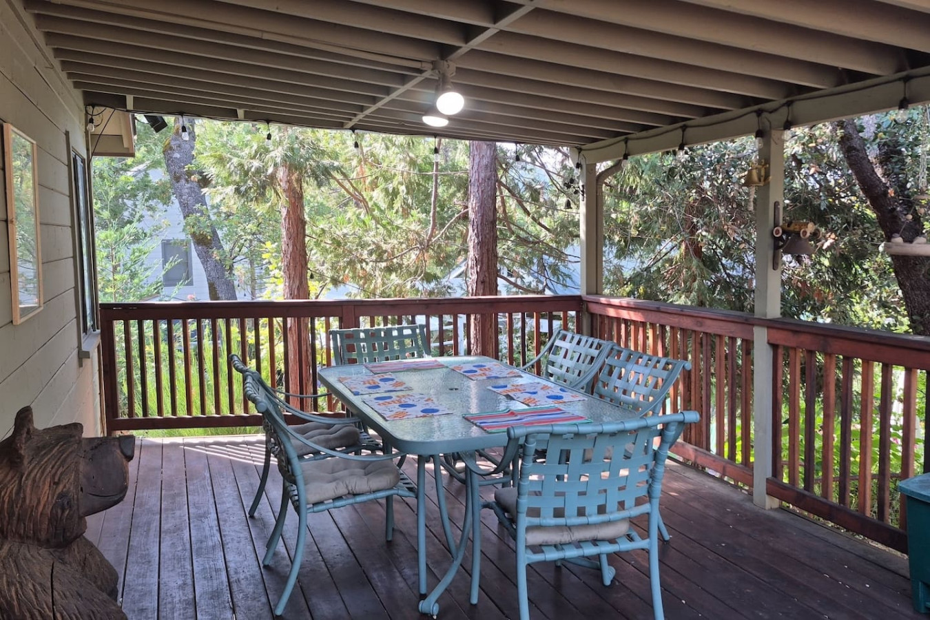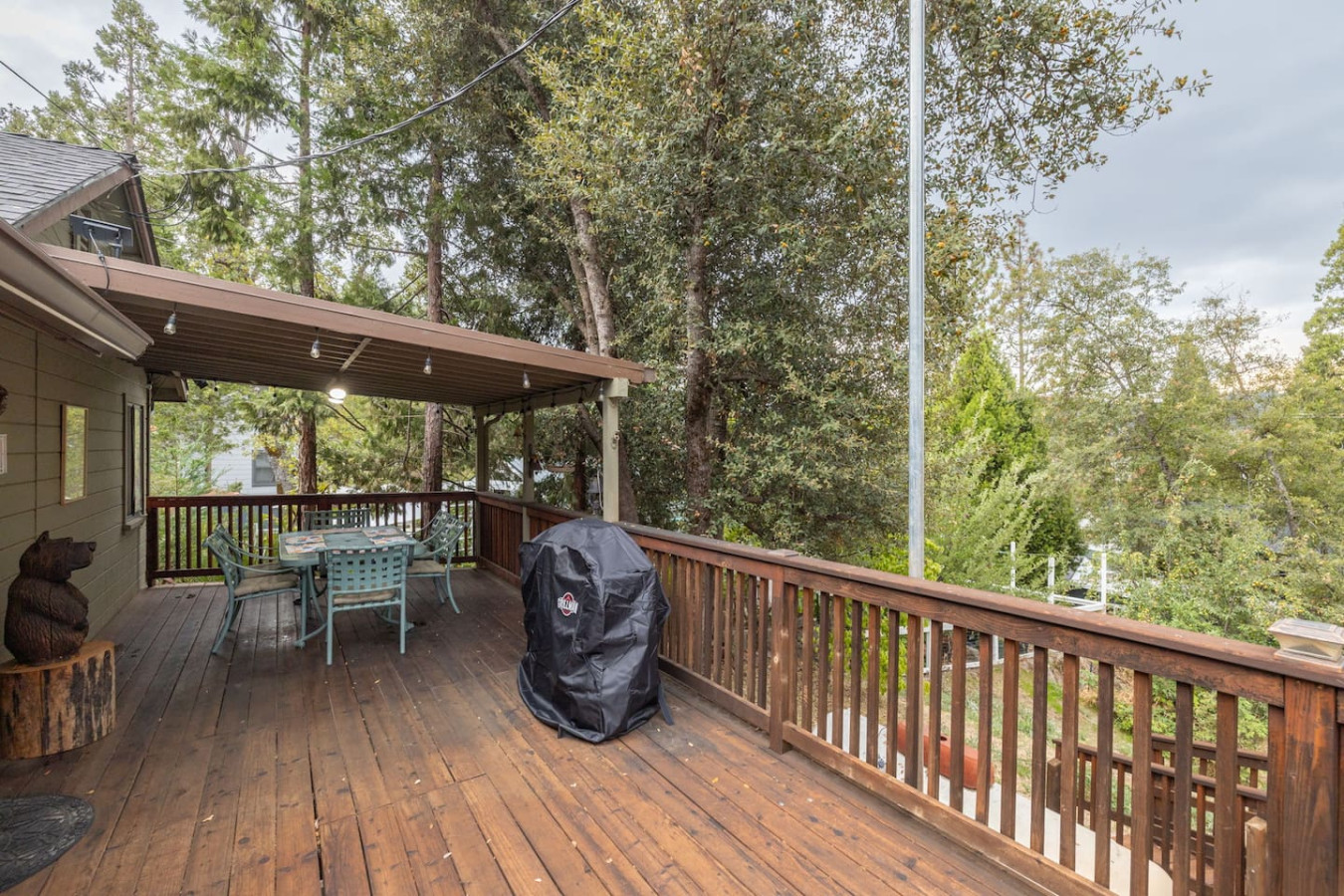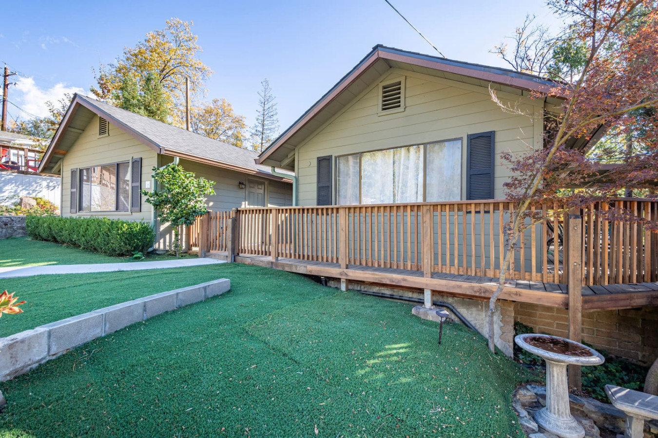 Featuring a garden, and a terrace with lake views Bass Lake Clouds Rest with Boat Slip provides a cozy cabin exp by the pristine Bass Lake, only 18 miles from Yosemite. 3 bedrooms and 3 full bathrooms accommodate comfortably 8 people, and offers a big flat-screen Roku TV, a well-equipped kitchen with a dishwasher, an oven, a microwave, a refrigerator and seating for 8 people. 3 bedrooms feature comfy beds with extra linens and towels. Washer and dryer on-prem. No pets and pet hairs ever.