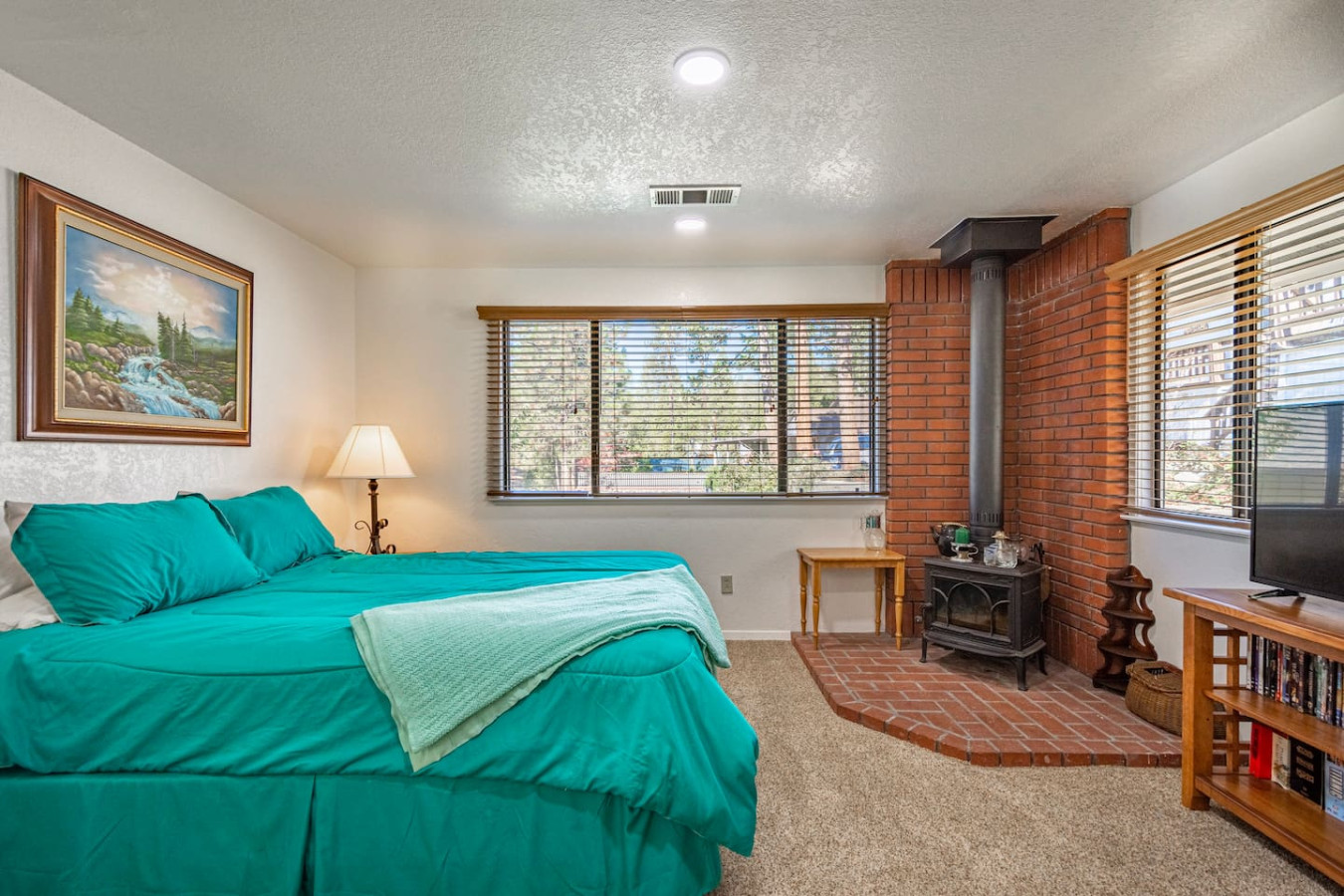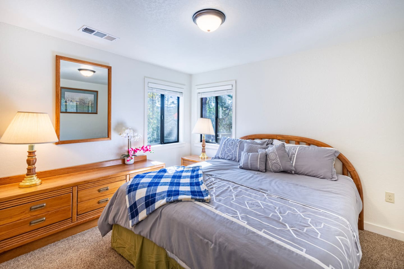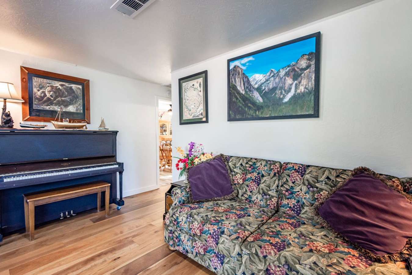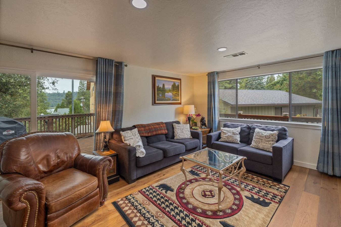 Featuring a garden, and a terrace with lake views Bass Lake Clouds Rest with Boat Slip provides a cozy cabin exp by the pristine Bass Lake, only 18 miles from Yosemite. 3 bedrooms and 3 full bathrooms accommodate comfortably 8 people, and offers a big flat-screen Roku TV, a well-equipped kitchen with a dishwasher, an oven, a microwave, a refrigerator and seating for 8 people. 3 bedrooms feature comfy beds with extra linens and towels. Washer and dryer on-prem. No pets and pet hairs ever.