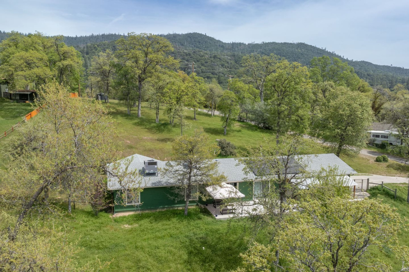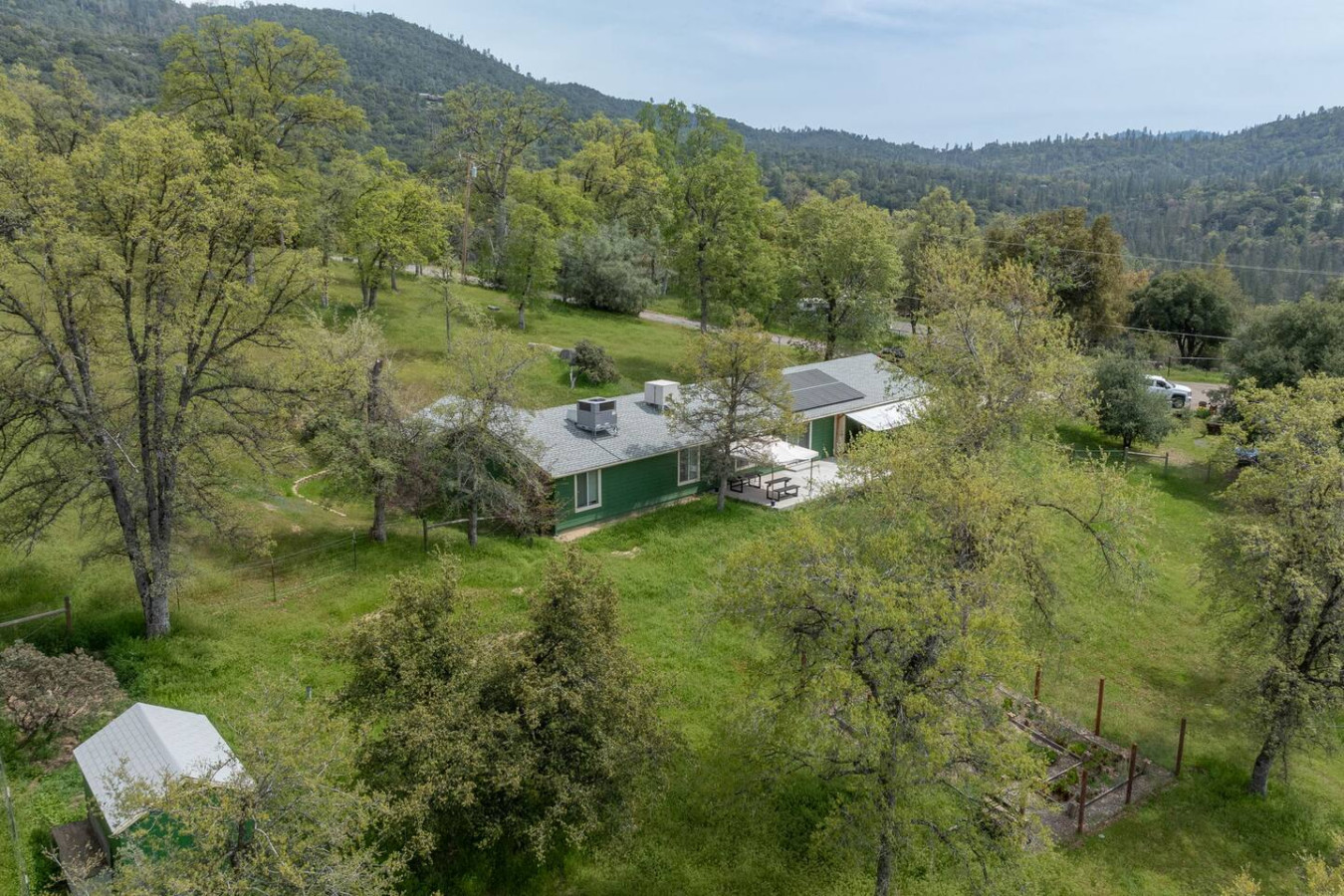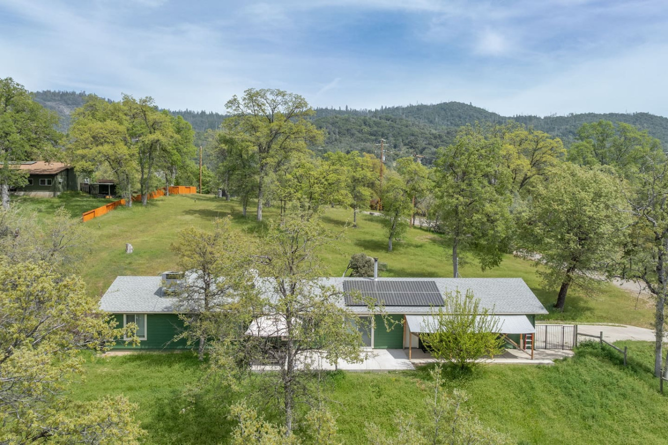 Relax with the whole family at this energy-efficient and eco-Friendly cabin on 1.38 Acres with modern amenities nestled at a favorable elevation that ensures cooler summer with mountains on either side. Built in 2014, this mountain cabin combines comfort, and sustainability, with ample outdoor space, a fully fenced yard, and a separate gate for your little ones. A private well provides 2500 gallon uninterrupted water supply, with full pressure. Natural, eco-friendly, stylish, yet pet-friendly.
