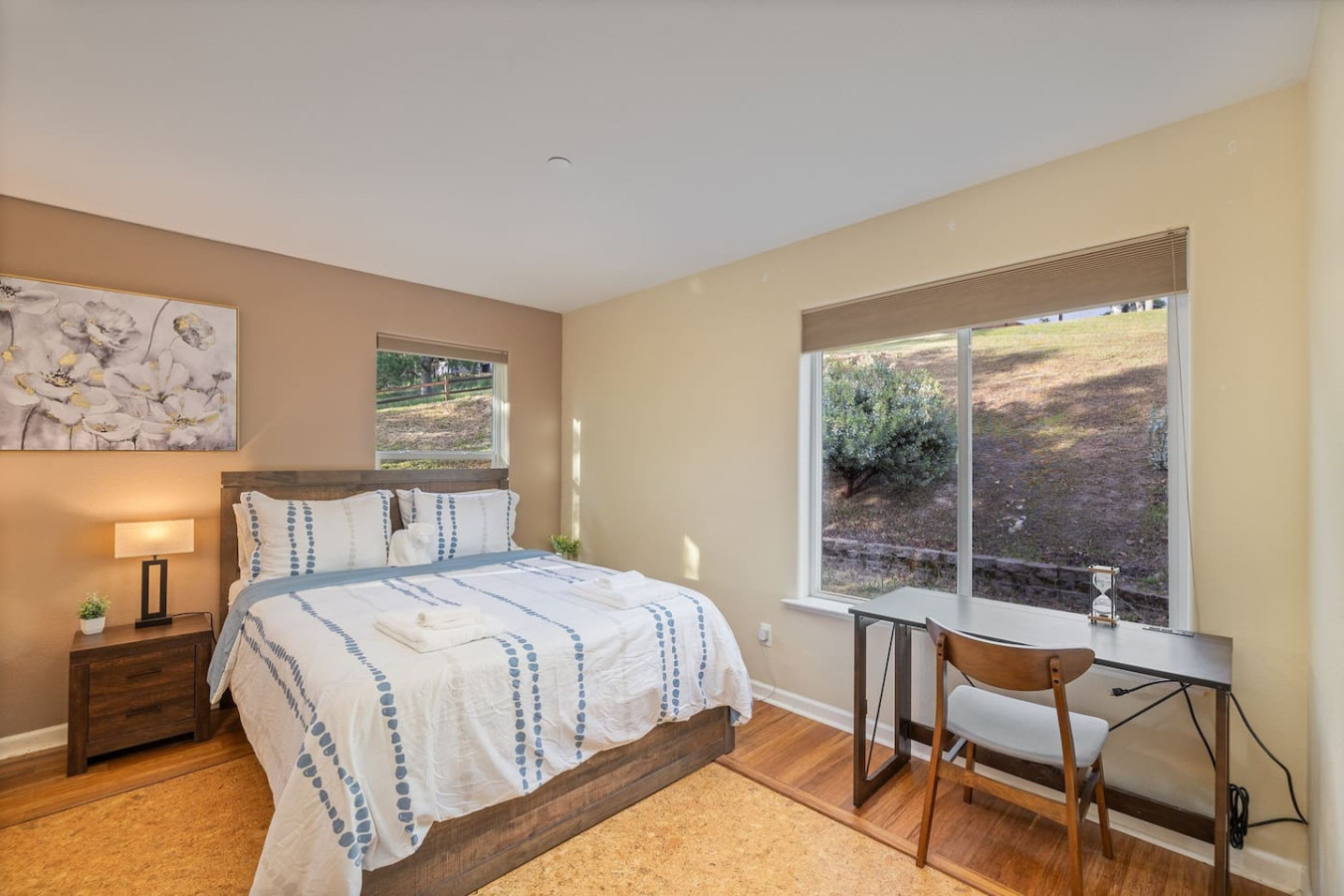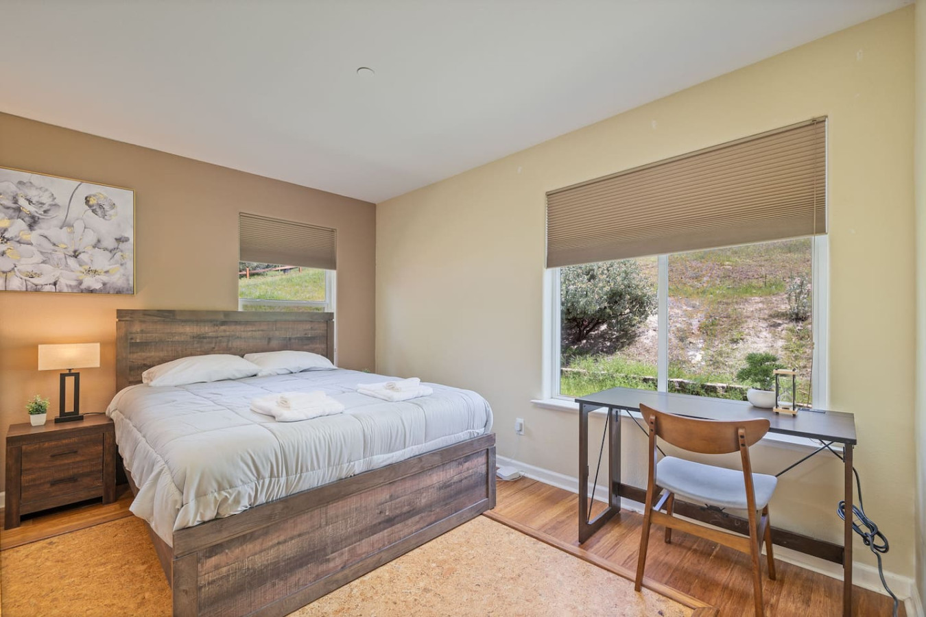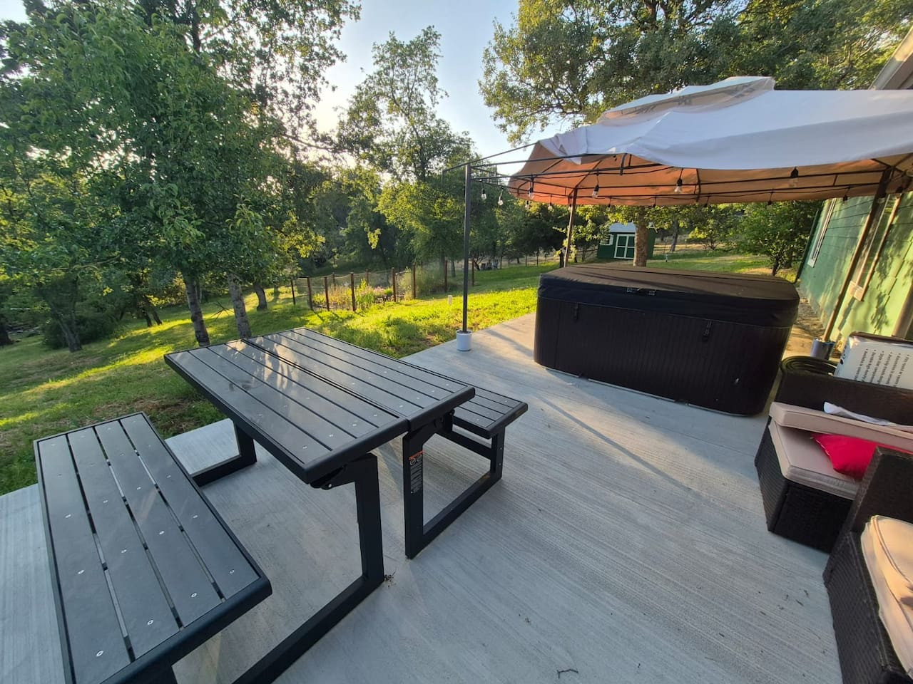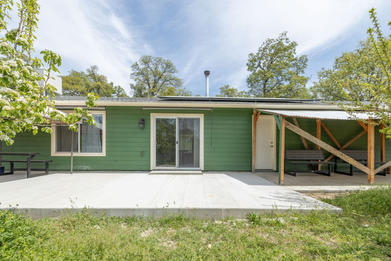 Relax with the whole family at this energy-efficient and eco-Friendly cabin on 1.38 Acres with modern amenities nestled at a favorable elevation that ensures cooler summer with mountains on either side. Built in 2014, this mountain cabin combines comfort, and sustainability, with ample outdoor space, a fully fenced yard, and a separate gate for your little ones. A private well provides 2500 gallon uninterrupted water supply, with full pressure. Natural, eco-friendly, stylish, yet pet-friendly.