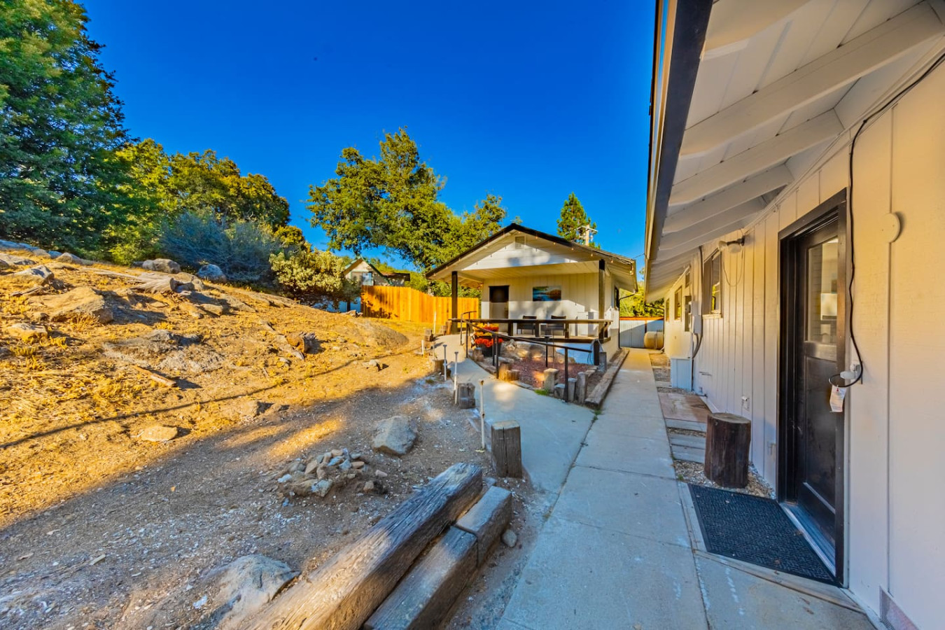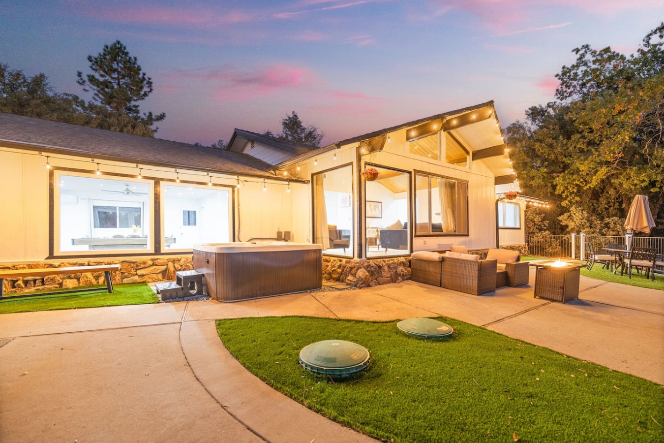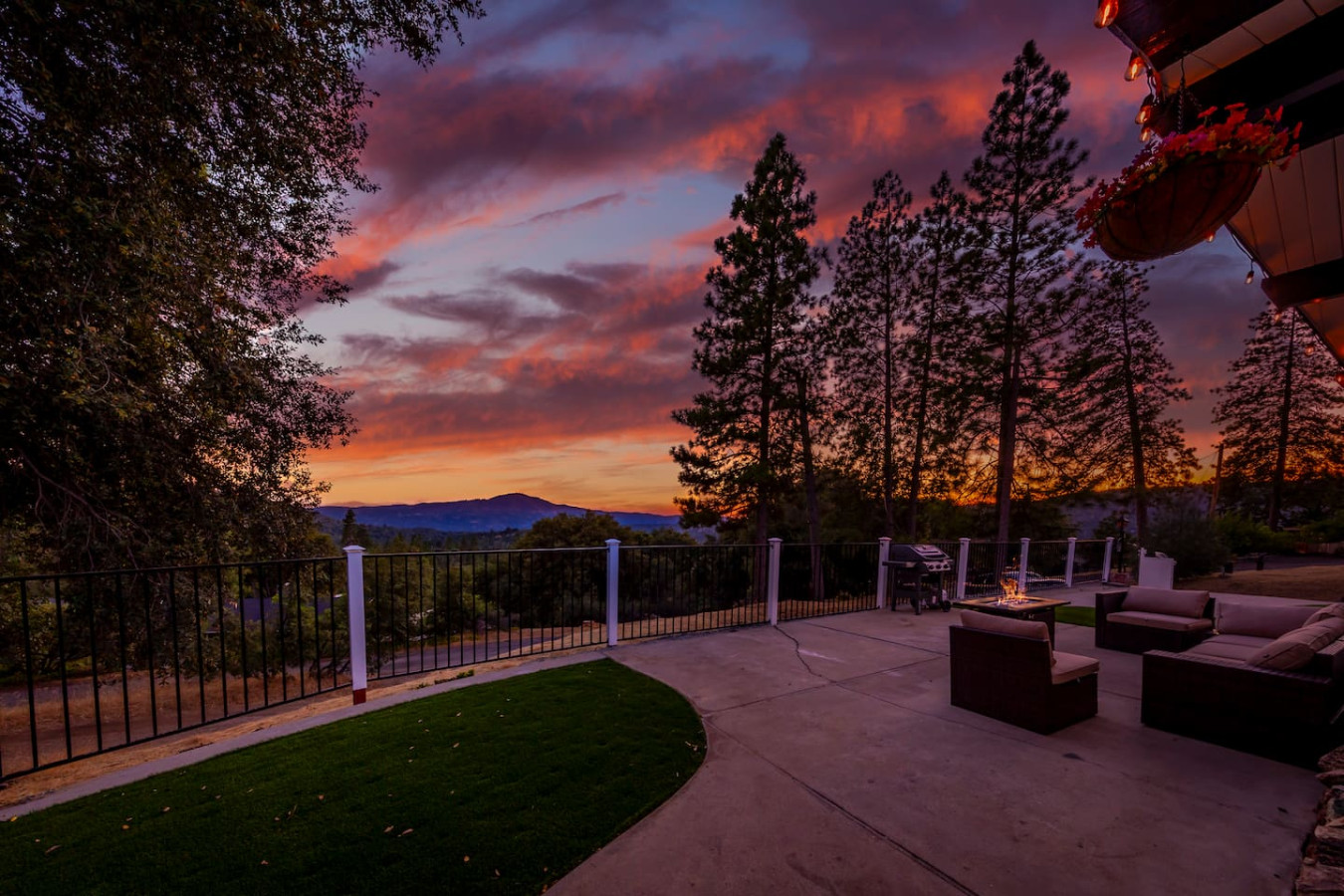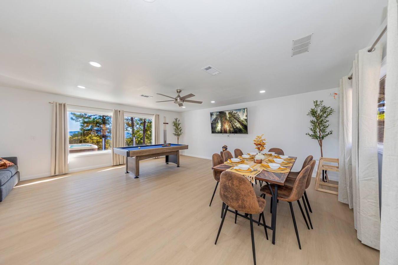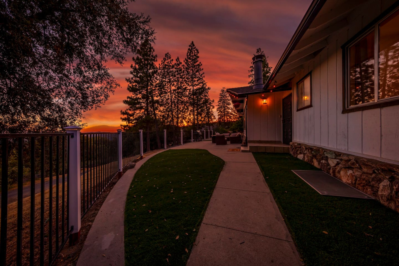 Enjoy high sierras and fresh smell of pines above the snow line in this picturesque and spacious cabin, only 12 miles from the Yosemite South Entrance. Relish views of mountains and night sky right from your living room. Relax with the whole family at this peaceful hilltop terrace with lots of sitting areas, a brand new Hot tub, Fire-pit, BBQ, and a separate in-law unit with dedicated workspace, and a beautiful back porch with rock outcropping. Features a new game room with pool table and views. Newly listed in High Sierra Sky Ranch neighborhood at 3300 ft from sea level, house sits on a hilltop only 2 minutes off Highway 41. Easy access in and out of with paved roads all the way to the driveway. 8 min drive to Bass Lake, and only 12 miles on Highway 41 from Yosemite South Gate. The mountain home features a panoramic view of mountains on either side of the house. Comes with recently renovated rooms, a brand-new Kitchen, and completely renovated Bathrooms. Each room has been carefully decorated keeping your long-term vacation stays in mind, stocked, and sanitized. The house is only 15 min away from Yosemite South Gate. No reservation is required if you leave the house on or before 4:40 AM in the morning, or after 3:45 PM in the afternoon.
