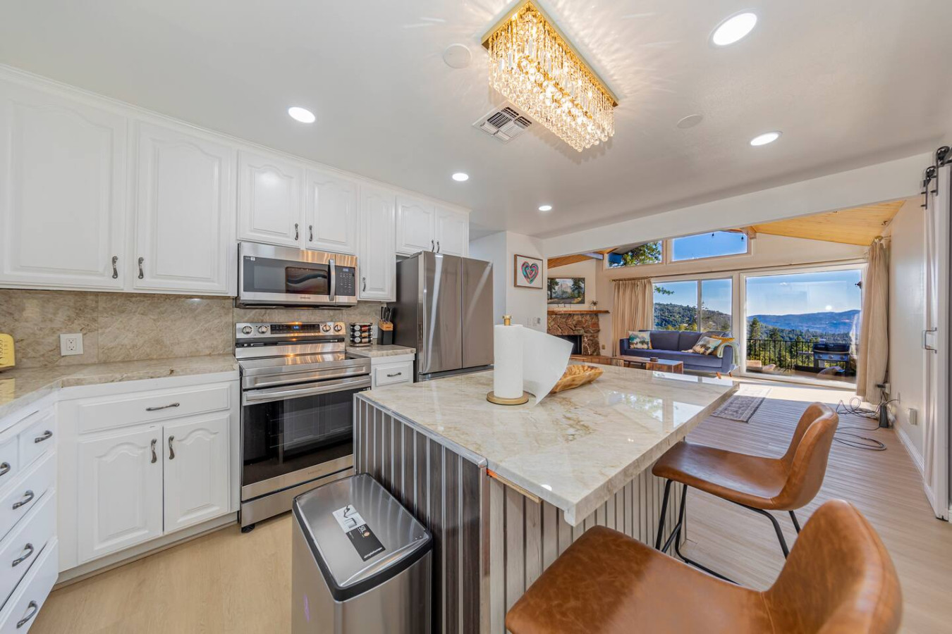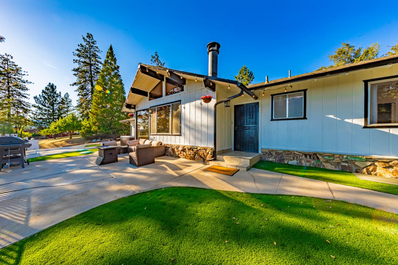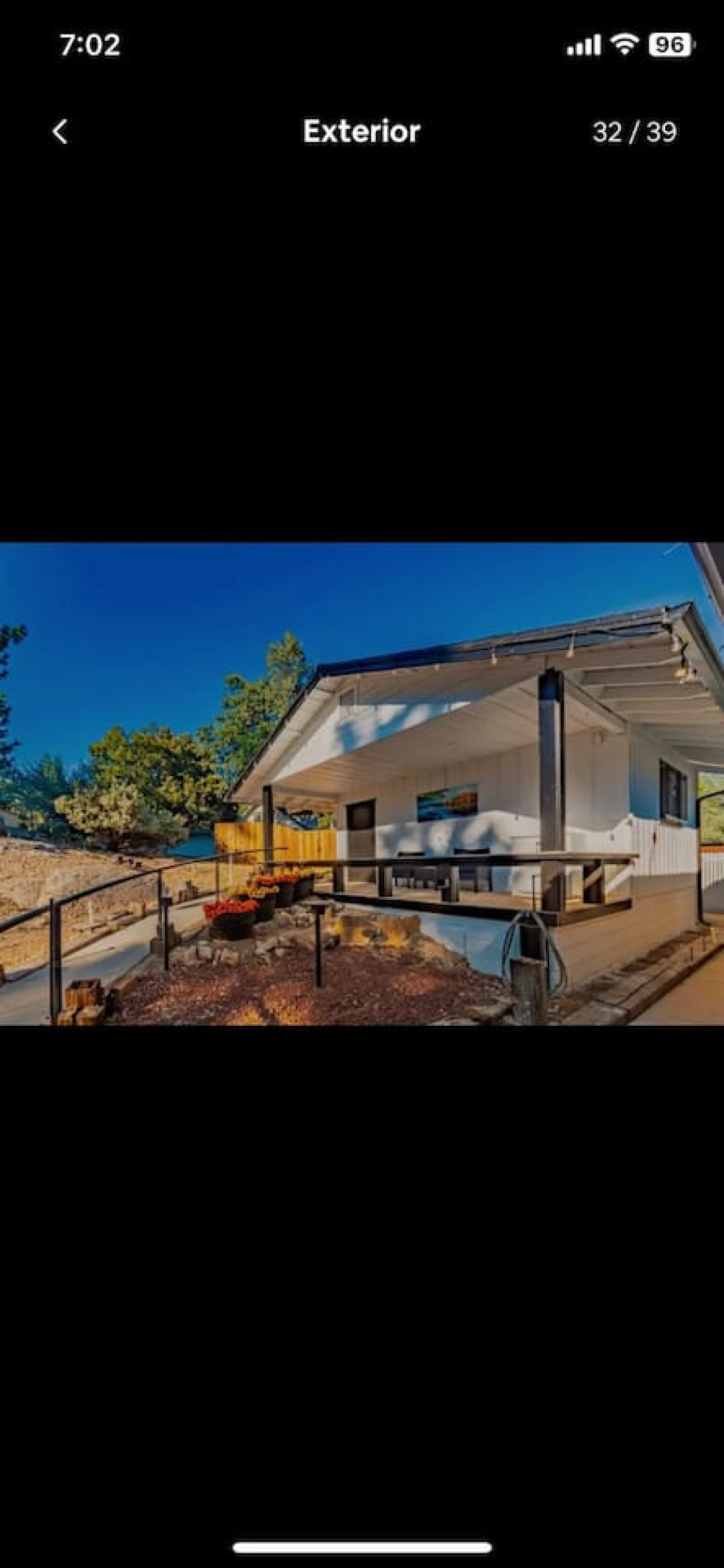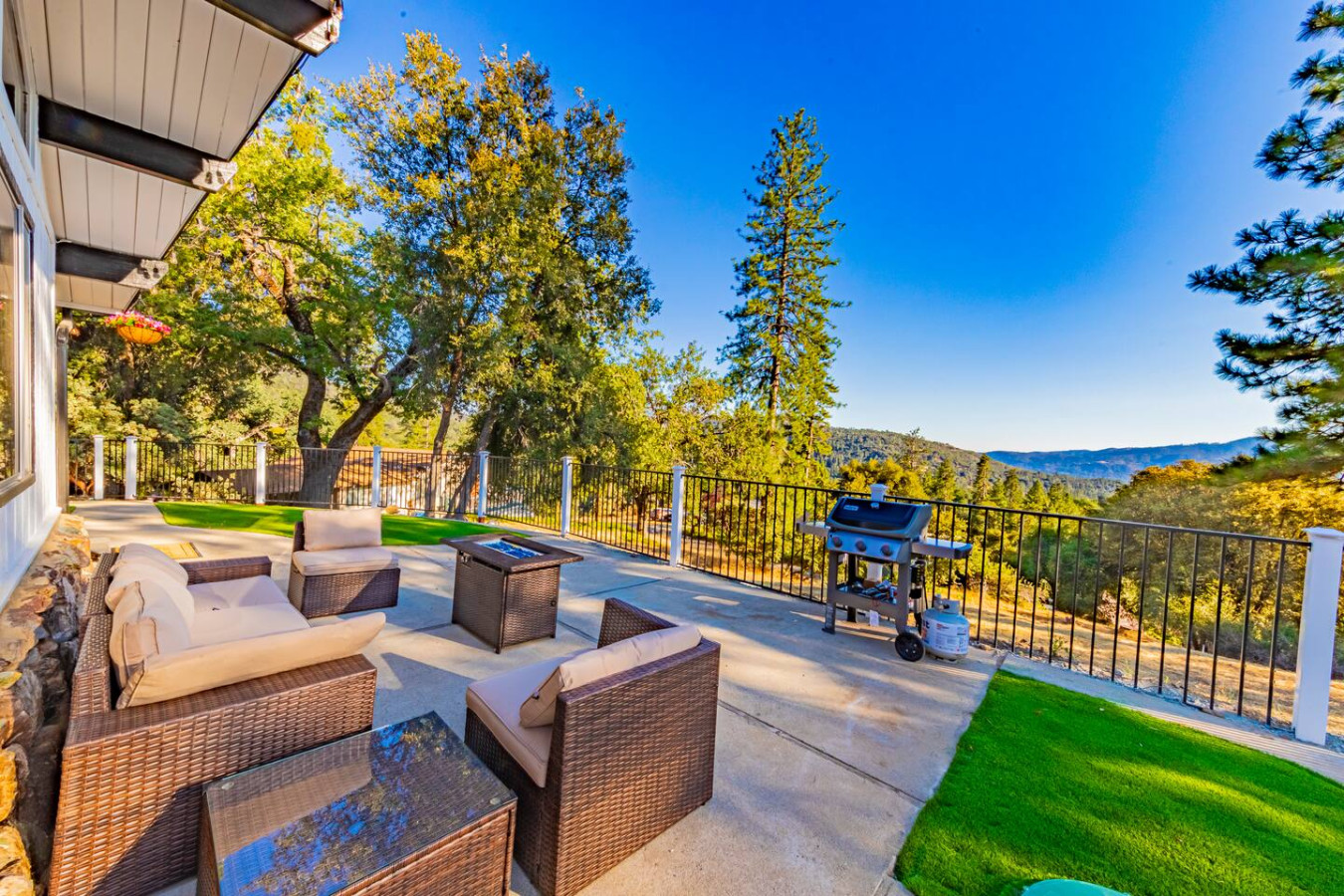 Enjoy high sierras and fresh smell of pines above the snow line in this picturesque and spacious cabin, only 12 miles from the Yosemite South Entrance. Relish views of mountains and night sky right from your living room. Relax with the whole family at this peaceful hilltop terrace with lots of sitting areas, a brand new Hot tub, Fire-pit, BBQ, and a separate in-law unit with dedicated workspace, and a beautiful back porch with rock outcropping. Features a new game room with pool table and views. Newly listed in High Sierra Sky Ranch neighborhood at 3300 ft from sea level, house sits on a hilltop only 2 minutes off Highway 41. Easy access in and out of with paved roads all the way to the driveway. 8 min drive to Bass Lake, and only 12 miles on Highway 41 from Yosemite South Gate. The mountain home features a panoramic view of mountains on either side of the house. Comes with recently renovated rooms, a brand-new Kitchen, and completely renovated Bathrooms. Each room has been carefully decorated keeping your long-term vacation stays in mind, stocked, and sanitized. The house is only 15 min away from Yosemite South Gate. No reservation is required if you leave the house on or before 4:40 AM in the morning, or after 3:45 PM in the afternoon.