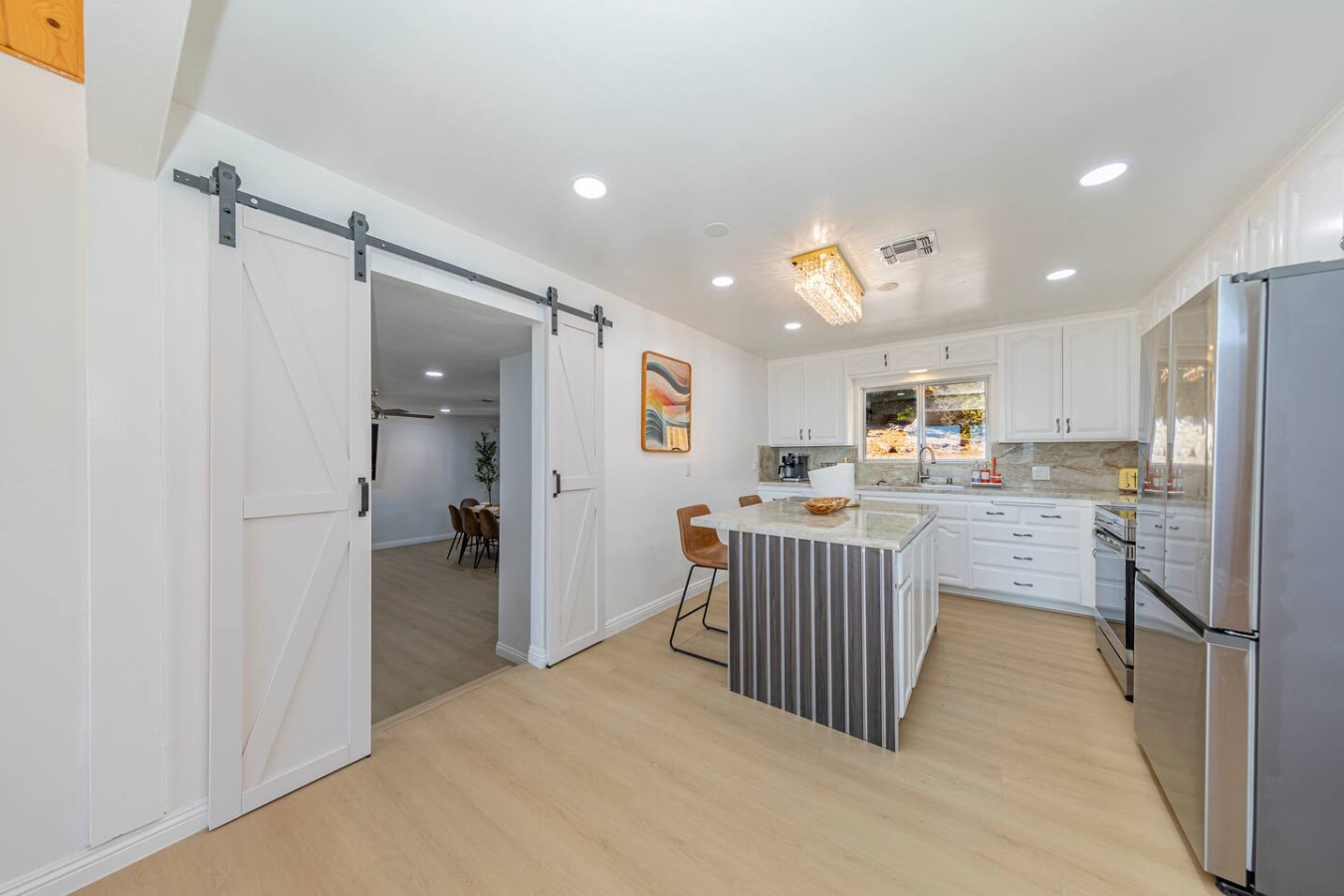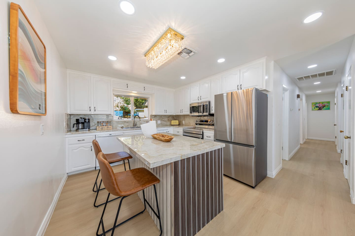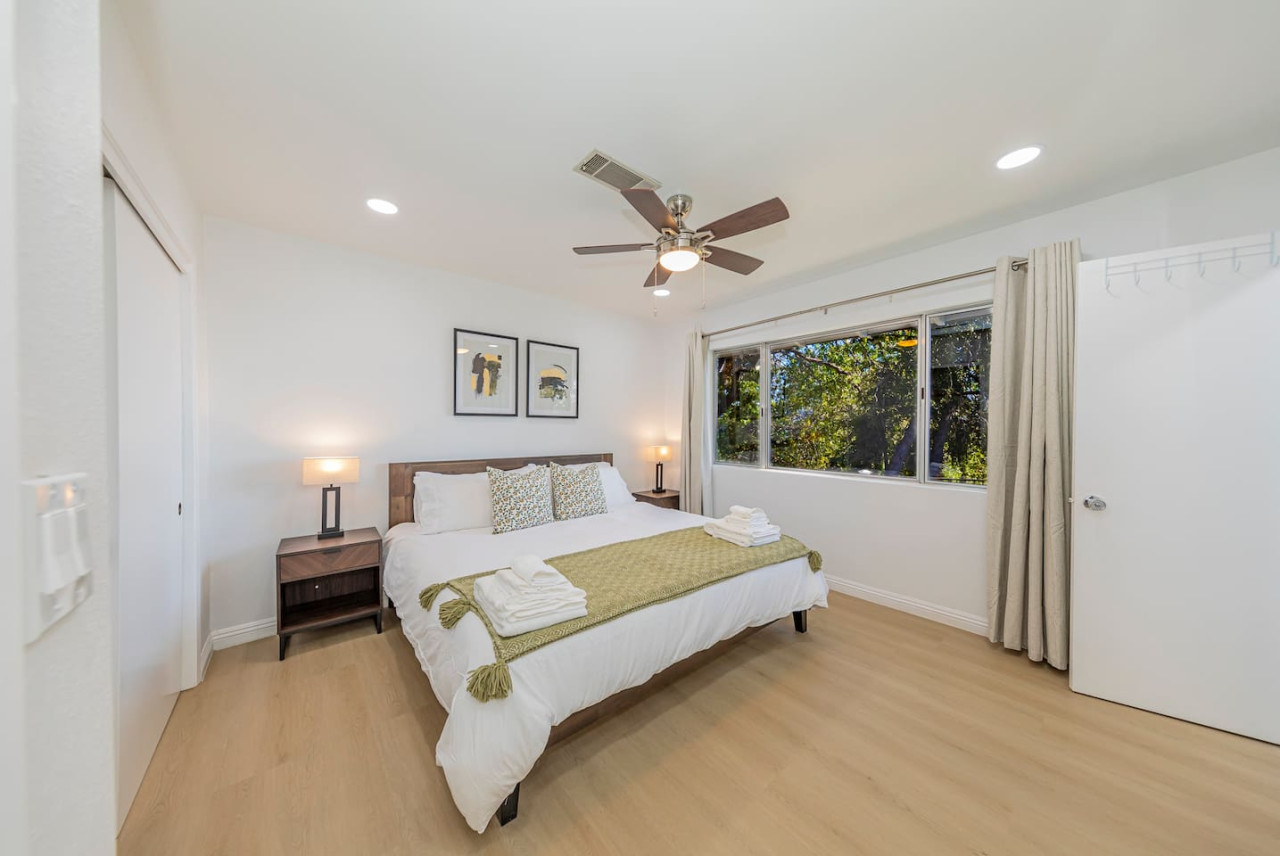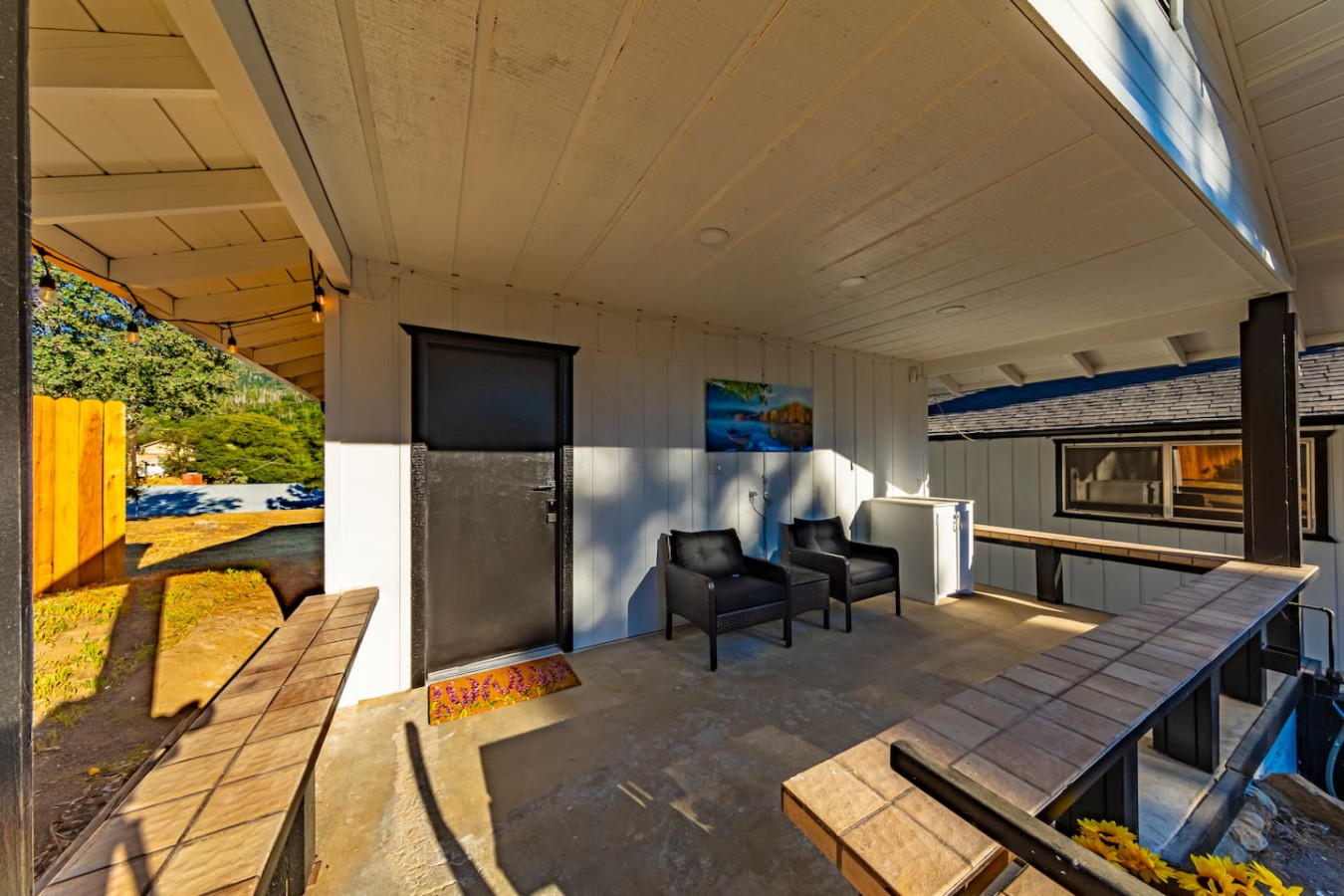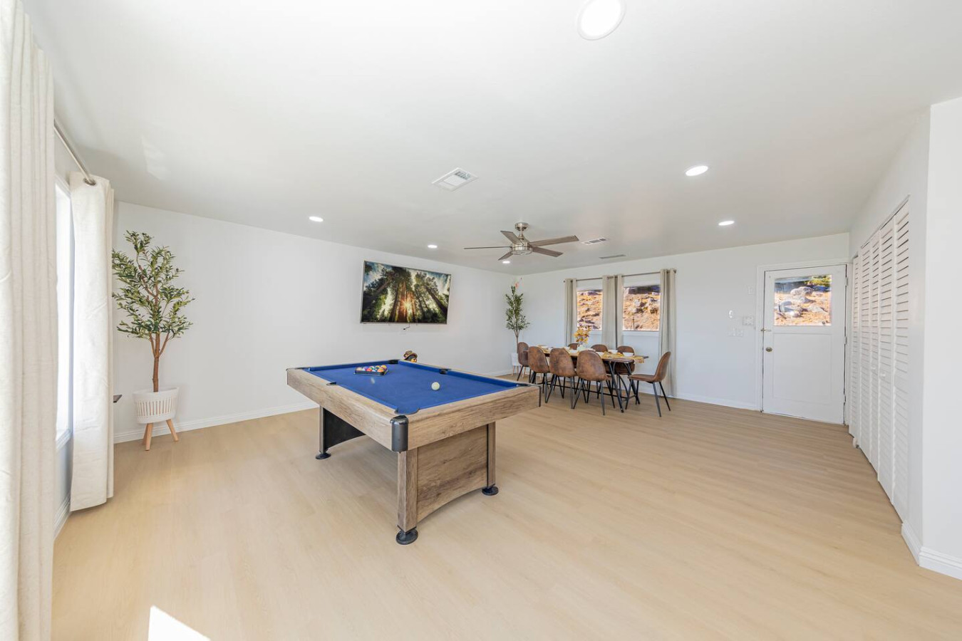 Enjoy high sierras and fresh smell of pines above the snow line in this picturesque and spacious cabin, only 12 miles from the Yosemite South Entrance. Relish views of mountains and night sky right from your living room. Relax with the whole family at this peaceful hilltop terrace with lots of sitting areas, a brand new Hot tub, Fire-pit, BBQ, and a separate in-law unit with dedicated workspace, and a beautiful back porch with rock outcropping. Features a new game room with pool table and views. Newly listed in High Sierra Sky Ranch neighborhood at 3300 ft from sea level, house sits on a hilltop only 2 minutes off Highway 41. Easy access in and out of with paved roads all the way to the driveway. 8 min drive to Bass Lake, and only 12 miles on Highway 41 from Yosemite South Gate. The mountain home features a panoramic view of mountains on either side of the house. Comes with recently renovated rooms, a brand-new Kitchen, and completely renovated Bathrooms. Each room has been carefully decorated keeping your long-term vacation stays in mind, stocked, and sanitized. The house is only 15 min away from Yosemite South Gate. No reservation is required if you leave the house on or before 4:40 AM in the morning, or after 3:45 PM in the afternoon.