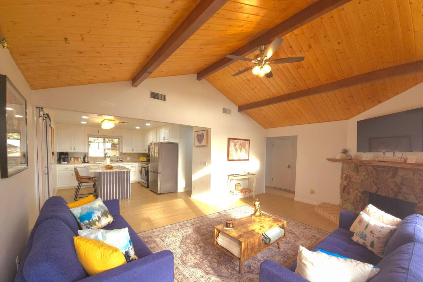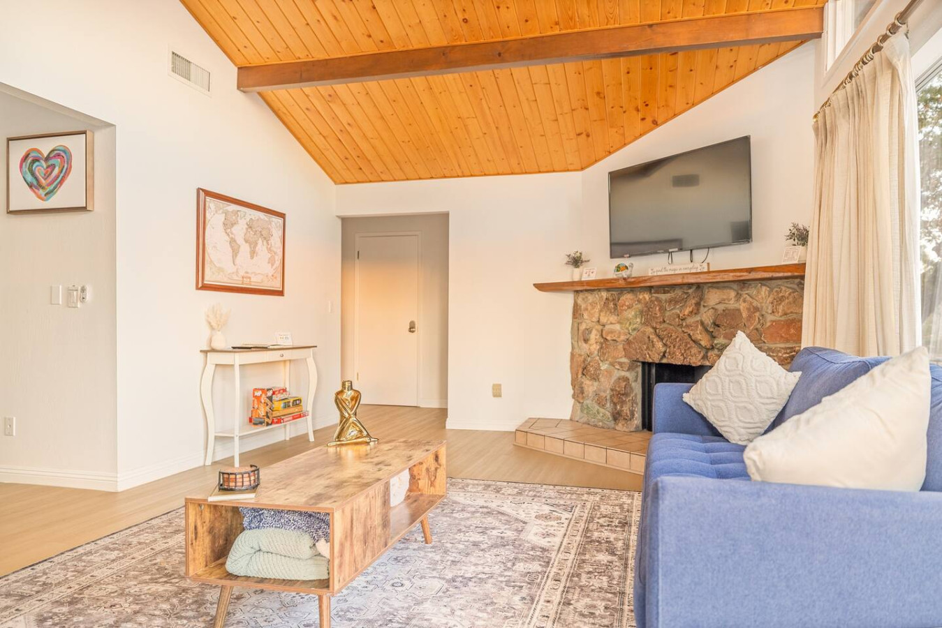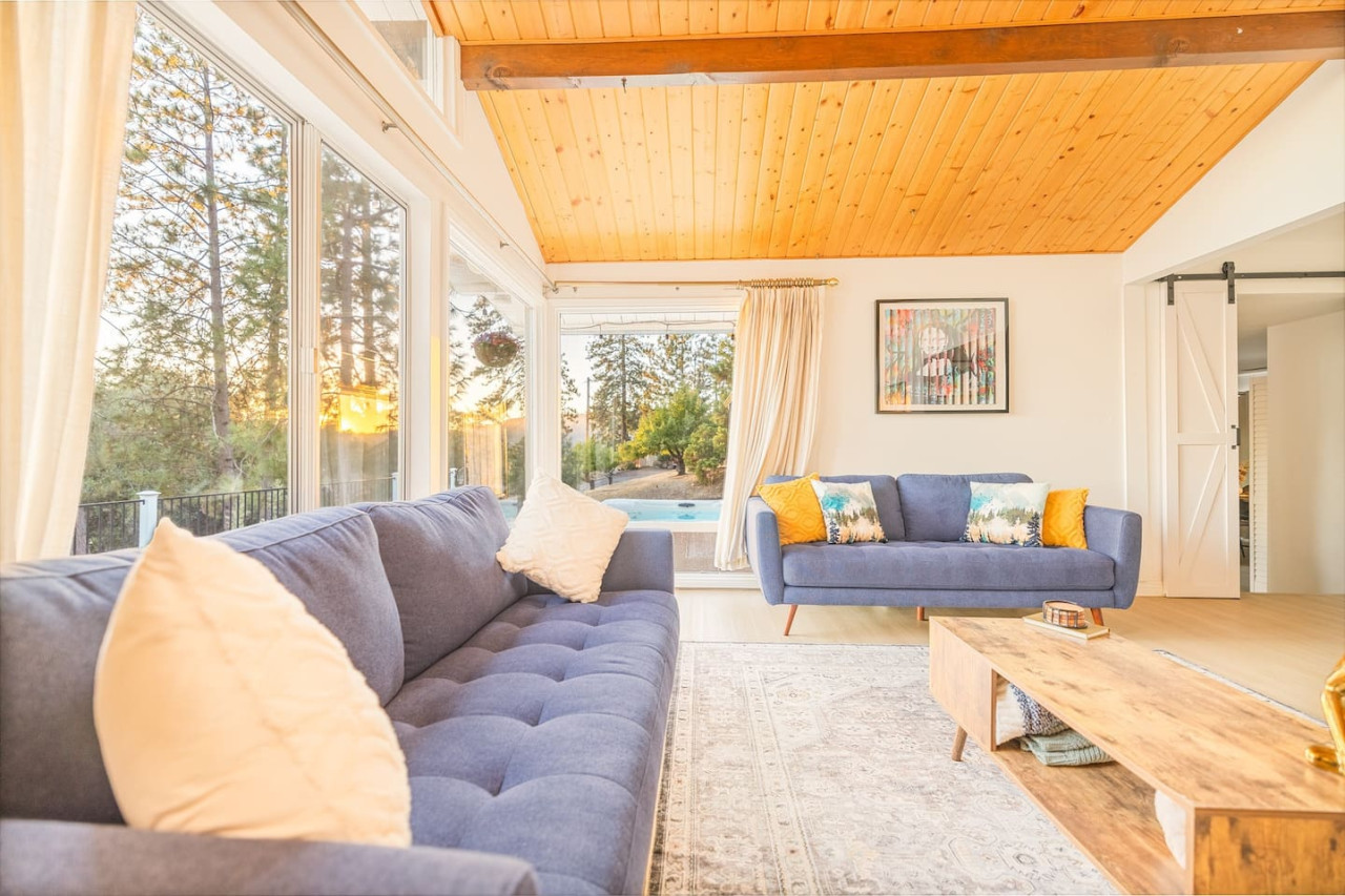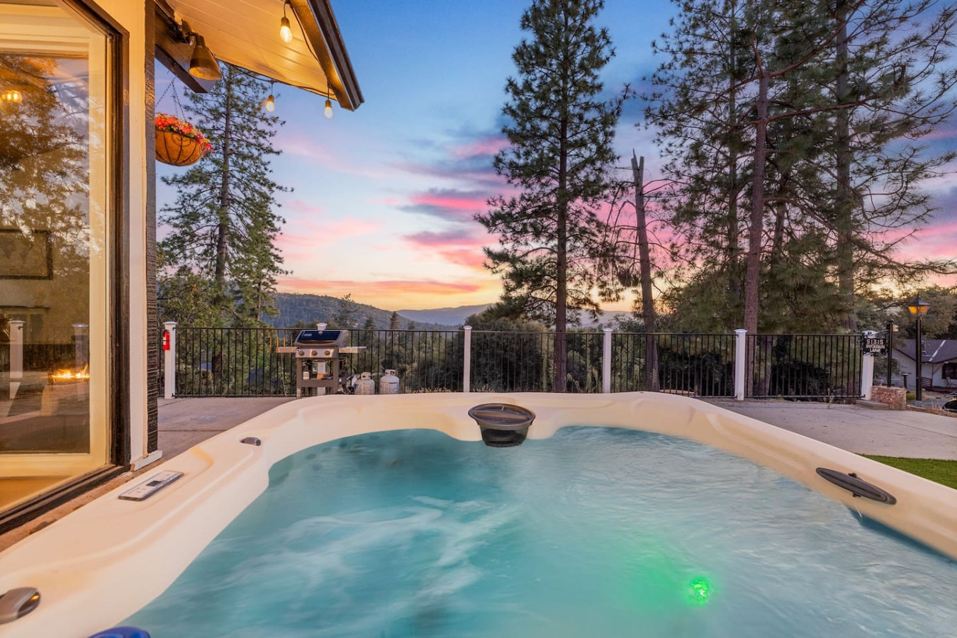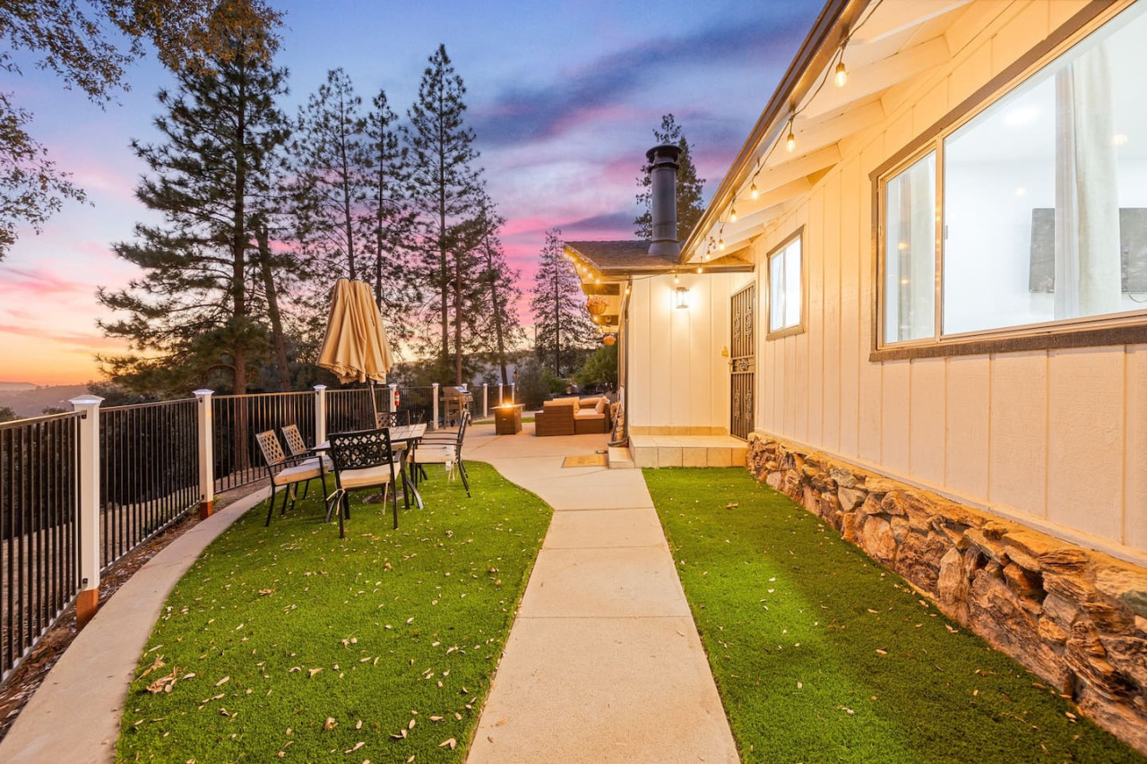 Welcome to the picturesque hillside home located in the majestic high Sierra Sky Ranch neighbourhood at 3300 ft from sea level. Relish views of mountains from the living room and beautiful sunsets, starry night from the house terrace. Enjoy with friends and family at the outdoor seating areas, a brand new Hot tub, Fire-pit, BBQ, a separate in-law bedroomunit with dedicated workspace, and a beautiful back porch with rock outcropping. Features a new game room with a pool table and views. Wholesome space for the entire family to spread out and enjoy a vacation in Mountains. HOME DETAILS Living Room Game Room + Dining Room 4 Bedrooms Kitchen 2 Bathrooms BEDROOMS Bedroom 1: King bed (sleeps 2) Bedroom 2: Queen bed (sleeps 2) Bedroom 3: Queen bed (sleeps 2) Game Room: Pull-out sofa-queen bed (sleeps 2) INDOOR ENTERTAINMENT Living room with Beautiful Views Pool table Board Games 4 smart TVs OUTDOOR ENTERTAINMENT Breathtaking Mountain Views Hottub BBQ Grill Lounge set with Firepit Dining set with shade KITCHEN All cooking essentials: pots, pans , dishes, silverware, bowls, plates, cups, glasses All appliances: refrigerator, freezer, cooking range, oven, microwave, dishwasher Additional appliances: keurig coffee machine, toaster, kettle, blender, rice cooker AMENITIES Fresh Towels Hand soap, lotion Shampoo, conditioner, body wash. Hair dryer Dish/Laundry Detergent Iron, Iron Board TEMPERATURE Central AC and heating Ceiling fans Guests have access to the whole house, except the (labelled) Owner's closet, Houskeeping Closet, and the Detached In-law bedroom. The In-law unit can be requested separately via guest portal, for additional sleeping of upto 4 people. It is equipped with its own AC/Heating, a dedicated workspace, and Smart TV, with room darkening shades. House is managed and monitored round the clock by Sugar Pines Property Management.