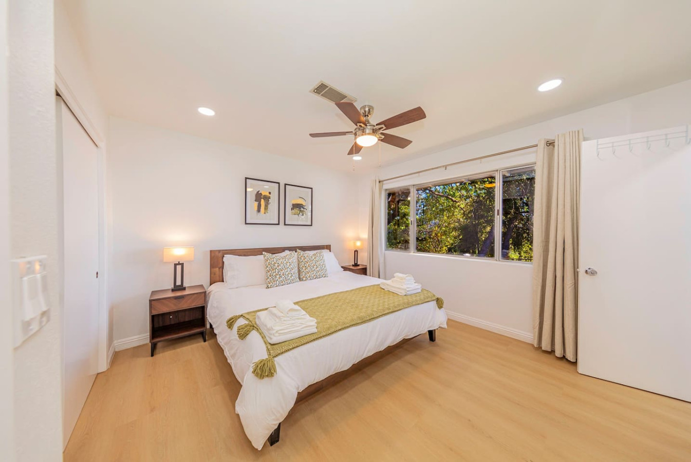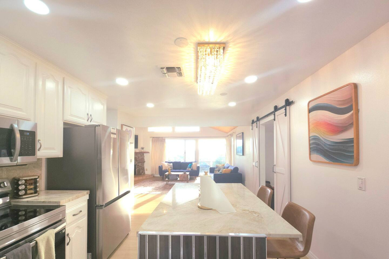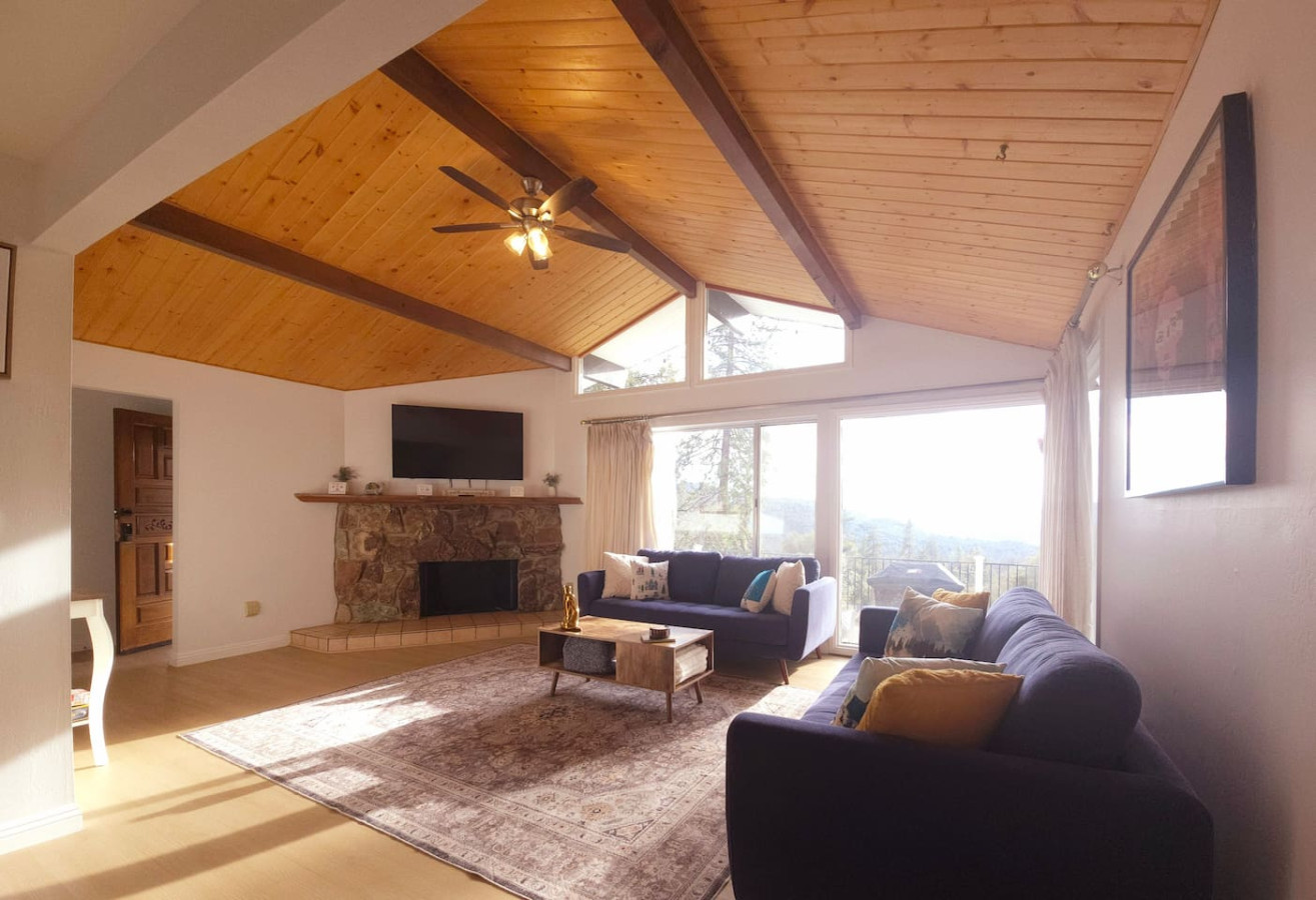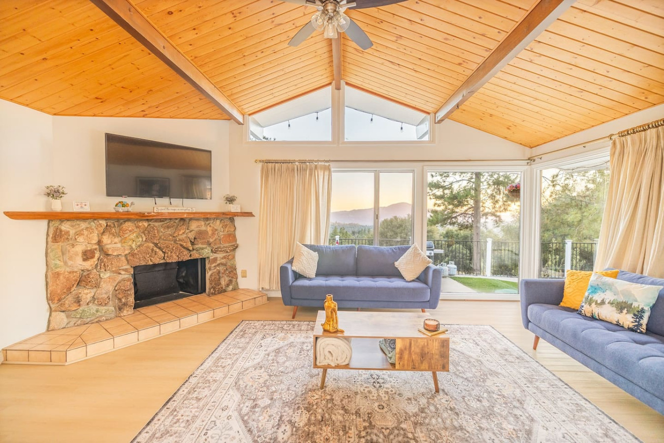 Welcome to the picturesque hillside home located in the majestic high Sierra Sky Ranch neighbourhood at 3300 ft from sea level. Relish views of mountains from the living room and beautiful sunsets, starry night from the house terrace. Enjoy with friends and family at the outdoor seating areas, a brand new Hot tub, Fire-pit, BBQ, a separate in-law bedroomunit with dedicated workspace, and a beautiful back porch with rock outcropping. Features a new game room with a pool table and views. Wholesome space for the entire family to spread out and enjoy a vacation in Mountains. HOME DETAILS Living Room Game Room + Dining Room 4 Bedrooms Kitchen 2 Bathrooms BEDROOMS Bedroom 1: King bed (sleeps 2) Bedroom 2: Queen bed (sleeps 2) Bedroom 3: Queen bed (sleeps 2) Game Room: Pull-out sofa-queen bed (sleeps 2) INDOOR ENTERTAINMENT Living room with Beautiful Views Pool table Board Games 4 smart TVs OUTDOOR ENTERTAINMENT Breathtaking Mountain Views Hottub BBQ Grill Lounge set with Firepit Dining set with shade KITCHEN All cooking essentials: pots, pans , dishes, silverware, bowls, plates, cups, glasses All appliances: refrigerator, freezer, cooking range, oven, microwave, dishwasher Additional appliances: keurig coffee machine, toaster, kettle, blender, rice cooker AMENITIES Fresh Towels Hand soap, lotion Shampoo, conditioner, body wash. Hair dryer Dish/Laundry Detergent Iron, Iron Board TEMPERATURE Central AC and heating Ceiling fans Guests have access to the whole house, except the (labelled) Owner's closet, Houskeeping Closet, and the Detached In-law bedroom. The In-law unit can be requested separately via guest portal, for additional sleeping of upto 4 people. It is equipped with its own AC/Heating, a dedicated workspace, and Smart TV, with room darkening shades. House is managed and monitored round the clock by Sugar Pines Property Management.