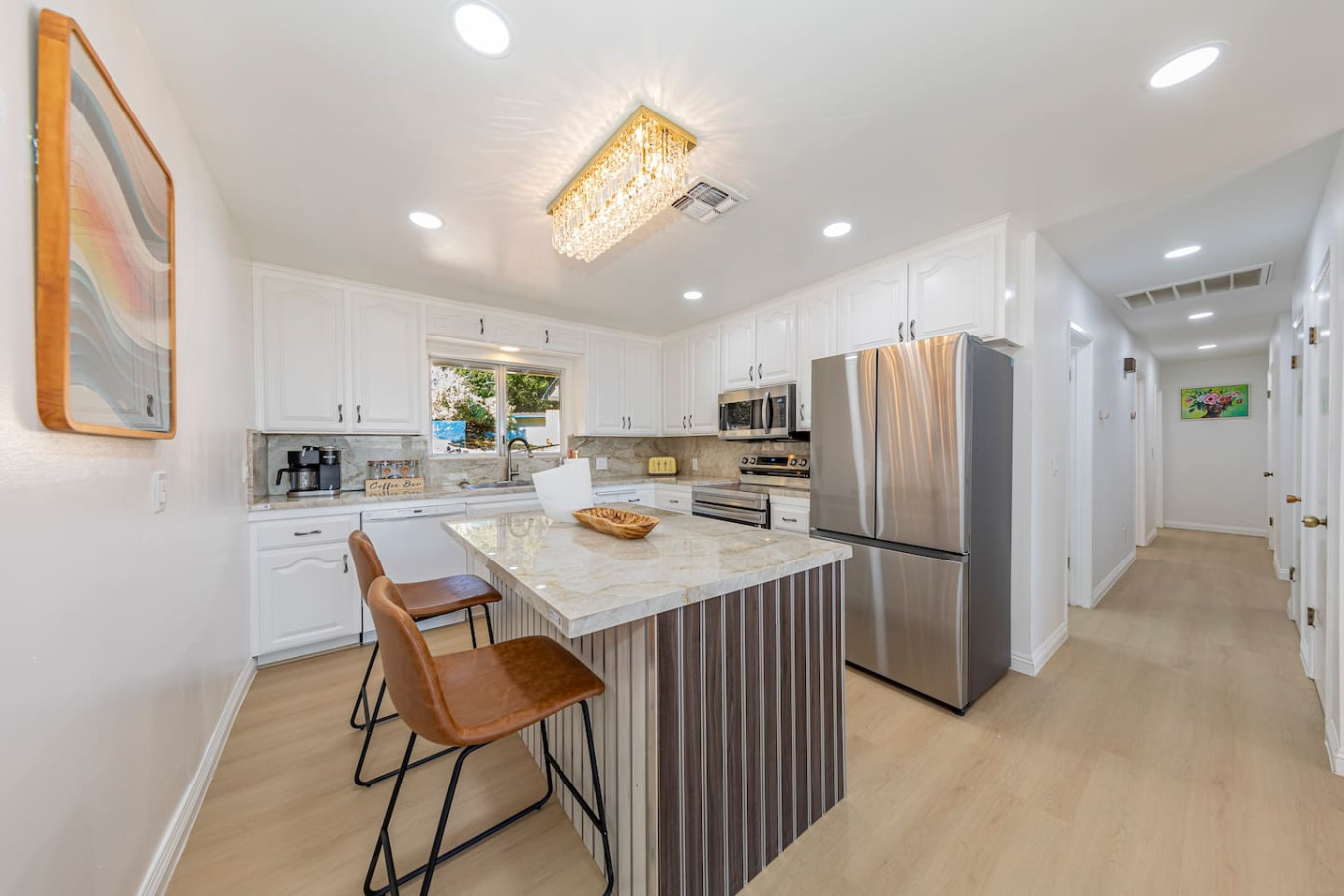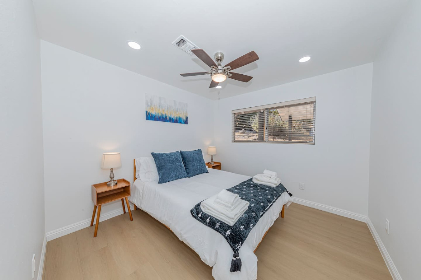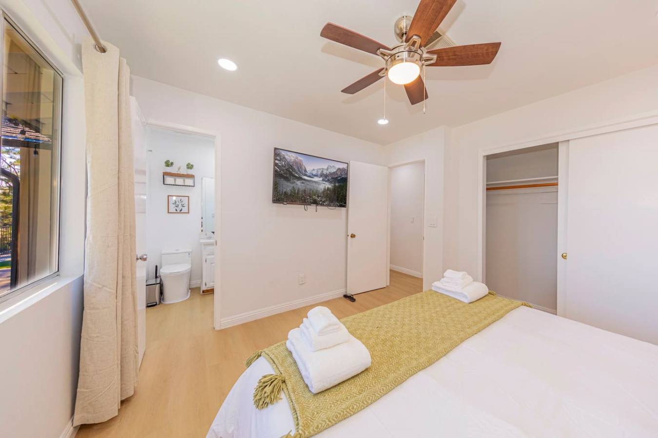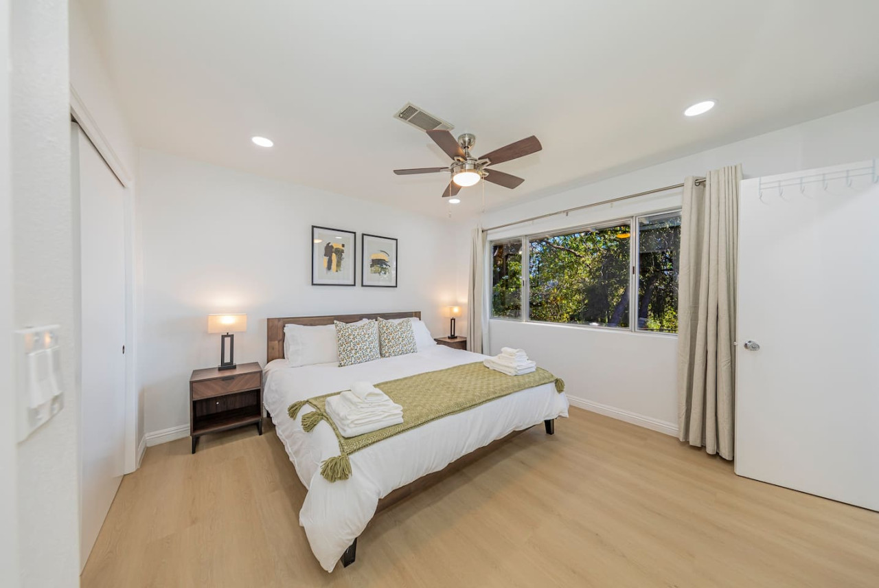 Welcome to the picturesque hillside home located in the majestic high Sierra Sky Ranch neighbourhood at 3300 ft from sea level. Relish views of mountains from the living room and beautiful sunsets, starry night from the house terrace. Enjoy with friends and family at the outdoor seating areas, a brand new Hot tub, Fire-pit, BBQ, a separate in-law bedroomunit with dedicated workspace, and a beautiful back porch with rock outcropping. Features a new game room with a pool table and views. Wholesome space for the entire family to spread out and enjoy a vacation in Mountains. HOME DETAILS Living Room Game Room + Dining Room 4 Bedrooms Kitchen 2 Bathrooms BEDROOMS Bedroom 1: King bed (sleeps 2) Bedroom 2: Queen bed (sleeps 2) Bedroom 3: Queen bed (sleeps 2) Game Room: Pull-out sofa-queen bed (sleeps 2) INDOOR ENTERTAINMENT Living room with Beautiful Views Pool table Board Games 4 smart TVs OUTDOOR ENTERTAINMENT Breathtaking Mountain Views Hottub BBQ Grill Lounge set with Firepit Dining set with shade KITCHEN All cooking essentials: pots, pans , dishes, silverware, bowls, plates, cups, glasses All appliances: refrigerator, freezer, cooking range, oven, microwave, dishwasher Additional appliances: keurig coffee machine, toaster, kettle, blender, rice cooker AMENITIES Fresh Towels Hand soap, lotion Shampoo, conditioner, body wash. Hair dryer Dish/Laundry Detergent Iron, Iron Board TEMPERATURE Central AC and heating Ceiling fans Guests have access to the whole house, except the (labelled) Owner's closet, Houskeeping Closet, and the Detached In-law bedroom. The In-law unit can be requested separately via guest portal, for additional sleeping of upto 4 people. It is equipped with its own AC/Heating, a dedicated workspace, and Smart TV, with room darkening shades. House is managed and monitored round the clock by Sugar Pines Property Management.