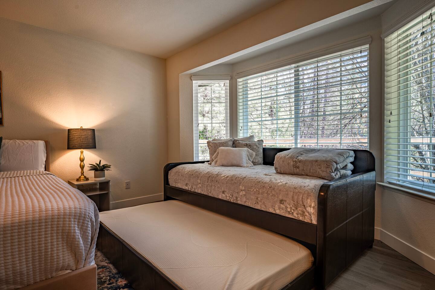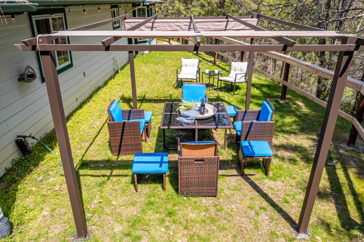 Discover the beauty of this mountain cabin in the Sierra National Forest. This newly listed retreat is located 3250 feet above sea level and boasts a spacious and luxurious atmosphere perfect for a family gathering. With tons of attractions nearby, your stay will never be dull. The interior of the cabin offers a large master bedroom with an attached full bathroom, two double-closeted bedrooms, a big living room with a state-of-the-art wood burning fireplace, a pool table, dart board, and seating for up to 12 people, a dining area with an 8-seater dining table and a 75" Smart TV, a bar top with bar stools, a kitchen, and a fourth bedroom dedicated to the kids with 3 sleeper twin bunks and a twin over full bunk bed with a mounted TV. Additionally, the property is pet-friendly and includes a backyard with gates on either side, a hot tub, BBQ grill, propane fire-pit, and an umbrella. And if that’s not enough, you can take the trail from the distant garage leading down to a gorging creek. Besides all the amenities, Sugar Pines Property Management manages this home, providing a single point of contact and assistance any time of day. What’s more, the cabin is conveniently located just 14 miles away from the southern gate of Yosemite National Park and an easy drive from the popular destination of Bass Lake. Don’t miss out on the opportunity to enjoy this incredible mountain cabin in Sierra National Forest.