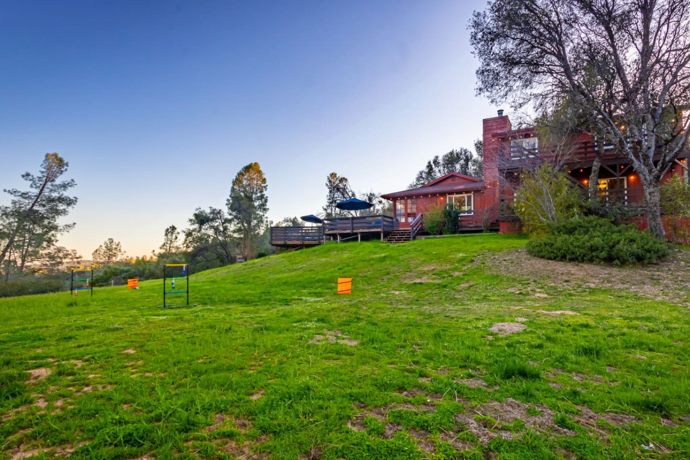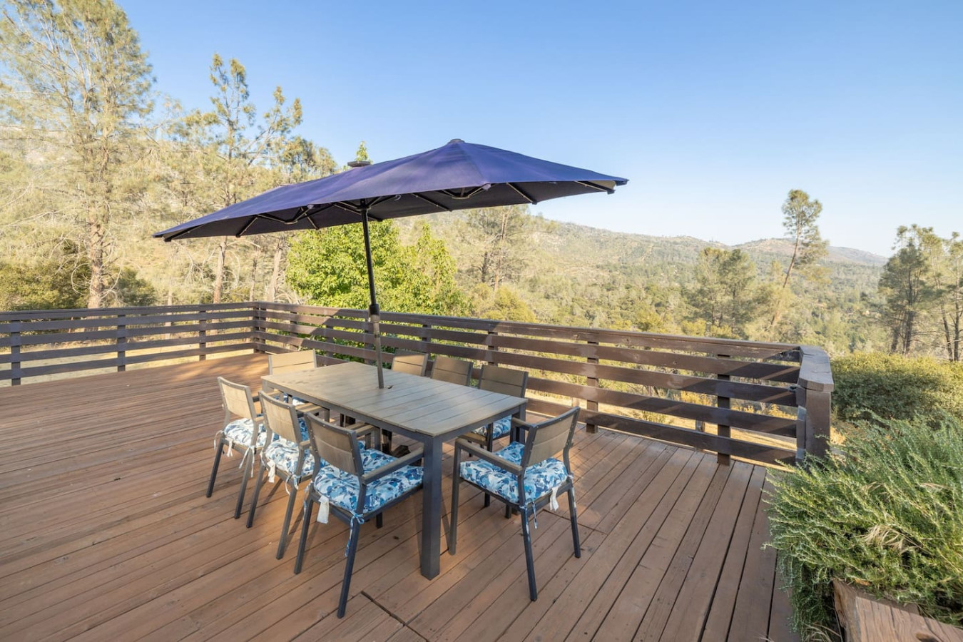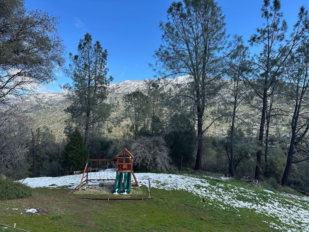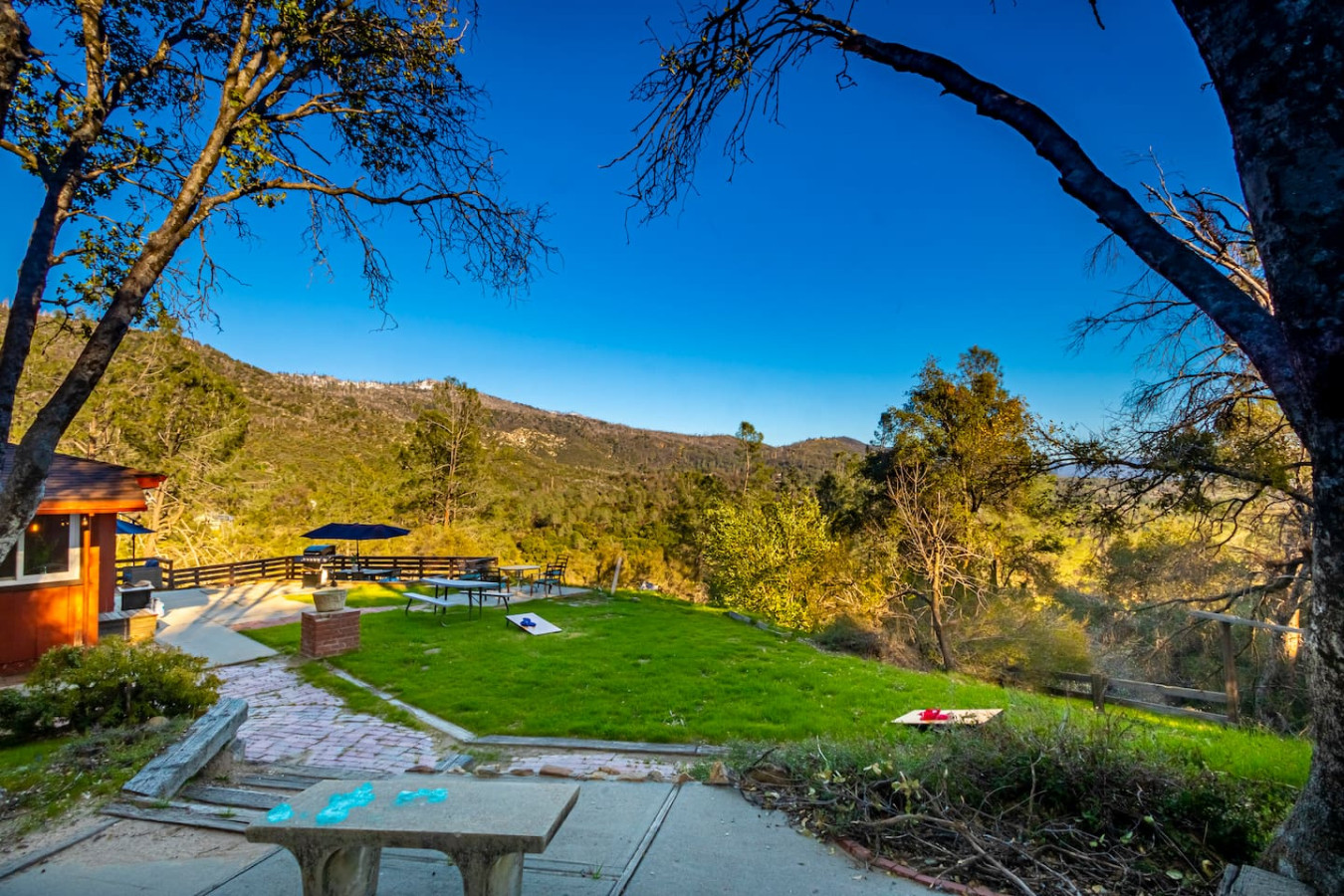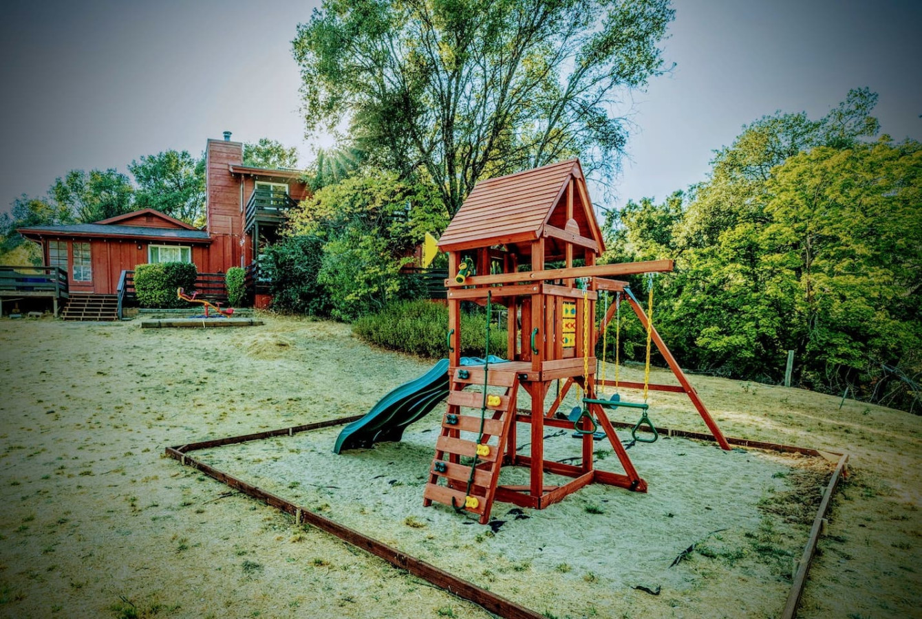 Vacation in the cute historic logging town of North Fork, the exact geographical center of California, only 7 miles from Bass Lake, 22 miles from south gate of Yosemite National Park, and 7 min from Manzanita lake. Marvel at the stunning Sierra Nevada mountains, as you unwind with your group in the newly installed 6-person hot tub (pictures coming soon), stargazing, sharing stories and just catching up! Take a 3/4 mile hike from property back-gate to South Fork Willow Creek adorned with waterholes and waterfalls. And you will have it all to yourself as access is limited. As one recent guest put it - "The river is pure magic. Would definitely stay here again to access the river! We had such a good time." This is your base to explore the wonders of California nature. Follow us on FB/insta @sierralookoutlodge for more info and updates Part of the "Parcels of Paradise", the Sierra Vista Lodge is fully equipped with a 6-person hot tub, Pool table/Ping-pong, Smart TVs, BBQ Grill, fire-pit, fun outdoor games, two-level decks and patio with ample seating. Bordering Sierra National Forest, this is the perfect house for family/friends reunions, or adventure-seekers as the house backs upto unlimited hiking, fishing and exploring past the back-gate. With such a lovely outdoor space right at home, you may not wander far. Adults can enjoy the Sierra Range views from the comfy seating area on the newly stained and renovated decks, great for stargazing, while the kids play cornhole, ladder toss, frisbee toss, soccer, or bocce ball in the large backyard. Sighting wildlife such as deer, turkey, quail, peacock, woodpeckers, and dragonflies will delight the whole group. Pick mulberries from the on-site tree when they're in season, and sprinkle them on your morning pancakes for a special treat. Inside, you'll find a space just as relaxing. There are 2 separate living spaces, plus another dining/living room that offers lots of room to spread out. Entertainment options include board games, a piano in the dining area, a two-in-one Pool table and Ping-Pong table, and two-streaming capable TVs. A field guide in the home makes for a fun scavenger hunt for kids to wander the property and identify local flora and fauna. A dedicated workspace in the primary bedroom assists with any remote work. The six-burner stove in the full, well-equipped kitchen is ideal for feeding a crowd, and there's room for everyone at the adjacent dining table. There are split air-conditioning units in the downstairs rooms and central air-conditioning upstairs to keep everyone cool when the weather is warm. Conclude your day by enjoying a delightful cookout on the gas grill, all while basking in the captivating beauty of the Sierra range as it gleams in the soft glow of the setting sun. Following this, relish in the outdoor ambiance by spending your evening on the deck, allowing your eyes to gradually adapt to the darkness. As the night sky emerges, prepare to be awe-inspired by the sight of the Milky Way on clear nights or the thrill of spotting shooting stars. Engage in lively conversations with loved ones by the inviting firepit or while soaking your worries away in the newly installed hot tub, creating cherished memories to last a lifetime. Right from the guest book -"It is a perfect setup for privacy yet close to activities. You can choose to stay at the property with enough to explore/relax or adventure out close by. We spent nights outside on the deck watching the stars, Watched the deer and turkey on their daily visits, hiked down to the creek daily, short drive to manzanita creek with swim areas and Bass lake within 10 mins. We like to hike so we ventured to Willows Near by which is an awesome hike with waterfalls and pools only 15-20 mins away."