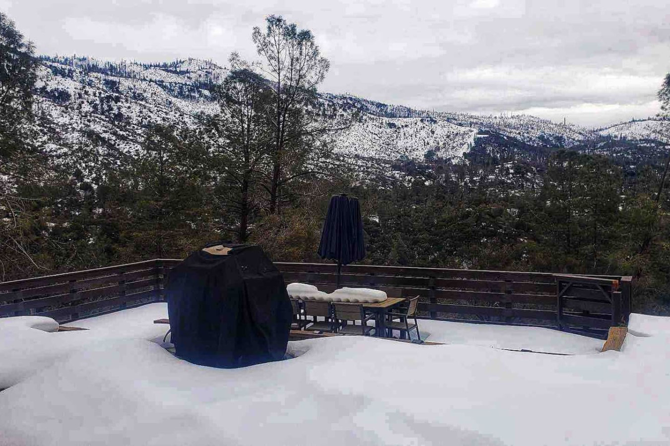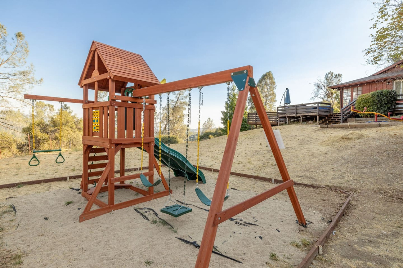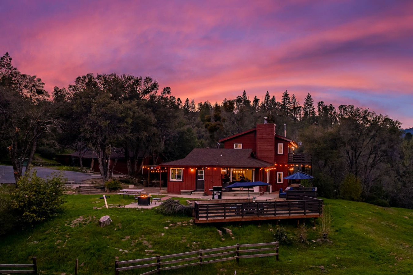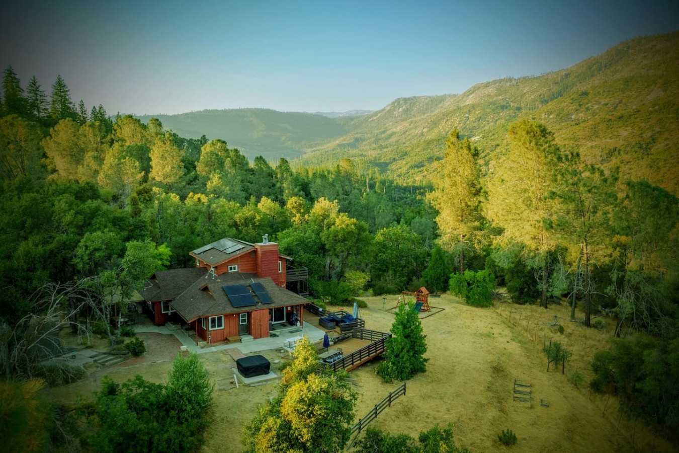 Vacation in the cute historic logging town of North Fork, the exact geographical center of California, only 7 miles from Bass Lake, 22 miles from south gate of Yosemite National Park, and 7 min from Manzanita lake. Marvel at the stunning Sierra Nevada mountains, as you unwind with your group in the newly installed 6-person hot tub (pictures coming soon), stargazing, sharing stories and just catching up! Take a 3/4 mile hike from property back-gate to South Fork Willow Creek adorned with waterholes and waterfalls. And you will have it all to yourself as access is limited. As one recent guest put it - "The river is pure magic. Would definitely stay here again to access the river! We had such a good time." This is your base to explore the wonders of California nature. Follow us on FB/insta @sierralookoutlodge for more info and updates Part of the "Parcels of Paradise", the Sierra Vista Lodge is fully equipped with a 6-person hot tub, Pool table/Ping-pong, Smart TVs, BBQ Grill, fire-pit, fun outdoor games, two-level decks and patio with ample seating. Bordering Sierra National Forest, this is the perfect house for family/friends reunions, or adventure-seekers as the house backs upto unlimited hiking, fishing and exploring past the back-gate. With such a lovely outdoor space right at home, you may not wander far. Adults can enjoy the Sierra Range views from the comfy seating area on the newly stained and renovated decks, great for stargazing, while the kids play cornhole, ladder toss, frisbee toss, soccer, or bocce ball in the large backyard. Sighting wildlife such as deer, turkey, quail, peacock, woodpeckers, and dragonflies will delight the whole group. Pick mulberries from the on-site tree when they're in season, and sprinkle them on your morning pancakes for a special treat. Inside, you'll find a space just as relaxing. There are 2 separate living spaces, plus another dining/living room that offers lots of room to spread out. Entertainment options include board games, a piano in the dining area, a two-in-one Pool table and Ping-Pong table, and two-streaming capable TVs. A field guide in the home makes for a fun scavenger hunt for kids to wander the property and identify local flora and fauna. A dedicated workspace in the primary bedroom assists with any remote work. The six-burner stove in the full, well-equipped kitchen is ideal for feeding a crowd, and there's room for everyone at the adjacent dining table. There are split air-conditioning units in the downstairs rooms and central air-conditioning upstairs to keep everyone cool when the weather is warm. Conclude your day by enjoying a delightful cookout on the gas grill, all while basking in the captivating beauty of the Sierra range as it gleams in the soft glow of the setting sun. Following this, relish in the outdoor ambiance by spending your evening on the deck, allowing your eyes to gradually adapt to the darkness. As the night sky emerges, prepare to be awe-inspired by the sight of the Milky Way on clear nights or the thrill of spotting shooting stars. Engage in lively conversations with loved ones by the inviting firepit or while soaking your worries away in the newly installed hot tub, creating cherished memories to last a lifetime. Right from the guest book -"It is a perfect setup for privacy yet close to activities. You can choose to stay at the property with enough to explore/relax or adventure out close by. We spent nights outside on the deck watching the stars, Watched the deer and turkey on their daily visits, hiked down to the creek daily, short drive to manzanita creek with swim areas and Bass lake within 10 mins. We like to hike so we ventured to Willows Near by which is an awesome hike with waterfalls and pools only 15-20 mins away."