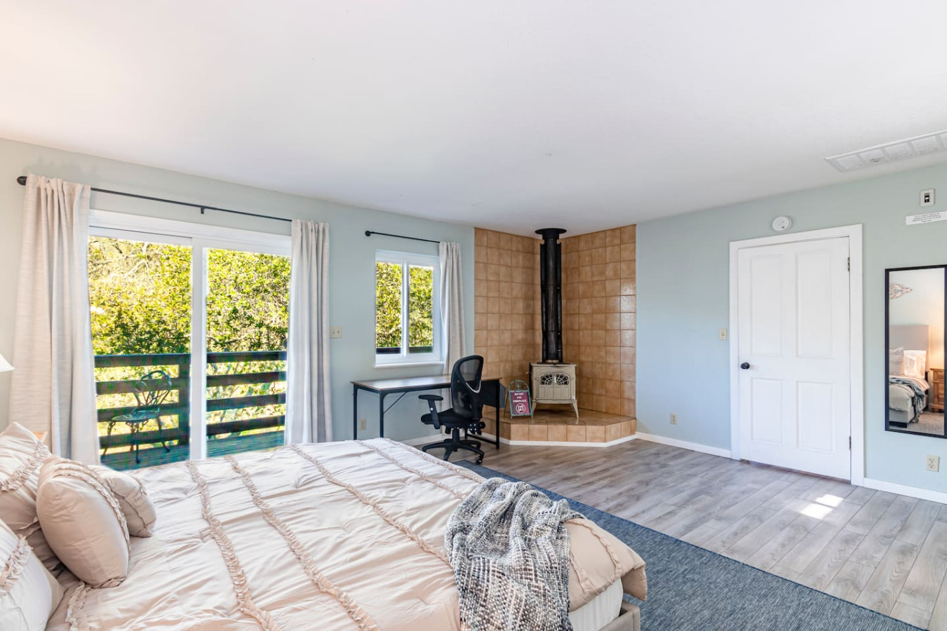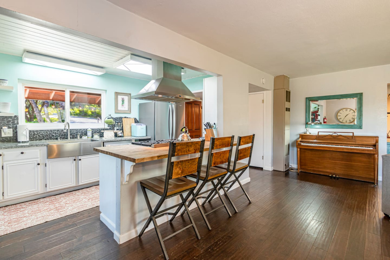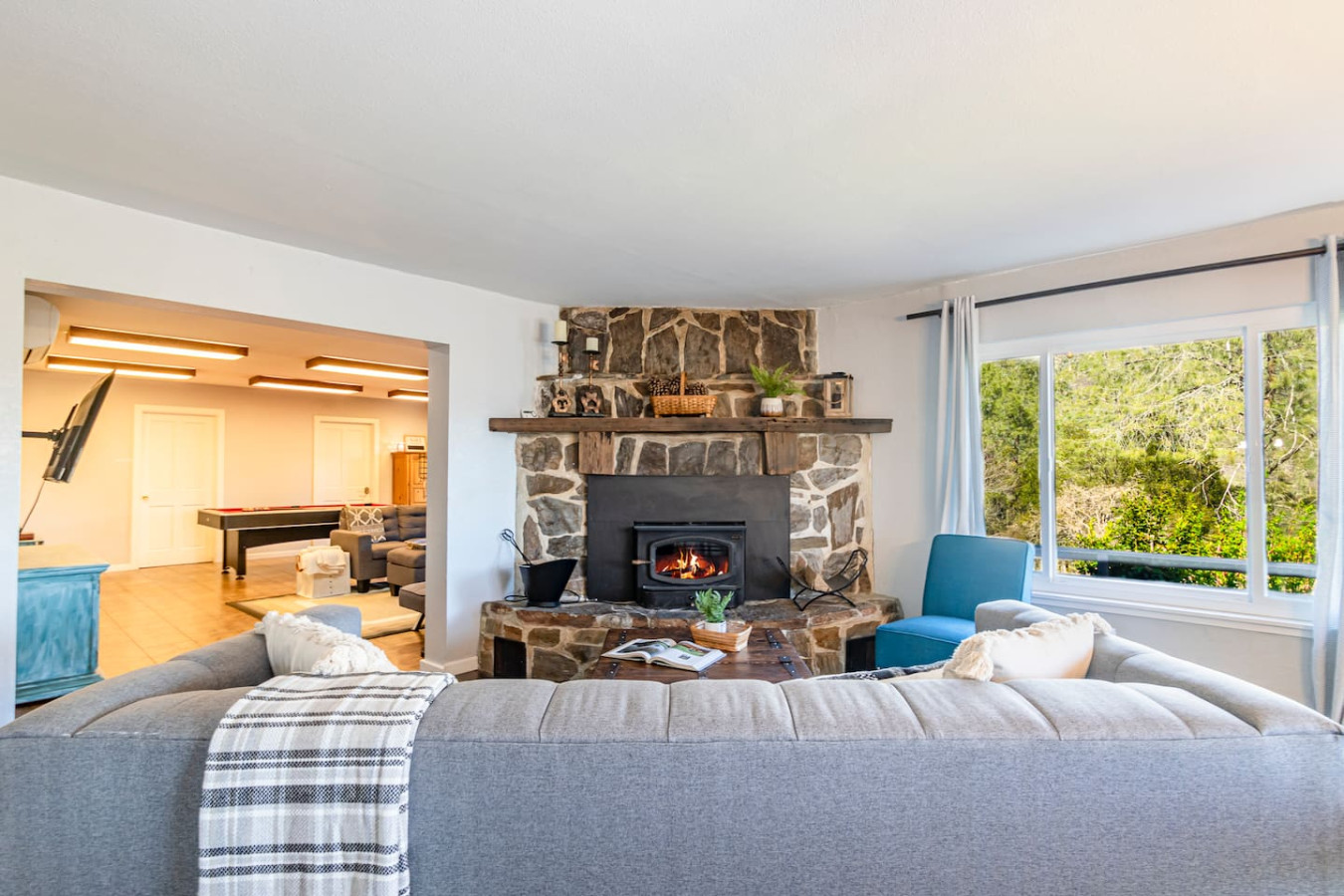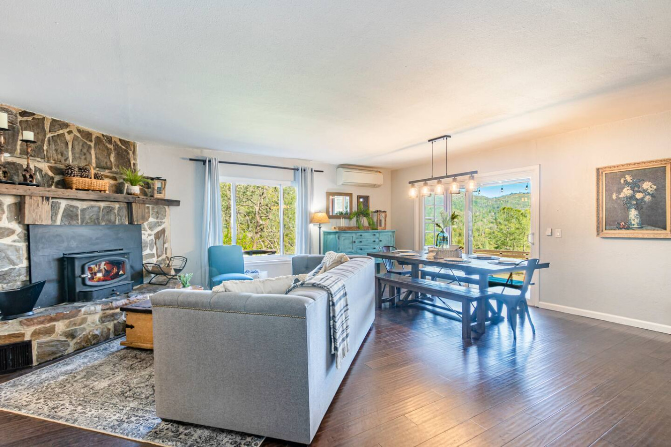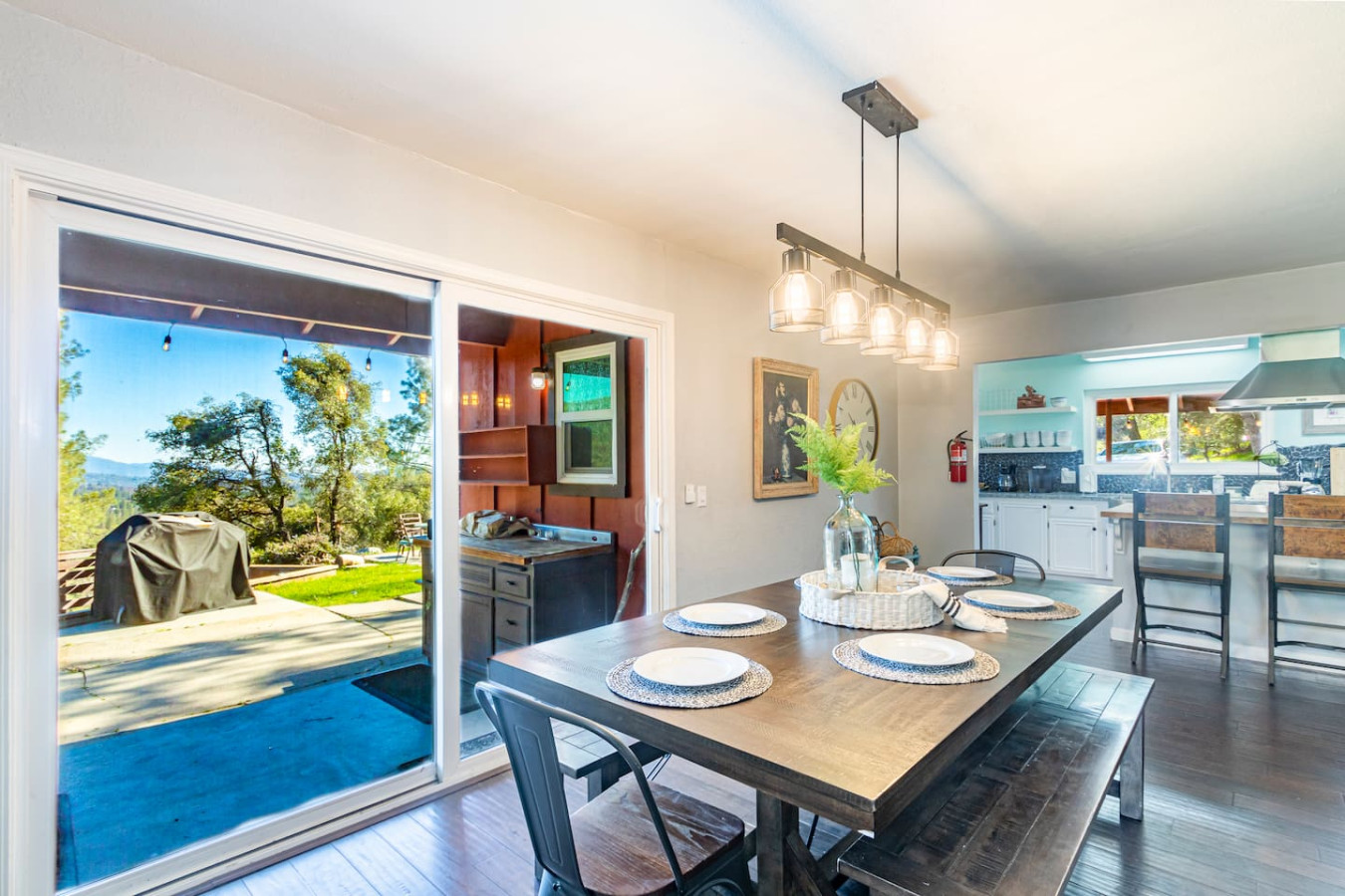 Vacation in the cute historic logging town of North Fork, the exact geographical center of California, only 7 miles from Bass Lake, 22 miles from south gate of Yosemite National Park, and 7 min from Manzanita lake. Marvel at the stunning Sierra Nevada mountains, as you unwind with your group in the newly installed 6-person hot tub (pictures coming soon), stargazing, sharing stories and just catching up! Take a 3/4 mile hike from property back-gate to South Fork Willow Creek adorned with waterholes and waterfalls. And you will have it all to yourself as access is limited. As one recent guest put it - "The river is pure magic. Would definitely stay here again to access the river! We had such a good time." This is your base to explore the wonders of California nature. Follow us on FB/insta @sierralookoutlodge for more info and updates Part of the "Parcels of Paradise", the Sierra Vista Lodge is fully equipped with a 6-person hot tub, Pool table/Ping-pong, Smart TVs, BBQ Grill, fire-pit, fun outdoor games, two-level decks and patio with ample seating. Bordering Sierra National Forest, this is the perfect house for family/friends reunions, or adventure-seekers as the house backs upto unlimited hiking, fishing and exploring past the back-gate. With such a lovely outdoor space right at home, you may not wander far. Adults can enjoy the Sierra Range views from the comfy seating area on the newly stained and renovated decks, great for stargazing, while the kids play cornhole, ladder toss, frisbee toss, soccer, or bocce ball in the large backyard. Sighting wildlife such as deer, turkey, quail, peacock, woodpeckers, and dragonflies will delight the whole group. Pick mulberries from the on-site tree when they're in season, and sprinkle them on your morning pancakes for a special treat. Inside, you'll find a space just as relaxing. There are 2 separate living spaces, plus another dining/living room that offers lots of room to spread out. Entertainment options include board games, a piano in the dining area, a two-in-one Pool table and Ping-Pong table, and two-streaming capable TVs. A field guide in the home makes for a fun scavenger hunt for kids to wander the property and identify local flora and fauna. A dedicated workspace in the primary bedroom assists with any remote work. The six-burner stove in the full, well-equipped kitchen is ideal for feeding a crowd, and there's room for everyone at the adjacent dining table. There are split air-conditioning units in the downstairs rooms and central air-conditioning upstairs to keep everyone cool when the weather is warm. Conclude your day by enjoying a delightful cookout on the gas grill, all while basking in the captivating beauty of the Sierra range as it gleams in the soft glow of the setting sun. Following this, relish in the outdoor ambiance by spending your evening on the deck, allowing your eyes to gradually adapt to the darkness. As the night sky emerges, prepare to be awe-inspired by the sight of the Milky Way on clear nights or the thrill of spotting shooting stars. Engage in lively conversations with loved ones by the inviting firepit or while soaking your worries away in the newly installed hot tub, creating cherished memories to last a lifetime. Right from the guest book -"It is a perfect setup for privacy yet close to activities. You can choose to stay at the property with enough to explore/relax or adventure out close by. We spent nights outside on the deck watching the stars, Watched the deer and turkey on their daily visits, hiked down to the creek daily, short drive to manzanita creek with swim areas and Bass lake within 10 mins. We like to hike so we ventured to Willows Near by which is an awesome hike with waterfalls and pools only 15-20 mins away."