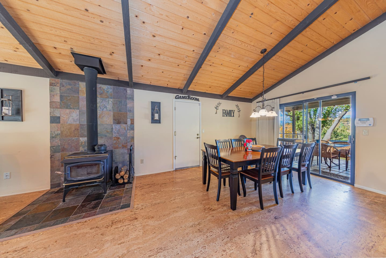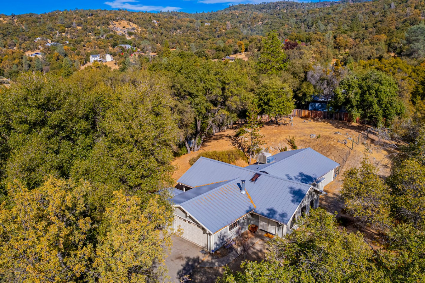 Escape to this charming Hillside country house on 1.96 acres with 3 bedrooms, 2 baths, and 1,852 sq ft of cozy living space. Featuring vaulted pine-beamed ceilings, skylights, this home blends comfort and style. Enjoy the covered back patio, fenced yard, firepit and breathtaking Vista views. Garage-cum-gameroom with Pro Pool Table, Dartboards, and Fitness equipments. With water softener, outdoor sink, and large dog kennel, enjoy the country living close to town, your perfect retreat awaits!